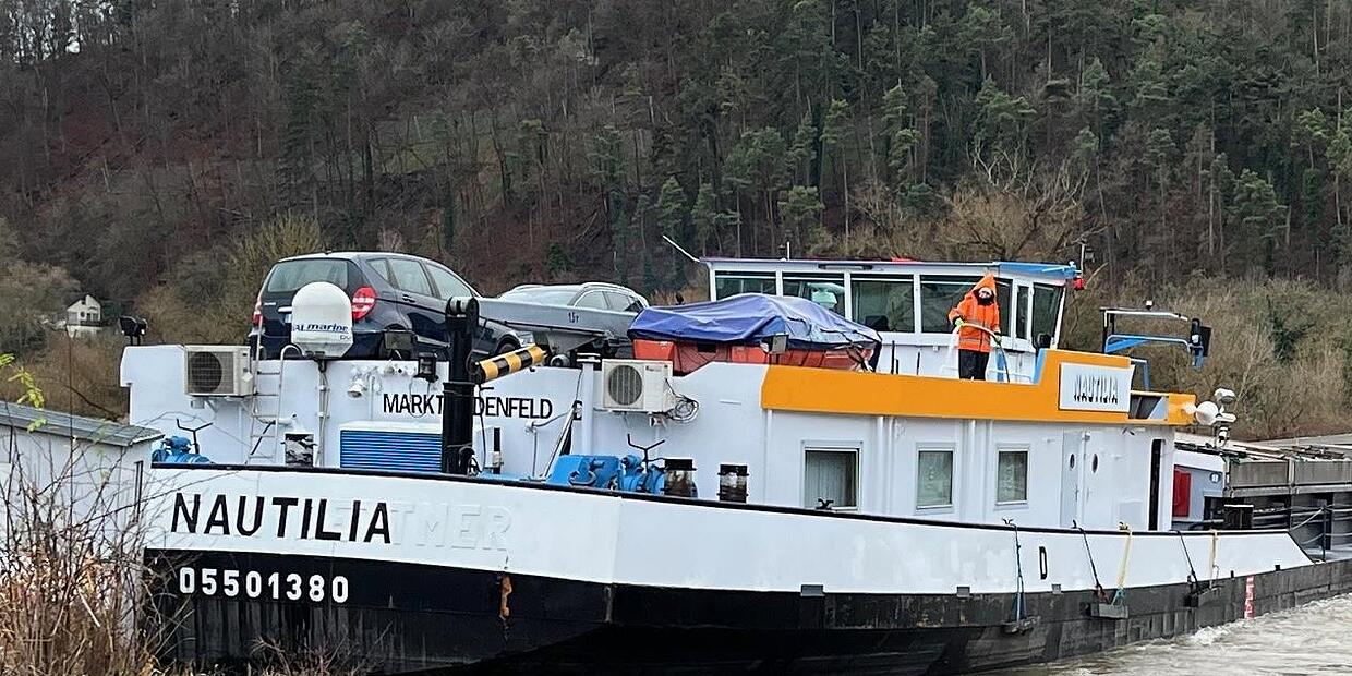 Auf Grund gelaufen Güterschiff blockiert bei Karlstadt den Main Kein Durchkommen mehr: Die „Nautilia“ ist beim Verlassen des Schwenk-Hafens von der Strömung erfasst worden und hat sich gedreht. Nun blockiert sie den Main bei Karlstadt. // Karlheinz Haase von Karlheinz Haase, Stefanie Koßner TEILEN  10.12.2024 Karlstadt – Ein Güterschiff blockiert seit Dienstagnachmittag den Main bei Karlstadt. Die Bergung des quer liegenden Schiffs ist in vollem Gang. Beim Verlassen des Hafens am Schwenk-Zementwerk habe sich das Schiff aufgrund der Strömung gedreht und sei auf Grund gelaufen. Seitdem liegt es quer auf dem Main und blockiert die Schifffahrt. Das teilte Enrico Ball, Pressesprecher des Polizeipräsidiums Unterfranken, mit. Schleppschiff kommt am Mittwoch Aus eigener Kraft könne sich die 2582 Tonnen schwere und 10,50 Meter breite „Nautilia“ nicht befreien, so Ball. Die Bergung durch ein Schleppschiff sei für Mittwoch vorgesehen. Dieses wird laut Polizei das Güterschiff aus Richtung Gemünden anschieben. Der Main bleibt bis dahin also versperrt. Die Wasserschutzpolizei war vor Ort. Die Besatzung der 110 Meter langen „Nautilia“ mit Standort in Marktheidenfeld putzt am Nachmittag mit Schläuchen und Besen das Schiff, das direkt an der Hafenausfahrt liegt. Viel mehr ist derzeit nicht möglich. Nach Aussagen der Besatzung sollte es in Richtung Mainz und Rhein gehen. Das Endziel ist unbekannt. Geladen hat das Schiff Ziegelsteine. Im Jahr 2009 lag ein Güterschiff dort ebenfalls quer Main-Pegel und -Abfluss waren seit 6. Dezember stetig angestiegen. Das zeigen die Daten des Hochwassernachrichtendienstes Bayern für die Messpunkte in Würzburg und Lohr-Steinbach. Laut Vorhersage soll der Pegel leicht fallen, wodurch die Chancen auf eine erfolgreiche Bergung erhöht werden. Im Februar 2009 war an gleicher Stelle schon einmal ein Güterschiff quer gelegen. Damals war der Bug am gegenüberliegenden Ufer auf Grund geraten. Festnahme 26-jähriger Syrer als Terrorunterstützer? Dem Mann aus dem Landkreis Schweinfurt wird Terrorismusfinanzierung in Tateinheit mit Anleitung zur Begehung einer schweren staatsgefährdenden Gewalttat vorgeworfen. So geht es mit ihm weiter. Tod der Mutter Ermittlungen: 27-jähriger Sohn unter Verdacht Er hatte den Tod der 60-Jährigen in Lohr selbst gemeldet. Später nahm die Polizei ihn fest. Jetzt sitzt er in Untersuchungshaft. UPDATE Mögliche Brandstiftung Noch keine konkrete Spur nach Brand in Bad Brückenau Nach dem Brand eines leerstehenden Hauses in Bad Brückenau laufen die Ermittlungen der Kriminalpolizei weiter. Die Beamten bitten weiter um Hinweise aus der Bevölkerung.