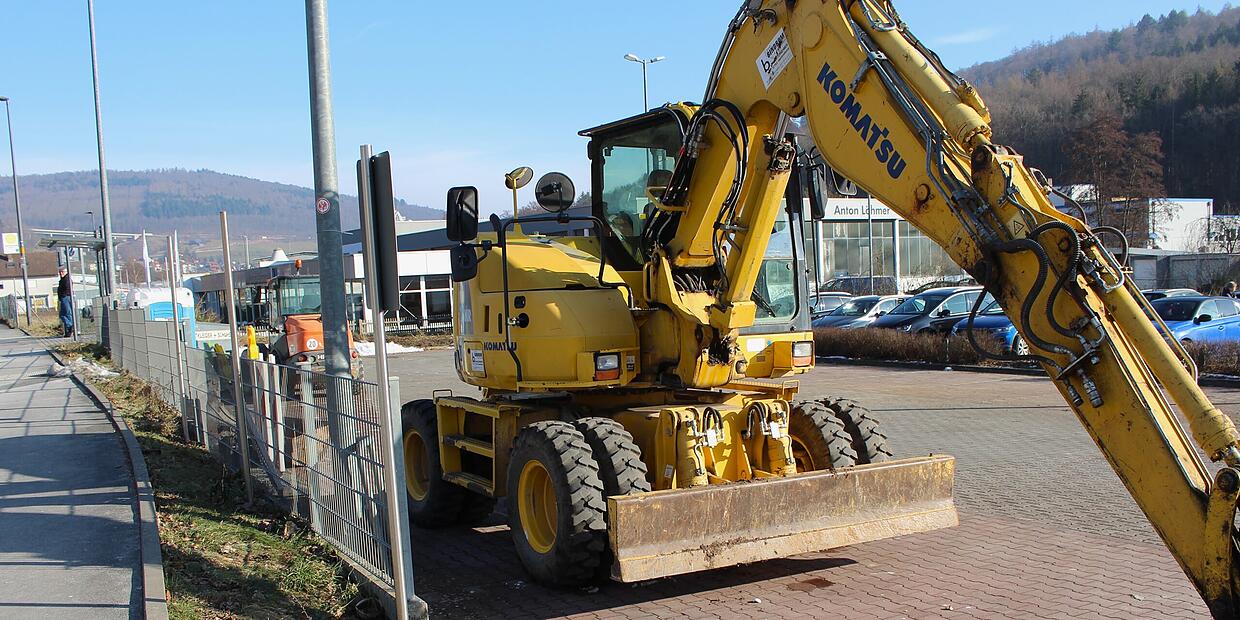 Bagger auf Aldi-Parkplatz in Bad Brückenau