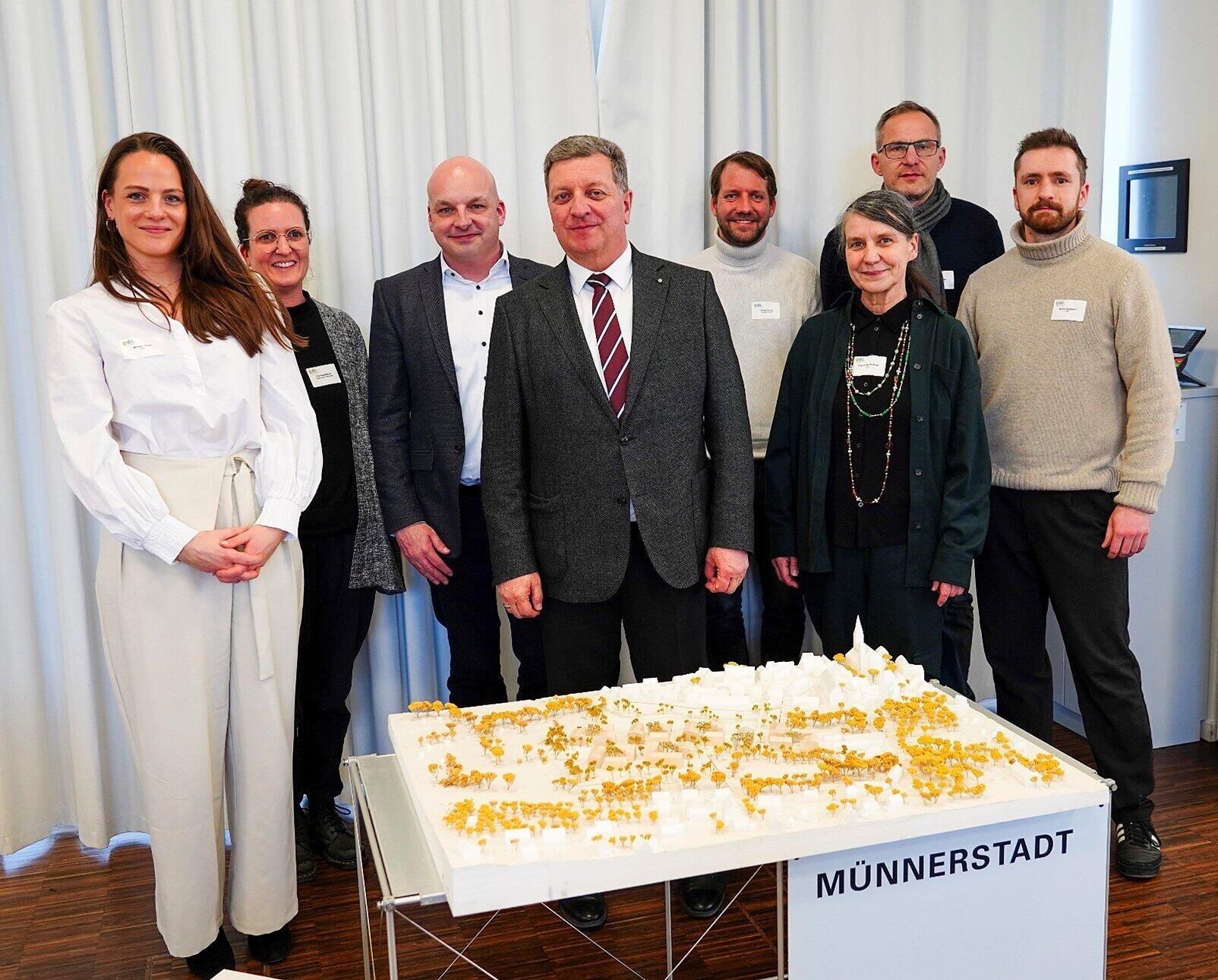 Stadtentwicklung auf dem Land Münnerstadt erntet Lob aus München für Quartiersprojekt Das Treibhaus-Areal unmittelbar neben der Stadtmauer soll aufwendig umgestaltet werden. Das Bauministerium wird die Stadt weiterhin auf diesem Weg begleiten. // Robert Müller von Redaktion / emue TEILEN  10.03.2025 Münnerstadt – Ein Konzept aus Münnerstadt erntet bayerisches Lob. Der Stellenwert des „Treibhaus-Quartiers“ zeigt sich in der Anerkennung bei der Abschlussveranstaltung von „Landtstadt Bayern“. Das steckt dahinter. Artikel anhören Sie können uns nicht hören? Diese Funktion können Sie exklusiv mit PLUS nutzen. Erhalten Sie uneingeschränkten Zugriff auf alle Audioinhalte, Artikel und vieles mehr. Vorlesefunktion freischalten Bereits -Zugriff? Jetzt Anmelden Die Stadt Münnerstadt hat an der Abschlussveranstaltung des Modellprojekts „Landstadt Bayern“ im Staatsministerium für Wohnen, Bau und Verkehr in München teilgenommen. Gemeinsam mit neun weiteren Modellkommunen aus Bayern blickte man auf drei Jahre intensiver Projektarbeit zurück. Staatsminister Christian Bernreiter würdigte die innovativen Konzepte, die im Rahmen des Programms entstanden sind. Münnerstadt als Vorzeigeprojekt Besonderes Lob erhielt Münnerstadt, wie es in der Pressemitteilung der Stadt heißt, für die erfolgreiche Umsetzung des Treibhaus-Quartiers. Die Umnutzung der ehemaligen Gärtnerei zu einem lebendigen Quartier mit innovativen Wohn- und Arbeitsformen wurde vom Bauministerium als exemplarisch für das gesamte Programm hervorgehoben. Gelobt wurden insbesondere die engagierte Bürgerschaft, die enge Zusammenarbeit zwischen Verwaltung und Stadtgesellschaft sowie die strategische Kooperation innerhalb der Stadtverwaltung. Münnerstadts Bürgermeister Michael Kastl und sein Team spielten eine zentrale Rolle bei der Entwicklung des Projekts und wurden für ihren Einsatz ausdrücklich gewürdigt. Der Staatsminister Christian Bernreiter und das Projekt Treibhaus-Team. V.l. Miriam Horst, Eva Kusebauch, BGM Michael Kastl, Staatsminister Christian Bernreiter, Kilian Düring, Ines-Ulrike Rudolph, Stefan Richter, Moritz Salzmann // STMB/WINSZCZYK Impulse aus München Neben der Abschlussveranstaltung bot eine Exkursion ins Münchner Werksviertel den Teilnehmenden spannende Einblicke in innovative Ansätze zur Quartiersentwicklung. Diese Impulse könnten auch für die nächsten Schritte in Münnerstadt von Bedeutung sein. Zukunft des Treibhaus-Quartiers: Neue Phase beginnt Mit dem Abschluss von „Landstadt Bayern“ startet Münnerstadt in eine neue Phase der Umsetzung des Treibhaus-Quartiers. Im März 2025 beginnt die Rahmenplanung, die in enger Abstimmung zwischen der Stadt und der Arge Treibhaus erfolgt. Die bisherigen Konzepte fließen direkt in diesen Prozess ein, während parallel neue Partner und Investoren gesucht werden, um die bauliche Realisierung voranzutreiben. Mitgestaltung erwünscht Interessierte Bürgerinnen und Bürger sind weiterhin eingeladen, sich aktiv einzubringen. Beim Treibhaus-Menü am 19. März 2025 werden aktuelle Baugruppen in einer Mikro-Projektbörse vorgestellt – eine Gelegenheit, sich über Wohn- und Investitionsmöglichkeiten zu informieren oder neue Baugruppen zu gründen. Zudem stehen weitere Veranstaltungen auf dem Programm, darunter ein Workshop zur „Umsetzungspartner und Rahmenplanung“ am 2. April 2025. Quartiersmanagement in Vorbereitung Um die kontinuierliche Weiterentwicklung sicherzustellen, wird derzeit ein Quartiersmanagement (QM) für das Treibhaus-Quartier sowie die Altstadt vorbereitet. Der Stadtrat hat die Einrichtung bereits beschlossen, die Umsetzung erfolgt in enger Abstimmung mit der Bezirksregierung. Im Gespräch mit der Redaktion sagt Bürgermeister Kastl im Rückblick auf die drei Projektjahre: „Es fing alles damit an, dass die Stadt Münnerstadt vor einigen Jahren die Möglichkeit erhalten hat, das ehemalige Gärtnereiareal zu erwerben und zu entwickeln. Eine tolle Chance, aber gleichzeitig auch eine Riesenherausforderung.“ Schnell sei klar gewesen, „dass dieses Projekt mit all seinen Aspekten wie Trinkwasser- und Hochwasserschutz eine Nummer zu groß für ein Städtchen wie Münnerstadt sein könnte“. „Türöffner“ für das Treibhaus-Vorhaben Genau in diesem Moment habe die Stadt den Flyer für „Landstadt Bayern“ erhalten. Kastl: „Mit den vielen Expertenratschlägen, der fachlichen und finanziellen Unterstützung durch das Ministerium, der Regierung von Unterfranken und der beteiligten externen Fachleute ist es uns gelungen, unter Einbindung der Bürgerschaft, ein zukunftsweisendes und umsetzbares Projekt vor den Toren der Altstadt zu entwickeln.“ Das Projekt, so Kastl, sei der „Türöffner“ gewesen. Das Treibhausareal liegt zwischen Altstadt und Karlsberrg. // Ellen Mützel Zur Zukunft sagt der Bürgermeister: „Jetzt geht es erst so richtig los. Als Nächstes steht die Rahmenplanung plus Investorensuche an, um dann in die Bauleitplanung und die Umsetzung zu gehen. Das Treibhaus ist definitiv kein Projekt für eine Nacht.“ Entscheidung über ein weiteres Verfahren Und es geht noch weiter, wie Kastl betont: Der Münnerstädter Stadtrat wird am Montag, 17. März 2025, darüber entscheiden, am neuen Verfahren Landstadt Bestand teilzunehmen – und zwar mit dem Campus-Projekt am Karlsberg. „Auch da erhoffen wir uns wieder den dringend benötigten Türöffner.“ Weitere Informationen zum Treibhaus-Projekt in Münnerstadt sowie Möglichkeiten zur aktiven Beteiligung sind im Projektbüro (Veit-Stoß-Straße 2) erhältlich. Was ist „Landstadt Bayern“? „Wie lassen sich die Vorteile des Stadtlebens mit der Lebensqualität auf dem Land verbinden? Dieser Frage widmet sich das Modellprojekt. Zehn bayerische Modellgemeinden entwickeln seit 2022 städtebauliche Konzepte voller Innovationskraft. Alle beschäftigen sich dabei mit den Zukunftsthemen Wohnen, Klima, Mobilität und Nachhaltigkeit. Und: Sie alle beteiligen d