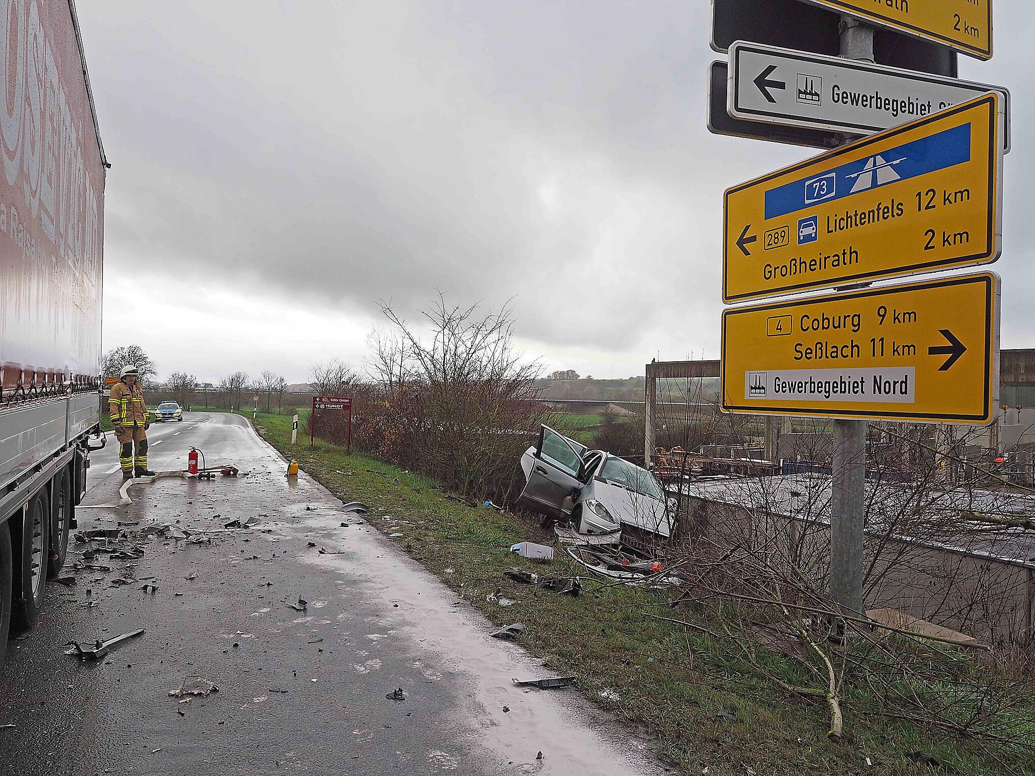 Unfall Untersiemau: Schwerverletzter bei Zusammenstoß Ein schwerer Verkehrsunfall hat sich am Montag gegen 7.40 Uhr bei Untersiemau ereignet. // Christoph Winter von Redaktion TEILEN  21.11.2022 Untersiemau – Ein schwerer Verkehrsunfall zwischen einem Lastwagen und einem Auto hat sich am Montagmorgen in Untersiemau ereignet. Um 7.40 Uhr stieß der 44-jährige Fahrer eines Mercedes in der Großheirather Straße mit einem entgegenkommenden Lastwagen zusammen. Durch die Wucht des Aufpralls schleuderte der Mercedes von der Straße und kam an einem Abhang neben einem Betriebsgelände schwer beschädigt zum Stehen. Mail von konkomm.coburg@t-online.de: OLYMPUS DIGITAL CAMERA // Christoph Winter Autofahrer im Fahrzeug eingeklemmt Der Autofahrer wurde im Fahrzeug eingeklemmt und musste nach Angaben der Polizei von der Feuerwehr befreit werden. Der Mann wurde schwerstverletzt vom Rettungsdienst in ein Klinikum gebracht. Auf Anordnung der Staatsanwaltschaft Coburg zogen die Coburger Polizisten einen Unfallsachverständigen hinzu, der die polizeiliche Unfallaufnahme unterstützte. Ein schwerer Verkehrsunfall hat sich am Montag gegen 7.40 Uhr bei Untersiemau ereignet. // Christoph Winter Straße mehrer Stunden komplett gesperrt Während der Unfallaufnahme war die Großheirather Straße für mehrere Stunden komplett gesperrt. Die Straße ist nach vorläufigen Angaben der Polizei noch bis mindestens 10.30 Uhr gesperrt. Mail von konkomm.coburg@t-online.de: OLYMPUS DIGITAL CAMERA // Christoph Winter +++ Bleiben Sie mit dem Coburger Tageblatt auf dem Laufenden. Klicken Sie hier und melden Sie sich für unsere kostenlosen Newsletter an. +++ Lesen Sie auch Einsatz Pkw brennt aus Die Feuerwehr Rödental musste am Samstagvormittag zu einem Pkw-Brand ausrücken. Feuer Hotel brennt: Zwei Gäste mit Drehleiter gerettet In einem Hotel in der Coburger Innenstadt hat es in der Nacht zum Sonntag gebrannt. Über 20 Einsatzkräfte waren vor Ort. Alarm Rödental: Feuerwehr rettet zwei Bewohner In der Nacht zum Mittwoch brannte der Dachstuhl eines Einfamilienhauses am Mahnberg. Zum Glück waren die Rettungskräfte schnell zur Stelle.