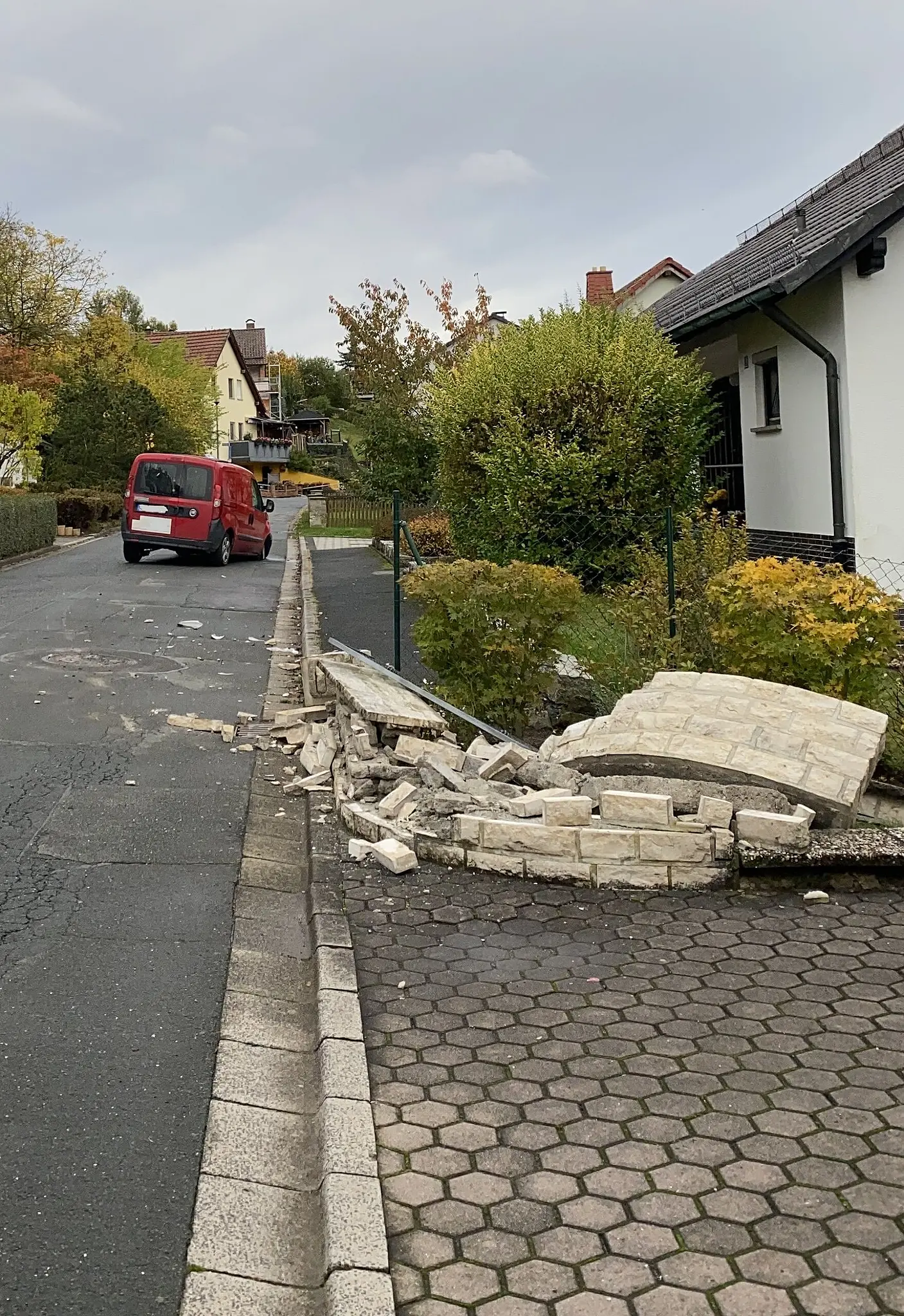 Zusammenstoß in Rödental Autofahrer fährt gegen Gartenmauer Nach einem Zusammenstoß in einem Rödentaler Stadtteil: Die Gartenmauer ist zerstört. // Foto: Polizei Neustadt b. Coburg von Redaktion TEILEN  vor 11 Stunden Rödental – Ein Auto mit Totalschaden und eine zerstörte Gartenmauer: Das ist die Bilanz eines Verkehrsunfalls im Rödentaler Stadtteil Rothenhof. Artikel anhören Sie können uns nicht hören? Diese Funktion können Sie exklusiv mit PLUS nutzen. Erhalten Sie uneingeschränkten Zugriff auf alle Audioinhalte, Artikel und vieles mehr. Vorlesefunktion freischalten Bereits -Zugriff? Jetzt Anmelden Ein Mann aus Rödental war am Donnerstagnachmittag um 16 Uhr mit einem Fiat auf gerader Strecke in einem Wohngebiet unterwegs. Aus ungeklärter Ursache kam er rechts von der Straße ab und stieß dort gegen eine Grundstückmauer, die dabei schwer beschädigt wurde. Unfall in Rödental: So hoch war der Schaden Laut Polizeibericht entstand am Pkw ein wirtschaftlicher Totalschaden. Er musste abgeschleppt werden. Der Fahrer blieb unverletzt. Die Polizei schätzt den Sachschaden am Auto und der Grundstücksmauer auf mindestens 10.000 Euro. Polizei sucht Zeugen Schock auf CO 4: Fußgängerin von Auto erfasst Eine Fußgängerin verliert ihr Leben nach einer Kollision auf der Kreisstraße bei Bad Rodach. Die Polizei ermittelt die Ursache. Wer kann Hinweise geben? Polizei ermittelt Nachts in Neustadt: Plötzlich war da eine vermummte Person Bilder einer Videokamera zeigen, wie ein Mann sein Unwesen auf einem Privatgrundstück im Stadtteil Ketschenbach trieb. Auf das Konto des Unbekannten könnte noch ein weiterer Vorfall gehen.