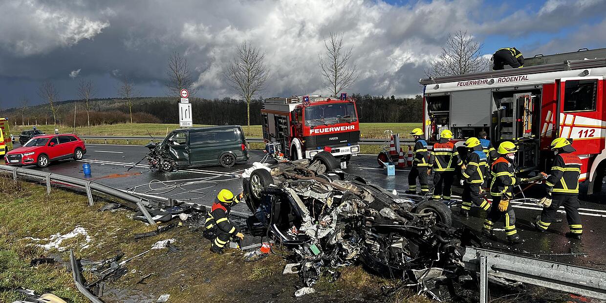 Bei einem schweren Verkehrsunfall auf der B4 bei Rödental sind am Mittwochnachmittag zwei Männer ums Leben gekommen. Der 25-Jährige Fahrer des Audis starb noch an der Unfallstelle, teilte die Polizei mit, sein 28-Jähriger Beifahrer verstarb nach vergeblicher Reanimation wenig später im Krankenhaus. Der Fahrer des VW-Busses erlitt leichtere Verletzungen, war an der Unfallstelle offenbar ansprechbar.