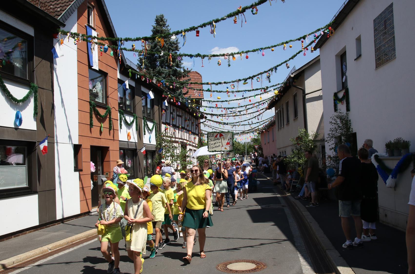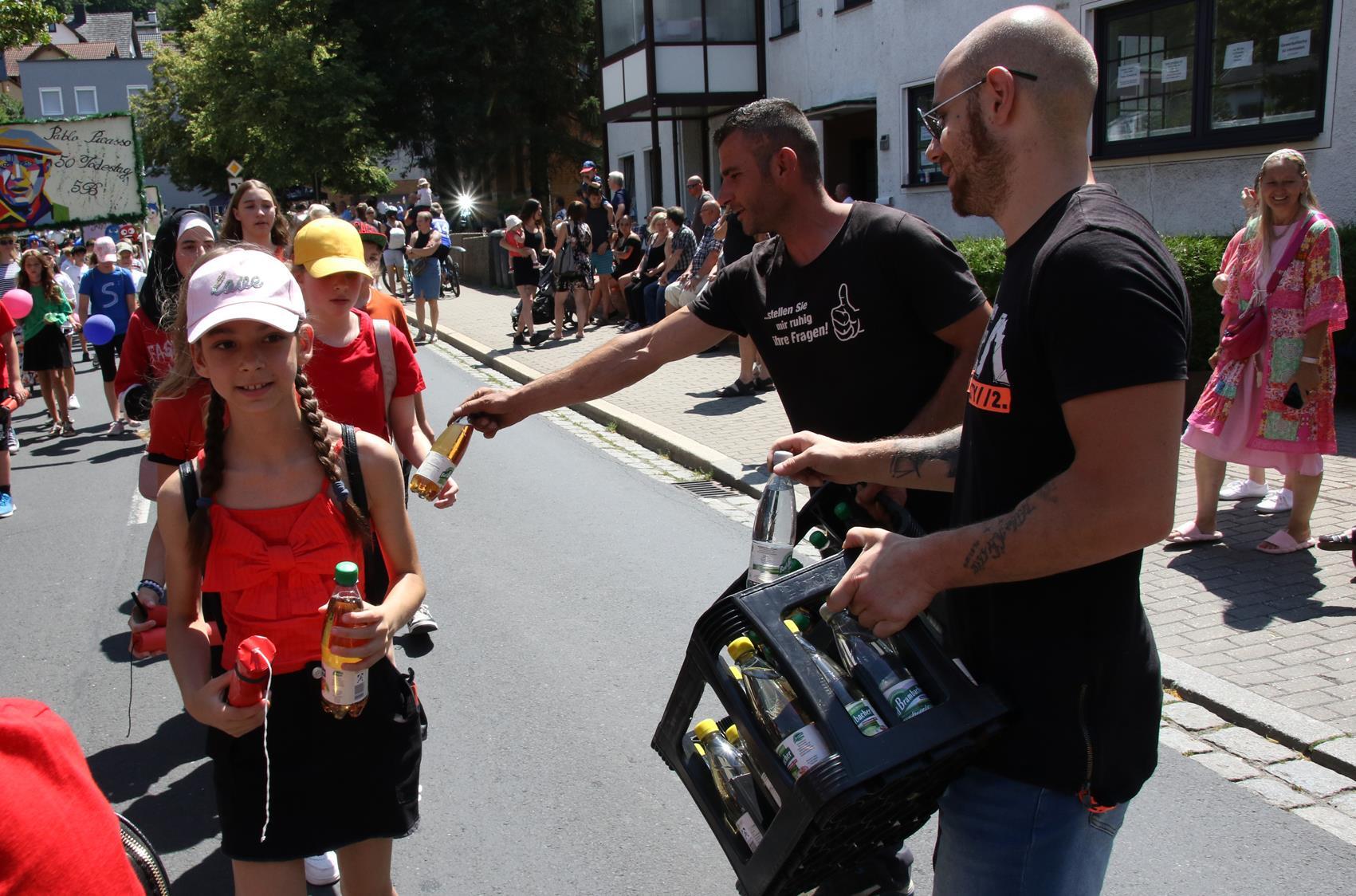 Brauchtum So bunt war das Neustadter Kinderfest Der traditionelle Tanz „Neustadter Rutscher“ fehlt nie. // M- Stelzner Schattenplätze – ziemlich begehrt. // M. Stelzner von Michael Stelzner TEILEN  09.07.2023 Neustadt bei Coburg – Dieses Fest gehört seit dem Mittelalter dazu: Am Wochenende gab Neustadt wieder alles für seine Kinder! Mehr Geschichte kann eigentlich nicht drin stecken: Seit 473 Jahren wird Kinderfest in Neustadt gefeiert und steht in der Tradition des Gregoriusfestes und hat seine Wurzel im Mittelalter. Es ist in eine lebendige Tradition in Neustadt, die nicht wegzudenken ist. Spiel und Spaß in der Hitze. // M. Stelzner Über 1200 Kinder- und Jugendliche aus allen Neustadter Schulen wirken dabei mit. Der Oberbürgermeister Frank Rebhan freut sich, dass das Fest als Immaterielles Kulturerbe aufgenommen wurde und ins Bayerische Landesverzeichnis geschafft hat. Damit werde die lebendige Tradition der engagierten Neustadter Bürger, die mit viel Herzblut das Kinderfest vorbereiten, gewürdigt. Start mit Musik Bereits am Freitag gab es die traditionelle Neifeier. Am Samstag, der ganz im Zeichen der Kinder stand, wurden die Neustadter Bürger bereits um 6.00 Uhr musikalisch geweckt. Pünktlich um 13.00 startete dann der große Festzug, mit den Kinder- und Jugendlichen, aus allen 6. Schulen in Neustadt. Die Glockenbergschule mit ihrer Schulleiterin Martina Partheymüller, war in diesem Jahr federführend. Ab mit der Schubkarre! // M. Stelzner Jede Schule hatte sich für den Umzug ein bestimmtes Motto einfallen lassen. Schon Wochen vorher wurde eifrig hierfür eifrig gemalt und gebastelt. Der Umzug wurde vom Puppentrabbi aus Hellingen und der Neustadter Bratwurst, sowie von der Puppenfee Emily Bamberger im Cabrio angeführt. Die Harlekinfahne wurde in diesem Jahr von einem Schüler der Glockenbergschule getragen. Viele Häuser und Straßen auf der Zugstrecke, wo weit mehr als 1000 Besucher standen, waren festlich geschmückt. In der Rödenstraße hingen wieder Girlanden. Um diese Tradition zu erhalten, baten die Anwohner mittels einer aufgestellten Box um Spenden. Für die Girlanden wurde um Spenden gebeten. // M. Stelzner Eine weitere Besonderheit war in diesem Jahr, dass ein heimischer Gewerbetreibender auf eigene Kosten, kühlende Getränke an die Zugteilnehmer verteilte, was auf Grund der hohen Temperaturen sehr gerne angenommen wurde. Viele Zugteilnehmer hätten sich aber zudem einen kühlenden Wassernebel auf der Zugstrecke gewünscht. Aufgrund der Hitze hatte das Team vom Roten Kreuz dann auch mehrere kleinere Einsätze. 10 Spielmannszüge und Blaskapellen gaben den Takt im Zug vor. Bunte Themen Das Thema der Glockenbergschule war „Welcome to Disneywold“. Auch Minnie und Mickey Mouse sowie Peter Pan waren dabei zu sehen. „Wie die Zeit verrinnt“ damit beschäftigte sich die Staatliche Realschule Neustadt“ Dabei wurde unter anderem eindrucksvoll aufgezeigt, wie viel Zeit man im Leben mit alltäglichen Dingen verbringt. Eine gut gelaunte Puppenfee! // M. Stelzner Das Arnold-Gymnasium hat sich mit den Jubiläen im Jahre 2023 beschäftigt. Darunter waren 70 Jahre James Bond und 40 Jahre „Die toten Hosen“ sowie 100 Jahre Disney und der 50. Todestag von Pablo Picasso. Die Grundschule Wildenheid-Haarbrücken hatte das passende Motto, mit „Eisgekühlt durch den Sommer“ für den heißen Samstag parat. Dabei durften natürlich das bekannte Neustadter Eis und ein Ausflug an den See, sowie ein Schattiges Plätzchen nicht fehlen. Helfer verteilten Getränke in der Hitze. // M. Stelzner Die Grundschule „An der Heubischer Straße beschäftigte sich mit dem Motto „Alda Kinderbüchla mach`n gescheid“. Viele Figuren aus Kinderbüchern waren dabei zu sehen, unter anderem „Der Räuber Hotzenplotz und Pippi Langstrumpf und die „Biene Maja“. Mit der Kultur von Neustadt beschäftigte sich die Mittelschule am Moos . Dabei wurde unter anderem auf der Puppenfestival und auf Rock im Freibad sowie auf das Country Festival eingegangen. Nach dem Umzug gings dann zum Schützenplatz. Was für ein bunter Anblick! // M. Stelzner Den traditionellen Staffellauf gewann wieder die Realschule. Über 100 Mädchen aus den 5 und 6. Klassen des Arnold-Gymnasiums, der Realschule und der Mittelschule führten einen Tanz vor. Logisch, der bekannte Neustadter Rutscher, wurde wieder von allen Schüler der 4. Klasse getanzt. Lesen Sie auch Mundart NECisch von A bis Z Neustadt hat so seine Eigenheiten. Das gilt auch für die Sprache. Die Neustadter pflegen ihre Mundart und sind ein wenig stolz darauf.Auswärtige dürften damit hin und wieder hadern. Brauchtum Der besondere Tanz des Neustadter Kinderfests Neifeier, Kinderfest und Marktfest rücken näher: Wenn am 8. Juli in Neustadt die Kinder im Mittelpunkt stehen, wird der „Rutscher“ nicht fehlen.