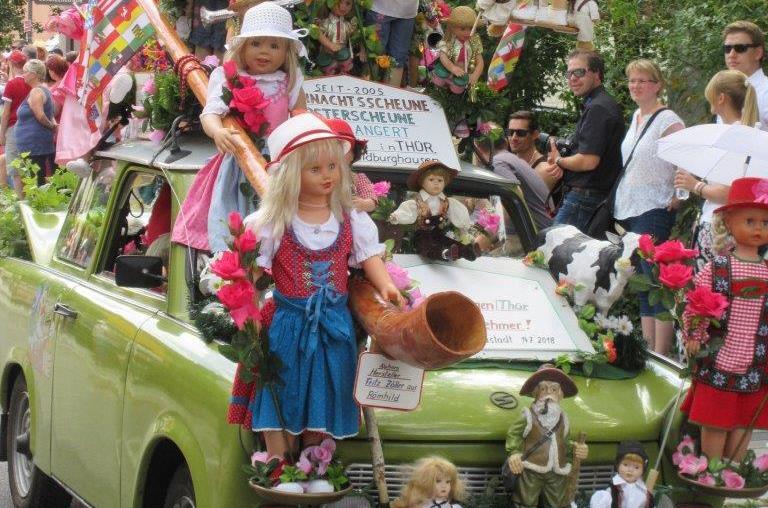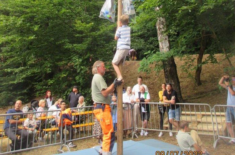 Brauchtum Der besondere Tanz des Neustadter Kinderfests Grundschüler tanzen den „Rutscher“ beim Kinderfest 2022 // Dieter Seyfarth von Dieter Seyfarth TEILEN  23.06.2023 Neustadt bei Coburg – Neifeier, Kinderfest und Marktfest rücken näher: Wenn am 8. Juli in Neustadt die Kinder im Mittelpunkt stehen, wird der „Rutscher“ nicht fehlen. Bald ist es wieder so weit! Beim Neustadter Kinderfest am Samstag, 8. Juli, wird wieder ganz Neustadt „aus dem Häuschen“ sein. Der „Neustadter Nationalfeiertag“ ist ja nicht nur ein Festtag für die Kinder, sondern für alle Neustadter. Bild vom Kinderfestumzug 1957 (2. Klasse G. Bretschneider) // Dieter Seyfarth Jeder, der die Kinderfeste während seiner Schulzeit miterlebt hat, denkt gerne daran zurück. Bei vielen kommt Wehmut auf. Kinderfestumzug, Freiübungen, Kletterbaum, Karussell, Glückshafen Kinderfestumzug, Freiübungen, Kletterbaum, Karussell, Glückshafen, Bratwürste, gebrannte Mandeln, Blasmusik, Festbetrieb auf dem Schützenplatz und Einkehr mit den Eltern und Großeltern in einem Biergarten – all das sind Erinnerungen, die bei jedem Neustadter in persönlich unterschiedlicher Weise haften geblieben sind. Schon die Eltern sind früher hier hochgeklettert. Manchmal ist für die Kinder etwas Hilfestellung am Kletterbaum notwendig. // Dieter Seyfarth Halt! Da fehlt noch der traditionelle „Rutscher“, ein Neustadter Tanz, der sich über die Zeiten bis heute erhalten hat und von den Grundschülern am Ende der sportlichen Vorführungen auf dem Schützenplatz getanzt wird. Schon die bekannte Melodie versetzt die Neustadter in eine besondere Stimmung, bereits dann, wenn sie bei den Kinderfestproben einige Tage vorher weit über den Schützenplatz hinaus zu hören ist. Dieser wunderschön geschmückte „Puppenwagen“ (Kinderfest 2018) wird sicherlich auch dieses Jahr wieder beim Umzug zu sehen sein. // Dieter Seyfarth Der Neustadter Heimatdichter Albert Arnold (1880 – 1965) hat zum „Rutscher“ ein wunderbares Gedicht mit fünf Strophen verfasst, das so nicht allen Neustadtern bekannt sein dürfte. Nachstehend der Originaltext, wie ihn Albert Arnold in seiner Sammlung „Von der Röden zur Itz“ im Jahre 1929 hat abdrucken lassen. Damals wurde „Der Rutscher“ beim Kinderfest nicht nur getanzt, sondern auch vorgetragen: Do’ Rutscher Wos is’ es Schönst’ von Kinnerfest, Fo Jung und Alt ’es Öllerbest’ Fo Körper un’ Gemüt? – Kei’ Festzug un’ kei’ Reigen net Mir su an Harz un’ Nion get, Als wie dös kleina Lied: „Rutsch hie! – Rutsch har! Do’ Schneider hot die Schneiderschar! Rutsch hie! – Rutsch har! Do’ Schneider hot die Schar!“ Wenn ich su auf do’ Galerie, Botrachtend es klei Völkla stieh’, Dou war ich widder jung! Un’ in Godank ’na rutsch’ ich mit: Jetzt hie an Schritt, jetzt har an Schritt Un’ jetzt rund ’rüm im Schwung! Rutsch hie! – Rutsch har! Do’ Schneider hot die Schneiderschar! Rutsch hie! – Rutsch har! Do’ Schneider hot die Schar!“ Es liegt im Tanz un’ Lidla drin Fo’ mich a weiser, tiefer Sinn, Dou recht’ ich mich donouch: Get mo’ sch amoul diquar im Laam, Dou muck’s ich net amoul im Traam, Dou tröst’ ich mich un’ soug: „Rutsch hie! – Rutsch har! Do’ Schneider hot die Schneiderschar! Rutsch hie! – Rutsch har! Do’ Schneider hot die Schar!“ Heit meit’s es Schicksal gut mit Dir: „Rutsch hie!“ – an Schritt noch vorn! – Net Dein Vostand vo’ Glück! ’s kaa morgen widder annersch g’sei’, ès Glück bläbt nie an Menschen treu: „Rutsch har!“ – an Schritt z o r ü c k ! „Rutsch hie! – Rutsch har! Do’ Schneider hot die Schneiderschar! Rutsch hie! – Rutsch har! Do` Schneider hot die Schar!“ Es Guta is: do’ Scheider hot Sei’ Schar noch, doufür dankt o’ Gott! Nu’ kaa ’ro et vo’darb’! Sulang mo`noch goarwot kaa’, Sulang is’ mo kei’ armer Maa’, drüm sing’ ich, bis ich starb’: „Rutsch hie! – Rutsch har! Do’ Schneider hot die Schneiderschar! Rutsch hie! – Rutsch har! Do’ Schneider hot die Schar!“ Noch mehr aus Neustadt bei Coburg: Recycling-Aktion Neustadt: Neues Leben für altes Spielzeug? Drei Monate lang wurde am Neustadter Wertstoffhof kaputtes und altes Spielzeug gesammelt. Doch was ist damit passiert und was war eigentlich das Ziel der Aktion? Jetzt gibt es erste Ergebnisse. Serie Neustadts später Dank an Hans Rollwagen Wo die Stadt Neustadt an ihren Ehrenbürger und früheren Ersten Bürgermeister Hans Rollwagen erinnert. Serie Neustadts Geschichte entscheidend mit geprägt Wo die Stadt Neustadt an ihren im Jahr 2008 verstorbenen Alt-Oberbürgermeister Hellmut Grempel erinnert.