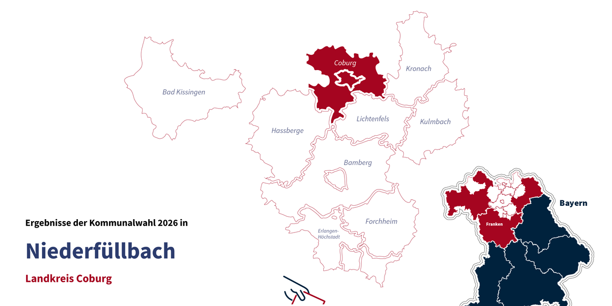 Die Bürgerinnen und Bürger von Niederfüllbach sind am 8. März 2026 zur Kommunalwahl in Bayern aufgerufen. In der rund 1450 Einwohner zählenden Gemeinde im Landkreis Coburg wird über die Besetzung des Gemeinderats sowie über das Amt des Ersten Bürgermeisters entschieden. Auf dieser Seite finden Sie die aktuellen Ergebnisse der Auszählung.