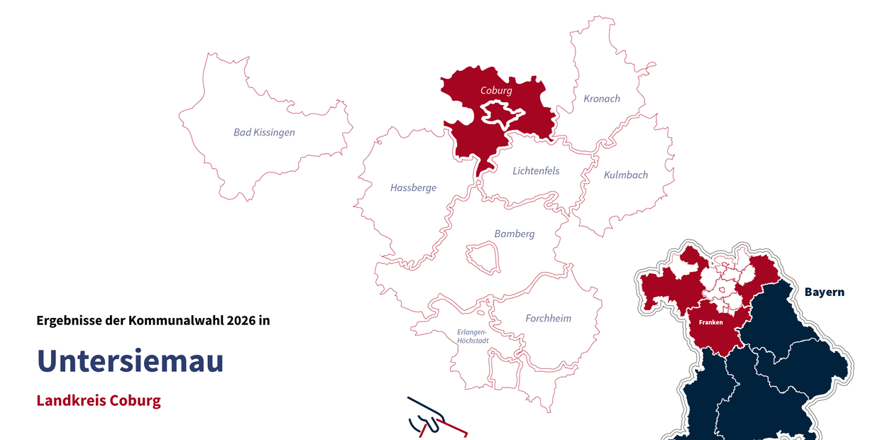 Die Bürgerinnen und Bürger von Untersiemau sind am 8. März 2026 zur Kommunalwahl in Bayern aufgerufen. Die Gemeinde im Landkreis Coburg mit rund 4.100 Einwohnern und neun Gemeindeteilen – Birkach a.Forst, Haarth, Meschenbach, Obersiemau, Scherneck, Stöppach, Untersiemau, Weißenbrunn a.Forst und Ziegelsdorf – entscheidet über die Besetzung des Gemeinderats und die künftige Rathausspitze. Auf dieser Seite finden Sie die aktuellen Ergebnisse der Auszählung.