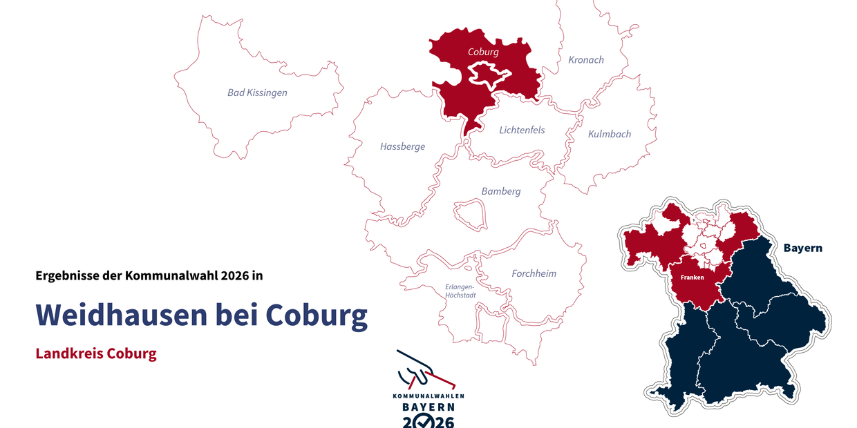 Die Bürgerinnen und Bürger der Gemeinde Weidhausen bei Coburg sind am 8. März 2026 zur Kommunalwahl in Bayern aufgerufen. In der Gemeinde mit rund 3.100 Einwohnern wird über die Besetzung des Gemeinderats sowie über das Amt des Ersten Bürgermeisters entschieden. Auf dieser Seite finden Sie die aktuellen Zwischenergebnisse im Verlauf der Auszählung.