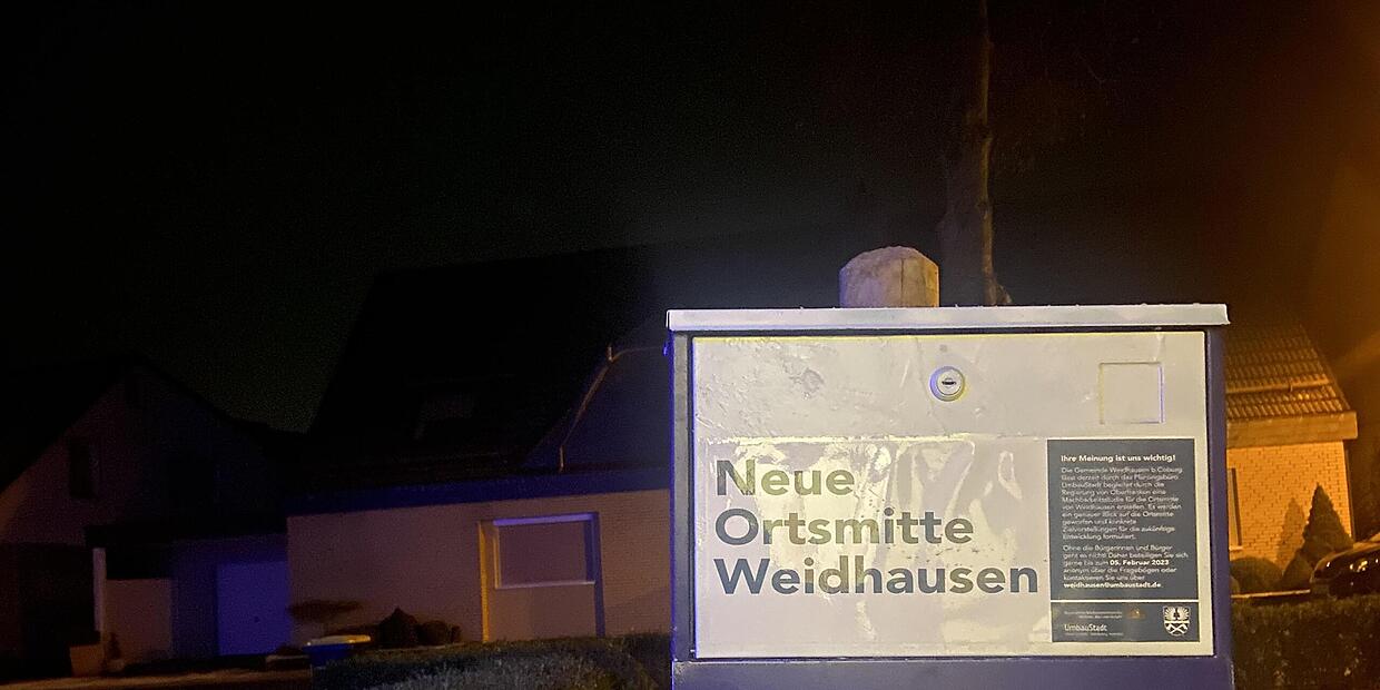 Ortsmitte Weidhausen Bürger machen nur wenige Vorschläge zur Gestaltung Cindy Dötschel von Cindy Dötschel TEILEN  07.02.2023 Weidhausen bei Coburg – Bei der Gestaltung der neuen Weidhäuser Ortsmitte sollen die Bürger einbezogen werden. Dafür wurden Fragebögen verteilt. Das Ergebnis war nicht so, wie erhofft. Artikel anhören Sie können uns nicht hören? Diese Funktion können Sie exklusiv mit PLUS nutzen. Erhalten Sie uneingeschränkten Zugriff auf alle Audioinhalte, Artikel und vieles mehr. Vorlesefunktion freischalten Bereits -Zugriff? Jetzt Anmelden Na, erwischt! Du bist wohl ein bisschen zu neugierig, was?