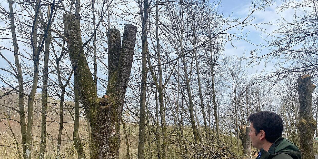– Aufregung in Mönchröden: Gefällte Eschen am Naturlehrpfad erregen die Gemüter. Stefan Wittenberg vom Forstbetrieb Coburg erklärt, warum die Maßnahme notwendig war.