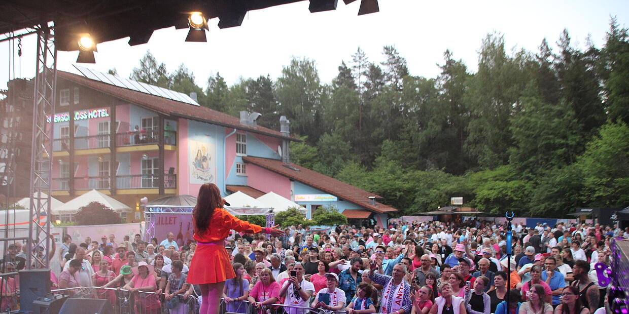 Noch in diesem Jahr! Schlagerschloss: Planungen für weitere Party Schlagerschloss-Hotel bei Coburg: Mehr als 100 Schlagerfans kamen zur Eröffnung. // Julia Scholl von Oliver Schmidt TEILEN  09.06.2025 LKR Coburg – Bei der rauschenden Eröffnungsparty standen unter anderem Voxxclub, Menderes und G. G. Anderson auf der Bühne. Schon bald könnten alle Schlagerfans erneut auf ihre Kosten kommen. Artikel anhören Sie können uns nicht hören? Diese Funktion können Sie exklusiv mit PLUS nutzen. Erhalten Sie uneingeschränkten Zugriff auf alle Audioinhalte, Artikel und vieles mehr. Vorlesefunktion freischalten Bereits -Zugriff? Jetzt Anmelden Wird das ehemalige Waldhotel Hubertus zum neuen Mekka für Schlagerfans? Diese Frage hatte das Coburger Tageblatt aufgeworfen – und nach der rauschenden Eröffnungsparty lautet die Antwort wohl: Ja! Bilder und Video Schlagerschloss: „Der Schlager hat ein Zuhause gefunden“ Das Wetter hält, die Stimmung kocht: Das Schlagerschloss hat am Samstagabend mit fast 1.000 Schlagerfans groß Eröffnung gefeiert. Und die Liste der Musiker konnte sich ebenso sehen lassen. Die Inhaber Angela Henn und Dennis Klak haben das Hotel zu einem Schlagerschloss-Hotel umgebaut. Zur Eröffnung Ende Mai pilgerten mehr als 1000 Schlagerfans in den Wald zwischen Rottenbach (Landkreis Coburg, Bayern) und Eisfeld (Thüringen). Bei der Eröffnungsparty standen unter anderem Voxxclub, Menderes, Norman Langen und G. G. Anderson auf der Bühne. Gefeiert, getanzt und gesungen wurde bis tief in die Nacht. RTL und MDR berichten Großes Medienecho auf Eröffnung des Schlagerschloss-Hotels Der neue Farbklecks bei Coburg stößt auf bundesweites Interesse. Mehrere TV-Teams berichten über die Eröffnungsparty. Erstmals wird auch ein Termin für den Start des regulären Hotelbetriebs genannt. Die enorme Resonanz auf das Event hat Angela Henn und Dennis Klak zum Nachdenken gebracht. Bislang war geplant, dass die beiden sich jetzt zunächst auf den regulären Hotelbetrieb konzentrieren, der Ende Juni starten soll. Doch auf Facebook haben sie an Pfingsten angekündigt: „Voraussichtlich am 20. September 2025 wird es ein weiteres Schlagerschloss-Event geben!“ Und: „Die Planungen laufen auf Hochtouren!!“ Es gebe sogar schon die Zusage von einem „sehr namhaften Künstler“. Dieser werde dann im Hotel auch ein Themenzimmer gewidmet bekommen. Themenzimmer gibt es im Schlagerschloss-Hotel bislang vier: für Voxxclub, Wolfgang Petry, G. G. Anderson sowie Angela Henn & Dennis Klak selbst. Schlagerschloss-Hotel bei Coburg: Angela Henn und Dennis Klak singen auch selbst. // Julia Scholl Mitten im Wald! Eisfeld in Thüringen: Das neue Mekka für Schlagerfans? Woodstock, Metall, Klassik: Die kleine Stadt zieht seit jeher die Liebhaber vieler verschiedener Musikrichtungen an. Der Bürgermeister erklärt, warum er sich jetzt auch noch über Schlagerfans freut. Party zur Eröffnung Schlagerschloss bei Coburg: Jetzt wird der Traum wahr Sie wurden belächelt. Doch Angela Henn und Dennis Klak haben sich nicht beirren lassen. Jetzt wird ihr Traum von einem Schlagerschloss Wirklichkeit. Am Samstag ist Eröffnung mit vielen Stars.