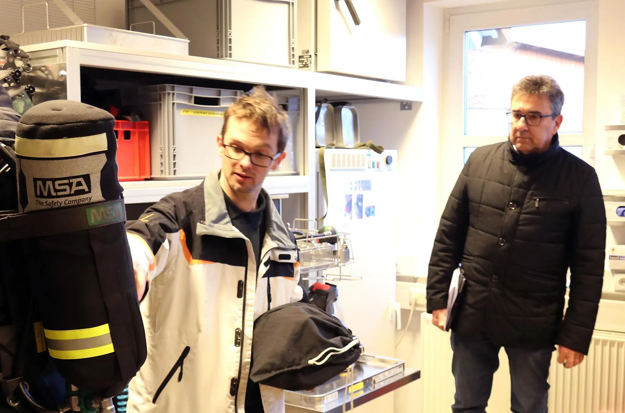 Lebensretter Was der Feuerwehrstützpunkt Untersiemau braucht Der Atemschutzbeauftragte der Feuerwehren in Untersiemau, Dirk Engel, erklärt Bürgermeister Rolf Rosenbauer und den Bauausschussmitgliedern die Funktionsweise eines Atemschutzgerätes. // Alexandra Kemnitzer von Alexandra Kemnitzer TEILEN  18.01.2023 Untersiemau – Im Gebäude der Feuerwehr Untersiemau werden Atemschutzgeräteträger ausgebildet und ausgestattet. Dafür muss die Gemeinde einiges investieren. Die Mitglieder des Ausschusses für Infrastruktur, Bauen und Umwelt der Gemeinde Untersiemau besichtigten das Stützpunkt-Feuerwehrzentrum Untersiemau. Dort wurde unter anderem die Atemschutzwerkstatt umgebaut und neu ausgestattet. Die Gesamtausgaben belaufen sich auf rund 16.700 Euro. Dass sich diese Investition geloht hat, machte der Atemschutzbeauftragte der Feuerwehren in Untersiemau, Dirk Engel, mit seinen ausführlichen Erläuterungen deutlich. Unter anderem werden in der Atemschutzwerkstatt Masken nach Einsätzen für die Untersiemauer und die Schernecker Wehr gereinigt, aber auch Sauerstoffflaschen für Nachbarwehren befüllt. „Atemschutzgeräteträger gehen da rein, wo andere rausgehen“ Bei etwa 25 bis 30 Einsätzen, die jährlich von den Dienstleistenden absolviert werden, sind auf den Einsatzfahrzeugen auch immer Atemschutzgeräte mit dabei. „Die Atemschutzgeräteträger gehen nämlich da rein, wo andere raus gehen“, erklärte Kommandant Julian Henkel. Somit sind die Geräteträger nicht nur bei Bränden gefragt, sondern überall da, wo sich gefährliche Stoffe in der Luft befinden. Dirk Engel, Atemschutzbeauftragter der Feuerwehren in Untersiemau, Dirk Engel (3.v.r.), gab den Ausschussmitgliedern zur Atemschutzwerkstatt Erläuterungen. // Alexandra Kemnitzer Im Laufe der weiteren Besichtigung informierte der Kommandant, dass im Untersiemauer Gerätehaus auch überregionale Schulungen für Atemschutzgeräteträger und Maschinisten oder auch Workshops durchgeführt werden. Reparaturen und neuer Anstrich im Feuerwehrgerätehaus Untersiemau notwendig Aus diesem Grund seien kleinere Arbeiten im Treppenhaus und im Schulungsraum notwendig. Einiges müsste neu gestrichen und ausgebessert werden, die Türbänder seien locker, auch das Schließsystem sei in die Jahre gekommen. Es sollte alles top sein. Schließlich fänden sich hier Feuerwehrdienstleistende aus dem südöstlichen Bereich des Landkreises zu den entsprechenden Schulungen ein. Nach dem Rundgang durch den Stützpunkt erinnerte Bürgermeister Rolf Rosenbauer: „Wir müssen uns auch der Thematik Feuerwehrbedarfsplan annehmen.“ Neben einem zweiten Rettungsweg müssten auch Umkleiden für die weiblichen Aktiven geschaffen werden. Lesen Sie auch: Gemeinde bezahlt’s Warum die Weitramsdorfer Wehr so viel braucht Weitramsdorf steckt viel Geld seines Haushalts in den nächsten zehn Jahren in die Feuerwehr. Die hat die Argumente auf ihrer Seite. Vortrag Ein Atemschutzgerät reicht nicht Brandrauch setzt sich aus 5000 Giftstoffen zusammen, die Feuerwehrleute im Einsatz auf drei verschiedenen Wegen aufnehmen – mit fatalen Folgen. Unfall Untersiemau: Schwerverletzter bei Zusammenstoß Ein schwerer Verkehrsunfall zwischen einem Lastwagen und einem Auto hat sich am Montagmorgen in Untersiemau ereignet. Planung Teurer Straßenerhalt für Untersiemau Das hört nicht auf: Auch 2023 muss die Gemeinde Untersiemau wieder einige Straßen flicken und reparieren.