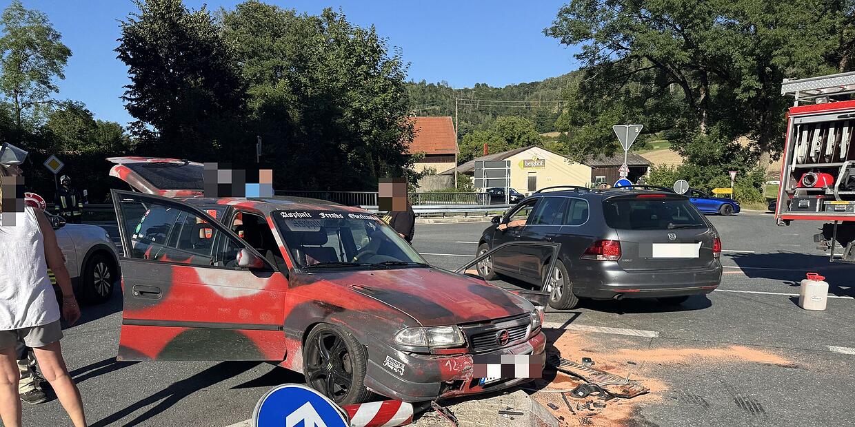Crash auf der Bundesstraße Schwerer Unfall: Bei Zettlitz hat es gekracht Drei Fahrzeuge waren in den Unfall verwickelt. Eine Person musste mit der Rettungsschere aus dem Auto befreit werden. // Foto: Klaus Rößner von Redaktion TEILEN  11.08.2025 Zettlitz – Ein schwerer Unfall hat sich am frühen Montagabend auf der B 303 im Stadtsteinacher Land ereignet. Die Bundesstraße war zeitweise gesperrt. Die Feuerwehr musste zu einem besonderen Mittel greifen. Artikel anhören Sie können uns nicht hören? Diese Funktion können Sie exklusiv mit PLUS nutzen. Erhalten Sie uneingeschränkten Zugriff auf alle Audioinhalte, Artikel und vieles mehr. Vorlesefunktion freischalten Bereits -Zugriff? Jetzt Anmelden Die Rettungskräfte waren zu Wochenbeginn im Stadtsteinacher Land so richtig gefordert. Nach dem Brand am Nachmittag auf einem landwirtschaftlichen Anwesen in Losau hat es gegen 17 Uhr auf der B 303 gekracht. Auch dieses Fahrzeug wurde schwer beschädigt. // Foto: Klaus Rößner Der schwere Unfall hat sich auf Höhe von Zettlitz ereignet, dort, wo sich die Abzweigung nach Grafendobrach befindet. Drei Fahrzeuge waren beteiligt. Eine Person musste mit der Rettungsschere aus dem Fahrzeug befreit werden und wurde mit schweren Verletzungen ins Klinikum gebracht. Dieses Auto kam auf der Verkehrinsel zum Stehen. // Foto: Klaus Rößner Der Sachschaden ist enorm. Die Wehren aus Rugendorf, Zettlitz und Stadtsteinach waren im Einsatz. Die Bundesstraße war zeitweise voll gesperrt. Lesen Sie auch Brand in Losau Heuballen brennen nahe von Jungtierstall Der Brand auf einem landwirtschaftlichen Anwesen in Rugendorf hat zahlreiche Einsatzkräfte auf den Plan gebracht. Besonderes Risiko: Rund 50 Jungtiere befanden sich in der Nähe des Feuers. Großer Löscheinsatz Auf einem Bauernhof im Stadtsteinacher Land brennt es Eine große Rauchsäule ist im Stadtsteinacher Land zu sehen. Auf einem landwirtschaftlichen Anwesen im Rugendorfer Ortsteil Losau brennt es.