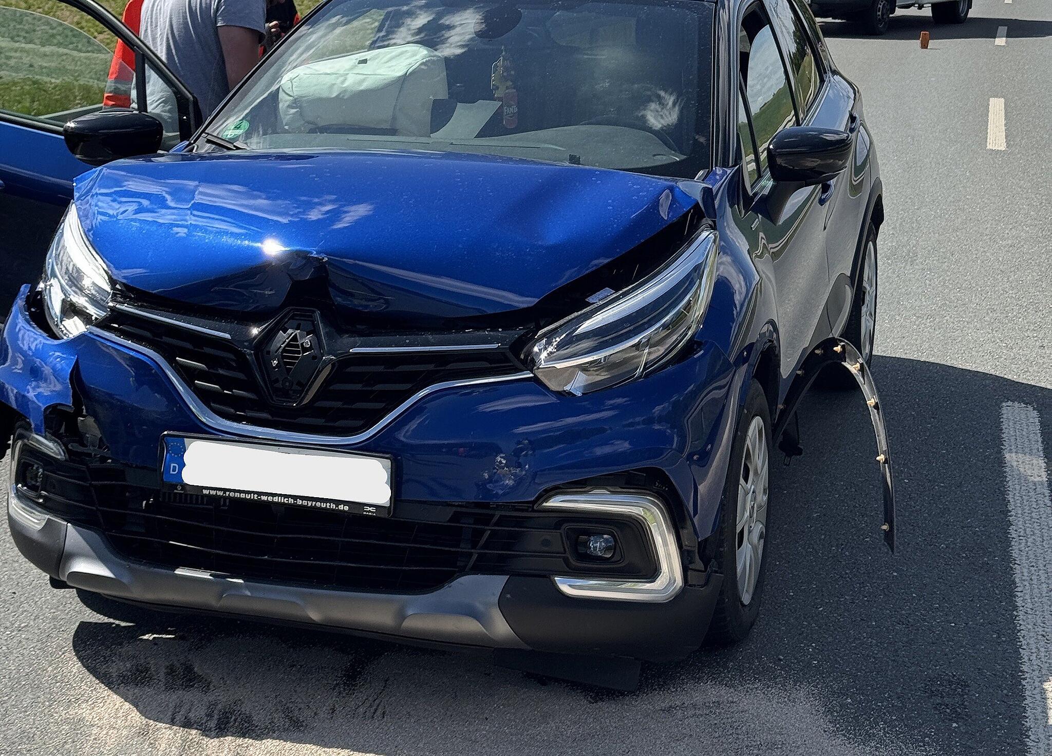 Zeugen gesucht Unfall auf der B 303 bei Stadtsteinach: Zwei Verletzte Nach einem Auffahrunfall bei Stadtsteinach war die B303 nur eingeschränkt befahrbar (Symboldbild). // Stefan Puchner/dpa von Redaktion TEILEN  26.05.2025 Stadtsteinach – Ein Überholmanöver auf der Bundesstraße 303 bei Stadtsteinach führte am Samstagnachmittag zu einem Auffahrunfall mit zwei Verletzten und erheblichem Sachschaden – die Polizei bittet um Hinweise. Artikel anhören Sie können uns nicht hören? Diese Funktion können Sie exklusiv mit PLUS nutzen. Erhalten Sie uneingeschränkten Zugriff auf alle Audioinhalte, Artikel und vieles mehr. Vorlesefunktion freischalten Bereits -Zugriff? Jetzt Anmelden Am Samstag, 24. Mai, kam es auf der Bunddesstraße 303 zwischen Stadtsteinach und Untersteinach zu einem Verkehrsunfall mit zwei Verletzten. Riskantes Überholmanöver Ein 52-jähriger Toyota-Fahrer aus dem Landkreis Bayreuth überholte gegen 14:45 Uhr einen langsam fahrenden Pkw auf der B303. Ein entgegenkommender Golffahrer erkannte die Gefahr, bremste stark ab – was eine Kettenreaktion auslöste. Zwei Personen leicht verletzt – hoher Sachschaden Hinter dem Golf kam es zu einem Auffahrunfall: Eine 77-jährige Skoda-Fahrerin bremste stark, woraufhin ein 29-jähriger Renault-Fahrer aus dem Kreis Bayreuth auffuhr. Der Beifahrer der Frau sowie der Renault-Fahrer wurden leicht verletzt und ins Klinikum Kulmbach gebracht. Der Sachschaden beläuft sich auf rund 25.000 Euro. Das Unfallfahrzeug aus dem Kreis Bayreuth. // Foto: Klaus Rössner Verkehrsbehinderungen und Zeugenaufruf Die Unfallstelle war etwa eine Stunde lang nur eingeschränkt passierbar. Der Golffahrer, der seine Fahrt fortsetzte und den Unfall wahrscheinlich nicht bemerkte, sowie weitere Zeugen werden gebeten, sich bei der Polizeiinspektion Stadtsteinach zu melden.