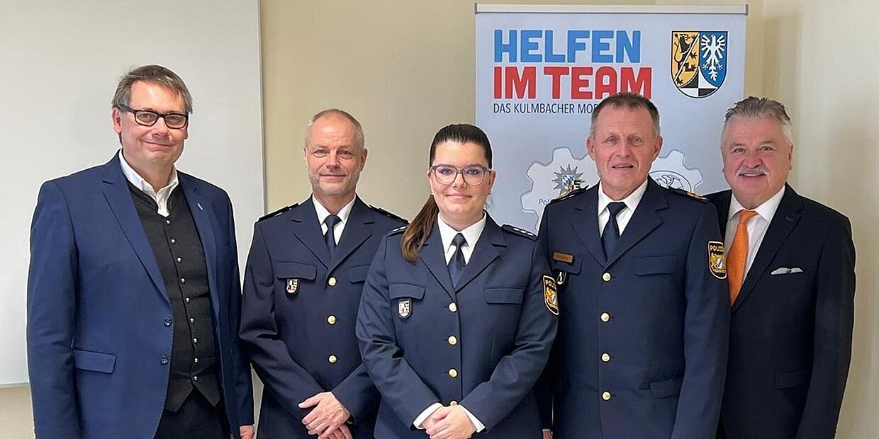 Mit bei der Vorstellung waren auch Landrat Klaus Peter Söllner (FW) und Bürgermeister Roland Wolfrum (SPD). Die neue Dienststellenleiterin durchläuft aktuell das Förderverfahren für die vierte Qualifikationsebene (früherer höherer Dienst). Sie übernimmt die Dienstgeschäfte von Erstem Polizeihauptkommissar Marco Gottesmann, der künftig die Polizeiinspektion Münchberg führen wird.