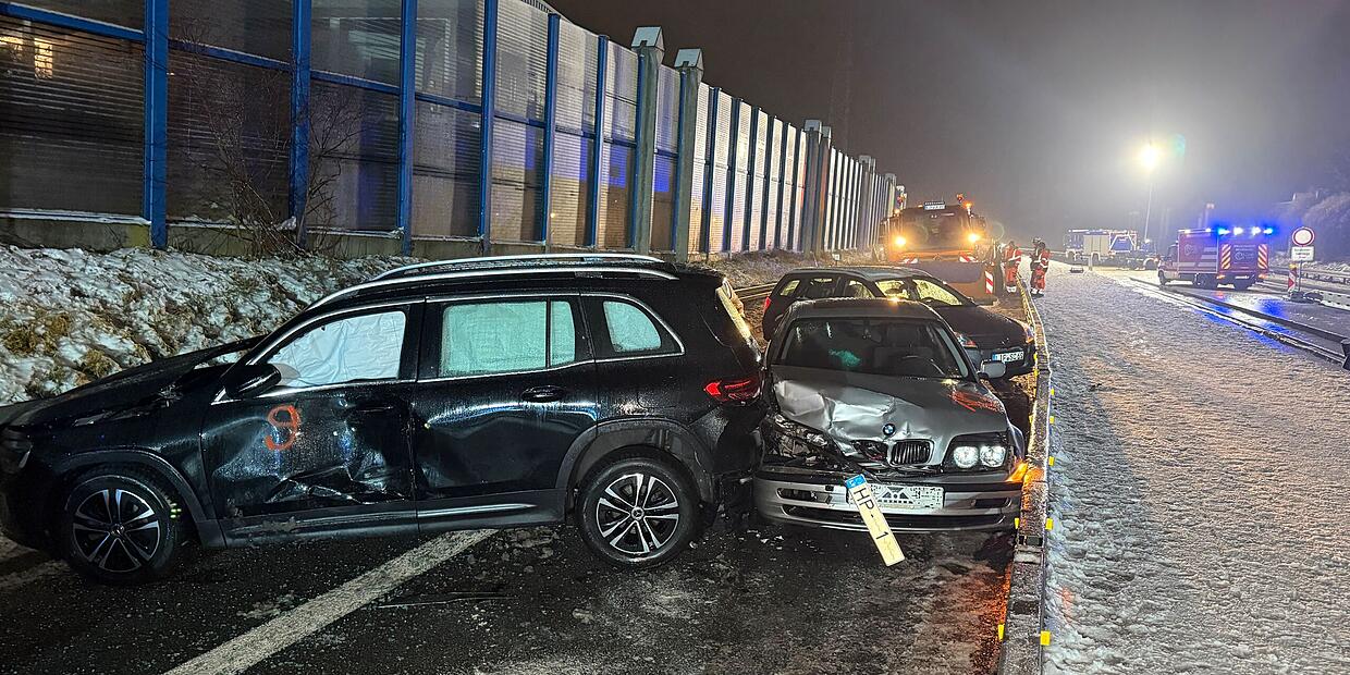Plötzlich einsetzender Eisregen hat am Montagabend (12. Januar 2026) in Lichtenfels zu einem Unfall mit Vollsperrung geführt. Gegen 18.45 Uhr wurden in Fahrtrichtung Kronach insgesamt 20 Fahrzeuge, darunter ein Sattelzug und ein Streufahrzeug, in die Massenkarambolage verwickelt.