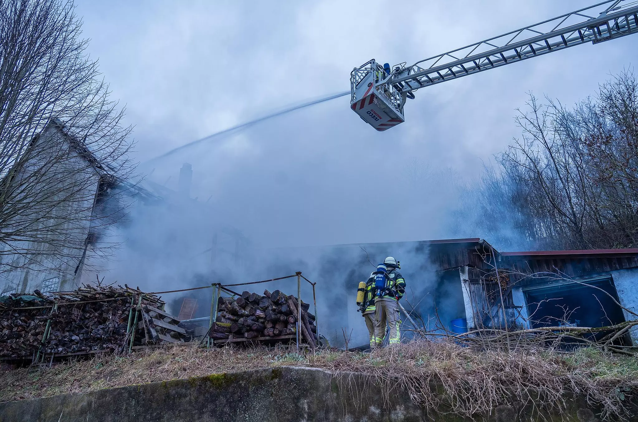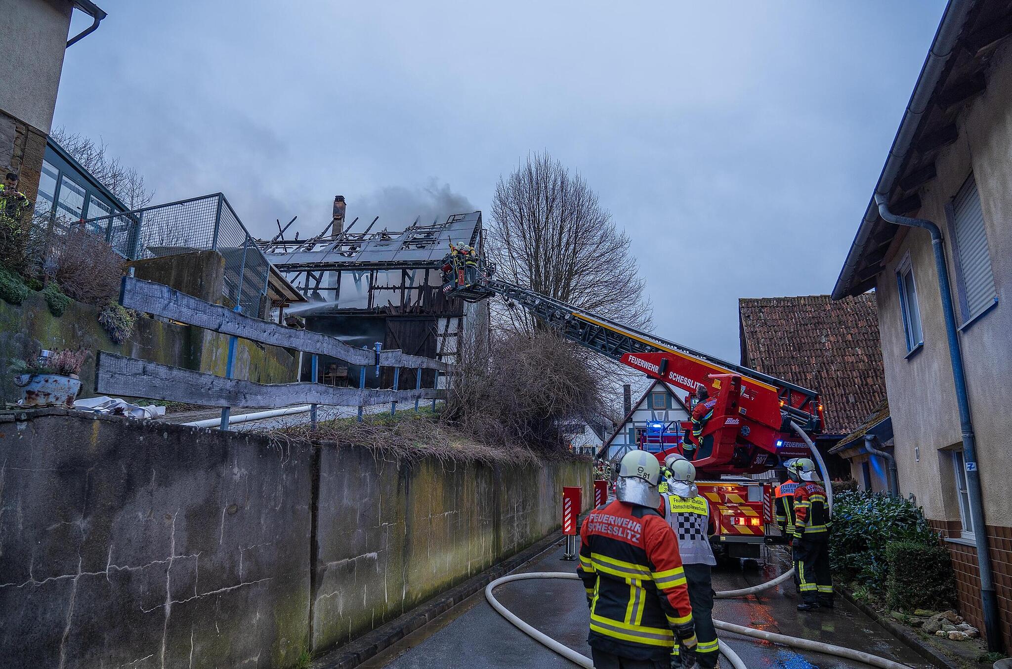 Schutt und Asche Feuer in Dittersbrunn schwierig zu löschen Die Löscharbeiten haben sich schwierig gestaltet. // News5/F. Merzbach von Redaktion TEILEN  28.01.2025 Dittersbrunn – Bei einem verheerenden Scheunenbrand in Dittersbrunn (Kreis Lichtenfels) kämpfen bis zu 200 Feuerwehrleute mit den Flammen. Trotz aller Mühen blieb nur noch Asche und ein immenses Schadensbild zurück. Eine Scheune in Dittersbrunn bei Ebensfeld ist am Montagnachmittag in Brand geraten und vollständig ausgebrannt. Großeinsatz in Dittersbrunn: Schwierige Löscharbeiten Zeugen hatten gegen 15.40 Uhr die Flammen bemerkt und die Feuerwehr alarmiert. Trotz des schnellen Eingreifens der rund 150 bis 200 Feuerwehrleute brannte das Gebäude komplett nieder. Da die Einsatzkräfte das Gebäude nur von einer Seite erreichen konnten, gestalteten sich die Löscharbeiten schwierig. Unter anderem kamen zwei Drehleitern zum Einsatz. Zwei Drehleitern sind im Einsatz gewesen. // News5/F. Merzbach Großeinsatz in Dittersbrunn: Großer Schaden Auf der Scheune befand sich eine Photovoltaikanlage sowie im Innern mehrere Gerätschaften. Der Gesamtschaden beträgt schätzungsweise 150.000 Euro. Die Scheune ist völllig niedergebrannt. // News5/F. Merzbach Zehn Hasen verendeten im Feuer. Eine Person wurde aufgrund eines Schocks ins Krankenhaus gebracht, ansonsten wurde niemand verletzt. Die Kriminalpolizei Coburg ermittelt nun zur Ursache des Großbrandes.