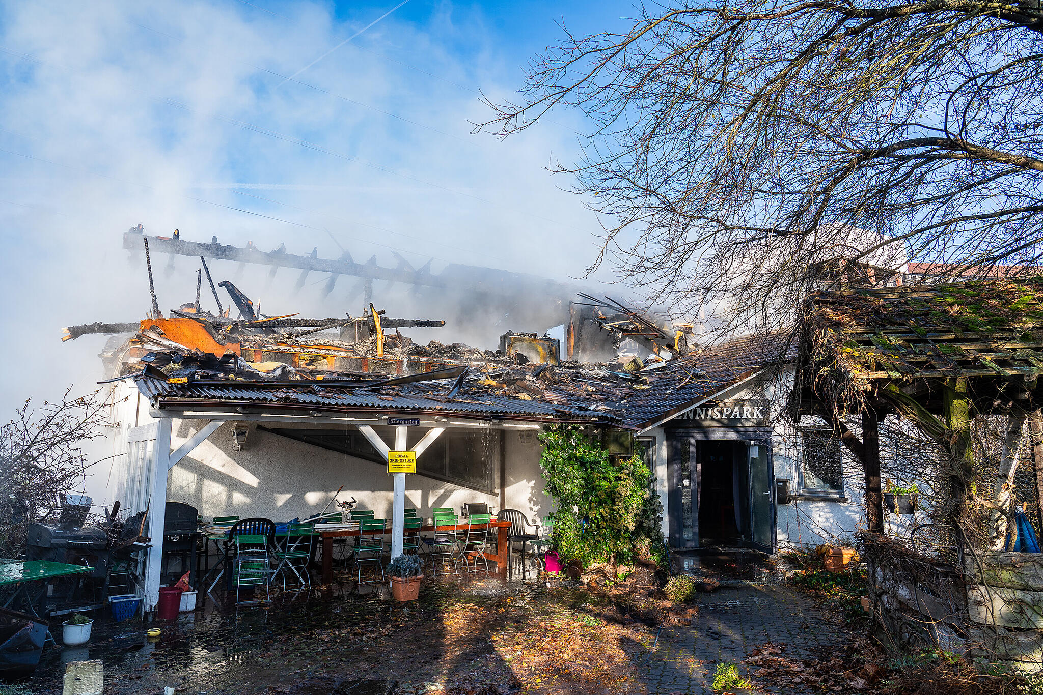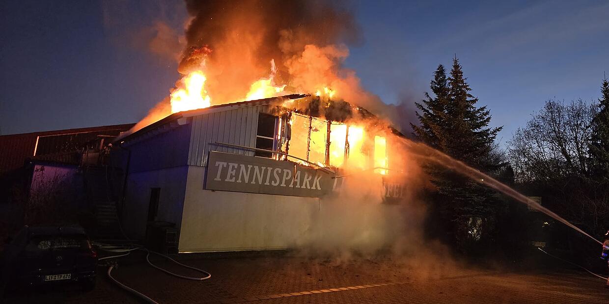 Tennispark in Flammen Brand in Lichtenfels: Bewohner und Feuerwehrmänner verletzt In dem Gebäude an der Friedenslinde Lichtenfels befinden sich zwei private Wohnungen sowie das Gasthaus des Tennisclubs. // Foto: Ferdinand Merzbach, NEWS5 von Carolin Gißibl TEILEN  01.12.2024 Lichtenfels – Am Morgen des 1. Advents wurde in Lichtenfels ein Mann durch einen Brand lebensgefährlich verletzt. Rund 120 Einsatzkräfte kämpften gegen die Flammen. Aufgrund von Glätte verletzten sich drei Helfer. Nach einem Brand am Tennispark in Lichtenfels ist eine Person schwer verletzt worden. Ein Rettungshubschrauber transportierte den 50-Jährigen mit lebensgefährlichen Verletzungen in eine Klinik nach Nürnberg, wie das Polizeipräsidium Oberfranken auf Anfrage des Fränkischen Tags bestätigte. Das Feuer war am 1. Advent (1.12.12024) gegen sieben Uhr morgens ausgebrochen. Eine dunkle Rauchwolke zog über ein nahe gelegenes Wohngebiet in Lichtenfels, sodass Bewohnerinnen und Bewohner vor Gesundheitsschäden gewarnt wurden. // Foto: Ferdinand Merzbach, NEWS5 Mit einem Bagger gegen das Feuer In dem Gebäude an der Friedenslinde Lichtenfels befinden sich zwei private Wohnungen sowie das Gasthaus des Tennisclubs. Der 50-Jährige befand sich im oberen Bereich des Hauses. Nach Angaben der Polizei befreiten sich drei weitere Personen eigenständig aus dem Gebäude. Da immer wieder Glutnester ausbrachen, haben die Einsatzkräfte Teile der Dachhaut mit einem Bagger abgerissen. Um Glutnester zu löschen, wurde mit einem Bagger die Dachhaut der Halle abgerissen. // Foto: Ferdinand Merzbach, NEWS5 Eine Rauchwolke zog in Richtung eines größeren Wohngebietes im Lichtenfelser Osten, weshalb dem Nachrichtenportal News5 zufolge eine Warnung mit den Worten „Gesundheitsgefährdung nicht ausgeschlossen“ vermeldet worden war. Rund 120 Einsatzkräfte verhinderten ein Übergreifen der Flammen auf die Tennisanlage. +++ Bleiben Sie mit dem Fränkischen Tag auf dem Laufenden und holen Sie sich jetzt unsere kostenlosen Newsletter. +++ Kälte erschwert Einsatz: Feuerwehrleute rutschen aus Aufgrund von Minustemperaturen unter minus vier Grad Celsius gestaltete sich der Einsatz schwierig: Das Löschwasser gefror auf dem Boden zum Teil, weshalb mehrere Helfer ausrutschten. Drei Feuerwehrleute haben sich Markus Witzgall zufolge, Pressesprecher Feuerwehr Landkreis Lichtenfels, leicht verletzt. Der Schaden wird auf einen mittleren, sechsstelligen Bereich geschätzt. // Foto: Ferdinand Merzbach, NEWS5 Den Schaden schätzt die Polizei auf einen mittleren sechsstelligen Bereich. Zur Brandursache ermittelt die Kriminalpolizei Coburg. Das könnte Sie auch interessieren: Feuerwehreinsatz Hausbrand: Großalarm in Horb am Main Dramatische Szenen haben sich am Mittwoch, 20. November, in Horb am Main abgespielt, als ein Haus in Flammen stand. Die Einsatzkräfte der Region hatten das Feuer aber schnell unter Kontrolle. Retter in Aktion Lichtenfels in Alarmbereitschaft: DLRG probt Ernstfall Volle Konzentration am Main und Ortswiesensee in Lichtenfels: Die DLRG trainiert unter realistischen Bedingungen. Überraschende Herausforderungen und spektakuläre Rettungsaktionen inklusive. Feuerwehr Jugend trainiert: Übung stärkt die Schlagkraft Vor knapp zwei Jahren gründete sich bei der Feuerwehr Seubelsdorf wieder eine Jugendgruppe.