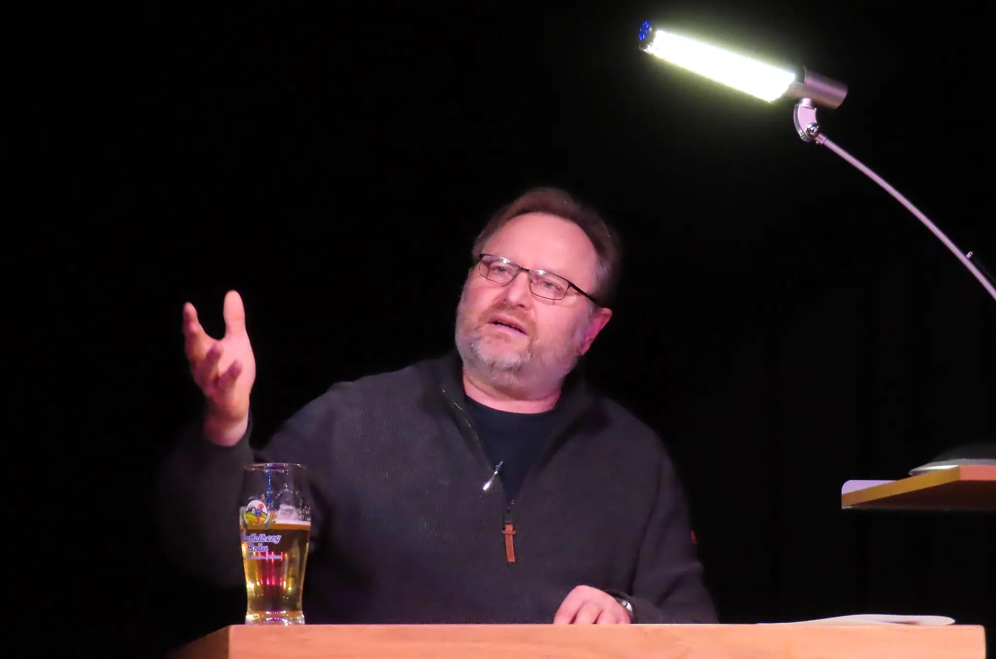 Auftritt in Bad Staffelstein Helmut Vorndran liest aus seinem aktuellen Krimi „Phi“ Krimiautor Helmut Vorndran liest aus dem Frankenkrimi "Phi" : Statt seines Radlers spielt in "Phi" spielt die Verabredung auf ein Bier eine wegweisende Rolle. // Monika Schütz von Monika Schütz TEILEN  22.04.2024 Bad Staffelstein – In Helmut Vorndrans aktuellem Krimi „Phi“ fallen Tote vom Himmel - ein Unfall? Und warum riecht es nach Parfum? Der Autor las in der Alten Darre in Bad Staffelstein. Helmut Vorndran aus dem unterfränkischen Neustadt an der Saale ist überzeugter Franke. Er wohnt nicht nur im Kreis Bamberg, er lässt auch die Handlungen seiner Geschichten hier spielen. Seine fiktiven skurrilen Hauptdarsteller leben in Franken, sie treffen sich auf ein Bier im Greifenklau oder auf Kloster Banz, sie wandern hoch zum Staffelberg oder versammeln sich im Bamberger Atrium. Immer mit dabei: der fränkische Dialekt. Kein Wunder, dass Helmut Vorndran vor der Lesung aus seinem Krimi „Phi“ erst sein Publikum in der Alten Darre inspizierte: „Ist jemand da, der des Fränkischen nicht mächtig ist?“ Tatsächlich meldete sich ein Zuhörer aus Niederösterreich. Die Scherzfrage: „Bist du schon frankiert?“, nahm der Herr gelassen und lachte herzhaft. Auch ein Ehepaar aus der Oberpfalz hob die Finger. Dann wurde es fast kritisch: Zwei Damen aus Unterfranken waren ebenso unter den Gästen. „Oh, dann les ich langsamer“, versprach Vorndran. Lesung „Asterix“ begeistert auf Fränkisch Wenn „Das Eich“ aus seinen ins Fränkische übersetzten Comics liest, kringelt sich das Publikum vor Lachen. Seit 2013 ausschließlich Schriftsteller Eigentlich war Vorndran zunächst Kabarettist. Mit dem „Totalen Bamberger Cabaret“, das er 1984 mitbegründete, begann seine Kabarettkarriere. Schlagzeilen machte das Trio „TBC“ 1994, als sich alle drei um das Amt des Oberbürgermeisters von Bamberg bewarben. Vorndran erzielte 1,53 Prozent der Stimmen. "Ja, das war echt knapp", unterbrach Vorndran den Vorsitzenden der KIS, Herman Hacker, der ihn vorstellte und anmoderierte. Helmut Vorndran arbeitet außerdem als Autor, unter anderem für Antenne Bayern und das Bayerische Fernsehen. Seit 1990 lebt er in einer alten Mühle an der Itz in Rattelsdorf. 2009 erschien beim Emons Verlag sein erster Frankenkrimi „Das Alabastergrab“. Dieser Krimi spielt in und um Bamberg und auf Kloster Banz. Innerhalb von neun Monaten wurden über 10.000 Exemplare von Alabastergrab verkauft. 2012 beendete Helmut Vorndran seine Tätigkeit als Kabarettist und arbeitet seit 2013 ausschließlich als Schriftsteller. Seine zahlreichen Kriminalromane folgen einem Muster: die Titel beginnen alphabetisch. Inzwischen ist er beim Buchstaben „P“ angelangt, der aktuelle Band „Phi“ erschien im Juli 2023. Schon ist der nächste Kriminalroman fertig: „Die Quokka-Insel“ - er wird am 25. Juli 2024 erscheinen. „Wir freuen uns, dass er da ist und dass auch awengla was Kabarettistisches rüberkommt“, hoffte Herman Hacker. Er wurde nicht enttäuscht. Vorndran erklärte in seiner beschwörend-lustigen, ernsten Art: „Ihr dürft euch dieses Buch nicht so vorstellen wie der Tatort am Sonntagabend, eher wie der aus Münster: Da geht es nicht immer ernst zu. Ich les' auch lieber das Lustige vor, als dass ich Blut vom Tisch tropfen lass.“ +++ Bleiben Sie mit dem Fränkischen Tag auf dem Laufenden und holen Sie sich jetzt unsere kostenlosen Newsletter. +++ In „Phi“ führt Vorndran eine neue Kollegin ein In „Phi“ lässt er die Bamberger Kommissare Franz Haderlein, Cesar Huppendorfer und Lagerfeld in einem rätselhaften Mordfall ermitteln. Mit Kommissarin Kira Sünkel bringt Helmut Vorndran eine neue und vor allem ungewöhnliche Kollegin ins Spiel. Was weiß sie über den abgestürzten Heißluftballon? Und warum nehmen die beiden tierischen Helfer, die Ermittlerschweine Pressack und Riemenschneider, plötzlich eine Geruchsfährte auf? Dann taucht auch noch Ilon Musg auf - Kann Haderleins Sekretärin Honeypenny etwas zur Aufklärung beitragen? Die Lesung machte neugierig. Natürlich gab es kurze und treffend ausgesuchte Episoden zu hören - und wer Helmut Vorndran kennt, weiß, dass er diese Episoden mit seinem unvergleichlichen Humor und kabarettistischen Einlagen vorträgt. Bei der äußerst unterhaltsamen Lesung trank Helmut Vorndran ein Radler - doch in seinem Frankenkrimi „Phi“ spielen die Einladung auf ein Bier und ein erotischer verbaler Schlagabtausch eine wegweisende Rolle. Ein richtig gelungener Abend - danke schön, KIS! Lesen Sie auch: Podcast "Fränkischer Talk" Helmut Vorndran, wie kriminell sind die Franken? 13 Jahre, 13 Bücher: Franken-Krimi Autor Helmut Vorndran erzählt im neuen Podcast von literarischen Morden und echten Morddrohungen, vom Schreiben und aus dem Leben. Und: Es gibt Bücher zu gewinnen! Maßnahmen Unterstützung für die Blaskapelle Marktgraitz Der Gemeinderat genehmigt pünktlich zum Jubiläum 4000 Euro für eine einheitliche Ausstattung der Blaskapelle Marktgraitz.Außerdem wurden die Maßnahmen zur Landespflege beschlossen. Esther Schadt Großer Auftritt für junges Talent In Experten-Kreisen hat die Lichtenfelserin Esther Schadt längst einen Namen. Warum sie demnächst an der Rieger-Orgel der Basilika Vierzehnheiligen spielt.