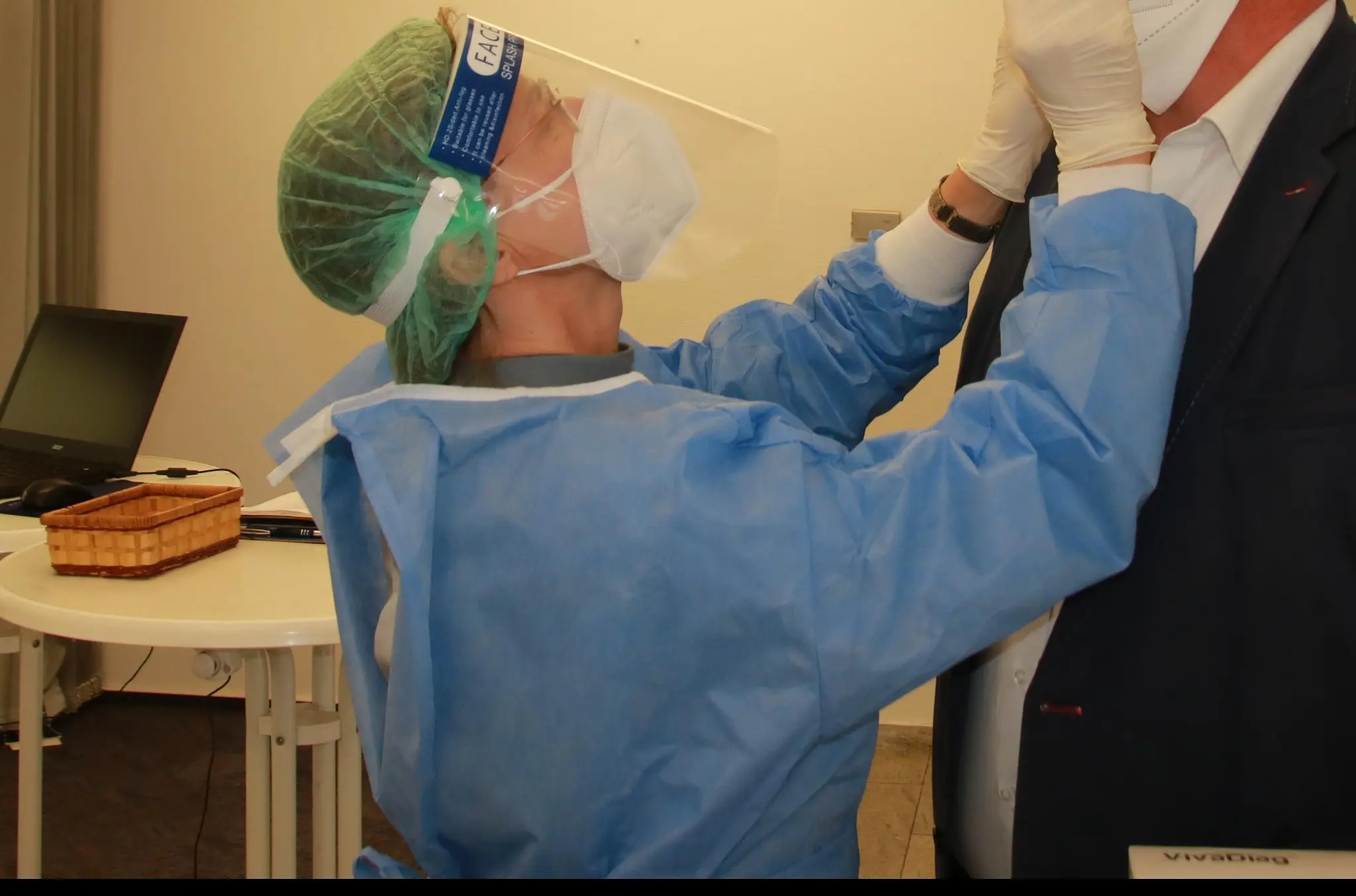 Der ausgebildete Physiotherapeut Patrick Pensel, der im Auftrag seines Vaters das Impfzentrum leitet, beschreibt, was passiert, wenn ein Schnelltest positiv ausfallen sollte: „PCR-Tests können wir umgehend veranlassen. Wenn jemand positiv getestet wird, dauert es zwischen 24 und 48 Stunden, bis das Laborergebnis vorliegt.“