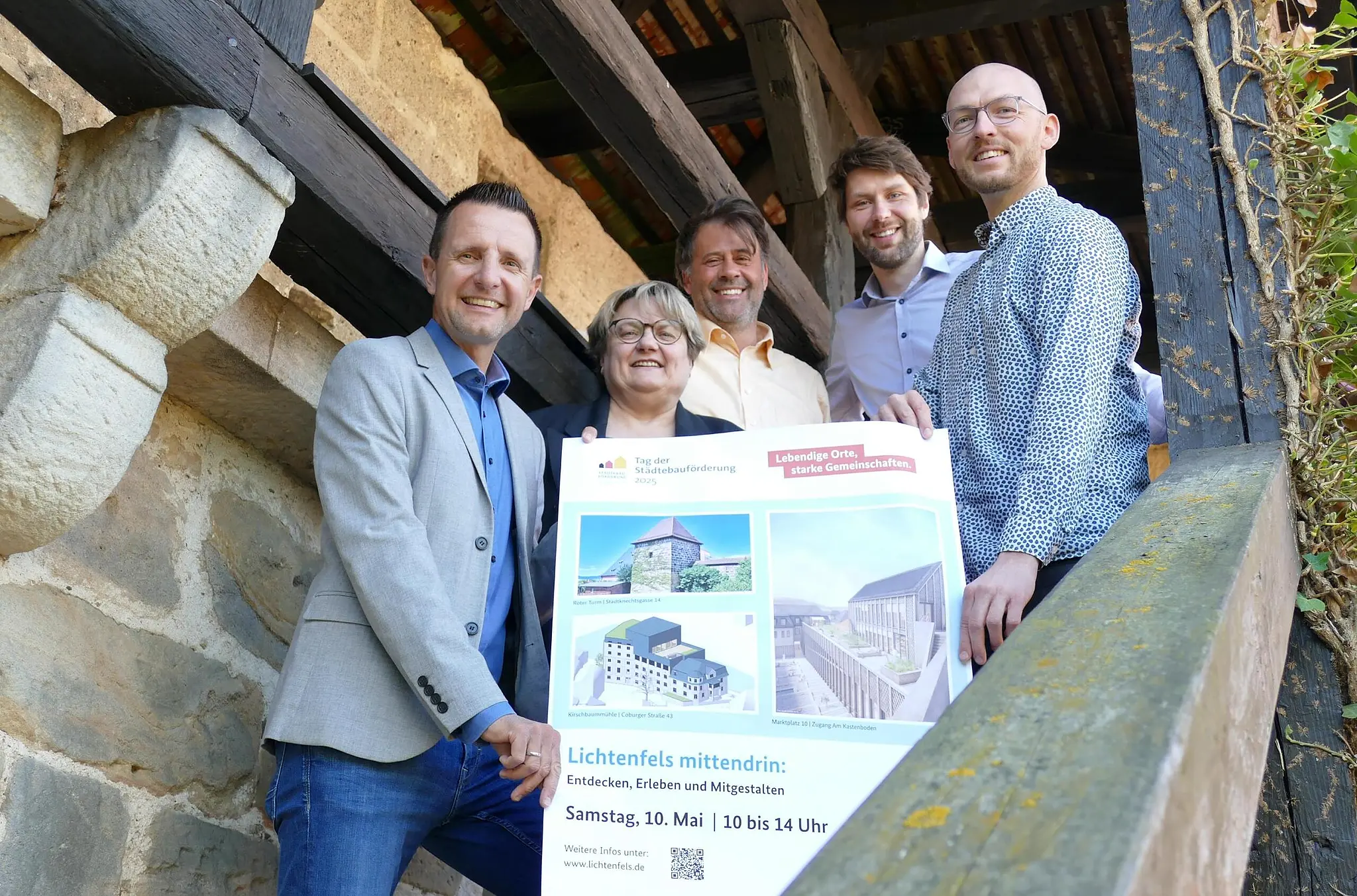 Grossereignis Städtebauförderung: Ein Tag voller Erlebnisse Bürgermeister Andreas Hügerich, Christine Wittenbauer (Leiterin der Stadtbücherei), Stadtbaumeister Gerhard Pülz, Steffen Hofmann (Leiter des Amtes für Wirtschaft, Tourismus & Kultur) und Johannes Zeck, Geschäftsleiter des FADZ Zweckverbandes, freuen sich am Treppenaufgang zum Roten Turm über viele Besucher und ein spannendes Programm. // Stadt Lichtenfels, Sebastian Müller von Redaktion TEILEN  09.05.2025 Lichtenfels – Die Stadt bereitet sich auf den Tag der Städtebauförderung mit einem abwechslungsreichen Programm vor. Tradition trifft Zukunft. Artikel anhören Sie können uns nicht hören? Diese Funktion können Sie exklusiv mit PLUS nutzen. Erhalten Sie uneingeschränkten Zugriff auf alle Audioinhalte, Artikel und vieles mehr. Vorlesefunktion freischalten Bereits -Zugriff? Jetzt Anmelden Unter dem Motto „Lebendige Orte, starke Gemeinschaften“ findet am 10. Mai der bundesweite Tag der Städtebauförderung statt. Diese Veranstaltung bietet eine Gelegenheit für Städte und Gemeinden, um über ihre Projekte, Planungen und Erfolge zu informieren und die Bürger zur Mitgestaltung des eigenen Lebensumfeldes einzuladen. Lichtenfels beteiligt sich an diesem Aktionstag und hat ein abwechslungsreiches Programm unter dem Titel „Lichtenfels mittendrin: Entdecken, Erleben und Mitgestalten“ vorbereitet, wie aus einer Pressemitteilung hervorgeht. Die Stadt bietet ab 10 Uhr drei Programmpunkte in der Innenstadt an. Roter Turm instand gesetzt Ein Höhepunkt ist die Eröffnung des Roten Turms. Die Stadt Lichtenfels hat im Rahmen des Bayerischen Städtebauförderungsprogramms „Innenstädte beleben“ Maßnahmen zur Belebung ihrer Innenstadt umgesetzt. Ein Fokus lag hierbei auf der Instandsetzung des Roten Turms, des einzigen erhaltenen Wehrturms der ehemaligen Stadtbefestigung. Die Eröffnung führt Bürgermeister Andreas Hügerich durch. Nach einem Kurzvortrag von Dr. Marcus Beck und Bernhard Christoph im Stadtschlossgarten wird die Sammlung von Steinzeit- und archäologischen Funden bis 14 Uhr der Öffentlichkeit zugänglich gemacht. Marktplatz und Zukunft Ein weiterer Programmpunkt betrifft die Baustelle am Marktplatz 10, wo die Stadtbücherei mit Tourist-Information entsteht. Der Holzbau des Medienhauses ist bereits fertiggestellt, und Bürgerinnen und Bürger können von 11 bis 13 Uhr einen Einblick in die zukünftige Kreativwerkstatt erhalten. Dabei wird das Büchereiteam das Konzept vorstellen und zur Mitgestaltung auffordern. Ein weiteres Projekt ist das Forschungs- und Anwendungszentrum für Digitale Zukunftstechnologien (FADZ) in der Coburger Straße. Dort soll die Kirschbaummühle in ein Forschungszentrum umgewandelt werden. Besucher können von 11 bis 14 Uhr die Villa des ehemaligen Mühlengebäudes besichtigen und sich über die Planungen und bisherigen Entwicklungen informieren. Führungen im Mühlen- und Silogebäude werden ebenfalls angeboten, für die vor Ort Anmeldungen möglich sind. Städtebauliche Projekte Bürgermeister Andreas Hügerich freut sich auf die Veranstaltung und betont die Bedeutung der Bürgerbeteiligung bei städtebaulichen Projekten. Auch das Stadtschloss ist von 10 bis 14 Uhr geöffnet und zeigt neben städtischen Sammlungen eine Sonderausstellung mit Playmobil-Spielfiguren. Am Marktplatz präsentieren regionale Flechthandwerker ihre Werke, während sich die Stadtbücherei am Gratis Comic Tag beteiligt und kostenlose Comics ausgibt. Der bundesweite Aktionstag, der vom Bundesministerium für Wohnen, Stadtentwicklung und Bauwesen sowie mehreren kommunalen Organisationen getragen wird, soll die Bürgerbeteiligung bei Städtebauprojekten stärken. Weitere Details sind auf der Webseite der Stadt Lichtenfels zu finden. Das Programm Eröffnung des Roten Turms 10 Uhr, Stadtknechtsgasse 5 Kurzvortrag von Archäologe und Prähistoriker Marcus Beck und Bernhard Christoph Kurzvorstellung der Sammlung „Archäologische Ausgrabungen Marktplatz 10“ durch den Archäologen Michael Jandejsek Marktplatz 10 11 bis 13 Uhr Baustelleneinblick mit Projektvorstellung und Bürgerbeteiligung Kirschbaummühle 11 bis 14 Uhr, Coburger Straße 43 Besichtigung der Villa und Projektvorstellung FADZ (Forschungs- und Anwendungszentrum für Digitale Zukunftstechnologien) Zwei Führungen in Silo und Mühle von 11.30 bis 12 Uhr und 13 bis 13.30 Uhr (Anmeldung vorab in der Villa) Weitere Veranstaltungen 10 bis 14 Uhr: Städtische Sammlungen im Stadtschloss 10 bis 15 Uhr: Fünf Flechthandwerkerinnen und Flechthandwerker präsentieren am Marktplatz Körbe und dekorative Flechtwerke 11 bis 13 Uhr: Gratis Comic Tag in der Stadtbücherei Lichtenfels