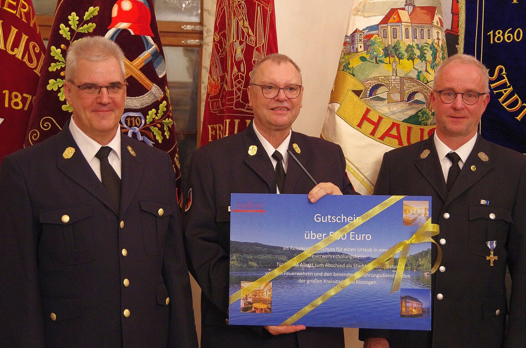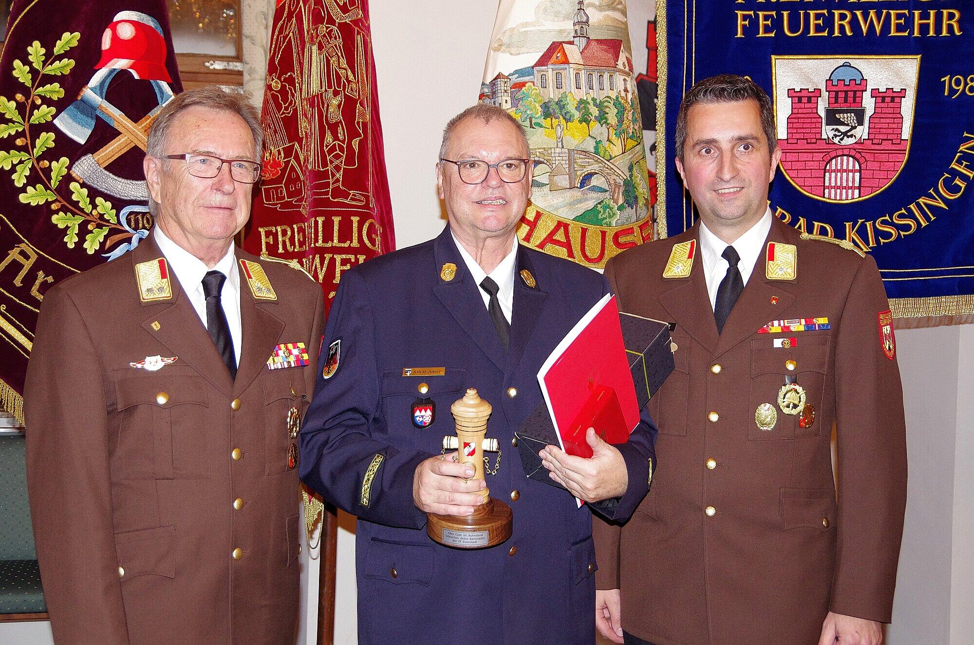 Feuerwehrempfang der Stadt Feuerwehr Bad Kissingen ehrt langjährige Helden Harald Albert wurde nicht nur für 50 Jahre aktiven Dienst mit dem großen Ehrenzeichen gewürdigt, sondern auch als Wegbereiter für Freundschaften über Grenzen hinweg und als Garant für die stete Weiterentwicklung des kommunalen Feuerwehrwesens geehrt. // Klaus Werner Harald Albert (Mitte) mit Ehrenkommandant Kurt Feichtinger (links) und Ing. Rainer Schwarz (rechts) von der FW Eisenstadt. // Klaus Werner von Klaus Werner TEILEN  vor 12 Stunden Bad Kissingen – Große Anerkennung: Die Feuerwehr Bad Kissingen ehrt zum Feuerwehrempfang tapfere Einsatzkräfte für ihren langjährigen und mutigen Dienst. Ein Mann wurde besonders gewürdigt. Artikel anhören Sie können uns nicht hören? Diese Funktion können Sie exklusiv mit PLUS nutzen. Erhalten Sie uneingeschränkten Zugriff auf alle Audioinhalte, Artikel und vieles mehr. Vorlesefunktion freischalten Bereits -Zugriff? Jetzt Anmelden „Wir haben einen Schatz an Ehrenamtlichen, die bei Notfällen, Unfällen oder Katastrophen parat stehen“, so Innenstaatssekretär Sandro Kirchner (CSU) beim Feuerwehrempfang der Stadt Bad Kissingen. Dies seien in Bayern rund 430.000 Freiwillige in der sogenannten „Blaulicht-Familie“, davon rund 320.000 Aktive in den 7000 Feuerwehren. Stellvertretend für alle dankte er neun Feuerwehrleuten aus der großen Kreisstadt, die beim Rathaus-Empfang für ihr jahrzehntelanges Engagement mit dem bayrischen Feuerwehr-Ehrenzeichen gewürdigt wurden. Die Fahnen der freiwilligen Feuerwehren aus der Stadt und den Stadtteilen schmückten den Sitzungssaal ebenso wie die zahlreichen Vertreter der Wehren in ihren Uniformen, die die obere Etage des Kissinger Rathauses in Beschlag genommen hatten. Ehrungen: (von links) Sandro Kirchner, Brigitte Meyerdierks, Bernd Ott, Jürgen Rollmann, Reinhold Götz, Melanie Wehner, Stefan Dacho, Günter Götz, KBI Steffen Kiesel, Walter Schmitt, KBM Markus Kolb, Christian Dösch, SBM Dominik Zehe, Harald Albert, SBI Michael Wolf, OB Dirk Vogel. // Klaus Werner Würdigung einer Galionsfigur: Harald Albert Vertreten waren auch Delegationen der Feuerwehren aus Eisenstadt und Schorndorf. Für die gab es einen besonderen Anlass, die weite Reise nach Bad Kissingen anzutreten. Harald Albert war über Jahrzehnte die Galionsfigur im städtischen Feuerwehrwesen. Er wurde nicht nur für 50 Jahre aktiven Dienst mit dem großen Ehrenzeichen gewürdigt, sondern auch als Wegbereiter für Freundschaften über Grenzen hinweg und als Garant für die stete Weiterentwicklung des kommunalen Feuerwehrwesens geehrt. So war es auch Stadtbrandinspektor Michael Wolf als sein Nachfolger an der Spitze der Kissinger Wehr, der die illustren Gäste aus der Kommunalpolitik und der Stadtverwaltung sowie allen Ebenen der Feuerwehrkommandantur begrüßte. Blick auf die Präsente. // Klaus Werner 418 Feuerwehrdienstleistende Oberbürgermeister Dirk Vogel betonte die Wertschätzung für die Wehren und bezifferte den Bestand auf 418 Feuerwehrdienstleistende, einem Plus von neun Prozent im Jahresvergleich. Stolz sei er darauf, dass es in der großen Kreisstadt mehr Frauen in den Wehren gibt als im Landesdurchschnitt, und dass mit neun Jugend-Feuerwehren sowie drei Kinder-Feuerwehren die Zukunft der Wehren gesichert sei. Das Ehrenamt sei die Grundlage hierfür, so Vogel, der als Merkmal der Wehren das „Engagement auf Dauer“ nannte und dies gebe Stabilität und Sicherheit. Fahnenschmuck beim Feuerwehrempfang 2025 der Stadt Bad Kissingen. // Klaus Werner Neue Herausforderungen stehen im Raum Staatssekretär Sandro Kirchner sprach von besonderen Zeiten mit neuen Herausforderungen, zum Beispiel beim Katastrophenschutz und beim Bevölkerungsschutz, auf die man mit dem Aufbau einer neuen Behörde reagieren werde. Mit dem Zusammenwirken von staatlichen Behörden und ehrenamtlichem Engagement gebe man den Bürgern die Sicherheit, „dass man Hilfe bekommt, wenn es notwendig ist“. Die Anforderungen für die Feuerwehren hätten sich gewandelt. Neben Einsätzen sei auch die Prävention eine wichtige Aufgabe und zusammen mit den erforderlichen Übungen und Fortbildungen werden zahllose ehrenamtliche Stunden absolviert, die man nicht mit der Familie, mit Freunden oder einem Hobby verbringen könne. Deshalb sei der Feuerwehrempfang der Stadt der passende Rahmen, „um das ehrenamtliche Engagement mit seiner Vorbildfunktion für das Gemeinwohl ins richtige Licht zu setzen“. Harald Albert (Mitte) Stadtbrandinspektor Michael Wolf (links) und Bernd Czelustek (rechts) // Klaus Werner Ganz besondere Ehrungen Im Rahmen der Würdigungen für 25-, 40- und 50-jährige aktive Dienstzeit lag die Übergabe von Urkunde und Ehrennadel in den Händen von Sandro Kirchner. Glückwünsche und Präsente kamen von stellvertretender Landrätin Brigitte Meyerdierks und Oberbürgermeister Dirk Vogel. Die Laudatio für die neun ausgezeichneten Personen erfolgte durch Vertreter der jeweiligen Feuerwehren. Beim Empfang wurden Michael Hocke (FF Albertshausen) und Wilfried Götz (FF Kleinbrach) von Vogel aus dem aktiven Dienst verabschiedet, da sie die gesetzliche Altersgrenze erreicht haben. Beiden wurde nicht nur jahrzehntelanges Engagement im aktiven Dienst bestätigt, sondern auch überdurchschnittliche Bereitschaft, bei allen Vereinsaktivitäten mitzuwirken. Eine lange Reihe an Laudatoren Es gibt Ehrungen, besondere Ehrungen und ganz besondere Ehrungen – so war es diesmal beim Feuerwehrempfang der Stadt Bad Kissingen. Einen normalen Verlauf der Würdigungen gab es, bis Harald Albert an der Reihe war. Da wurden nicht nur die besonders dicht beschriebenen DIN-A4-Blätter ausgepackt, sondern die Reihe der Laudatoren wurde immer länger. Den Anfang machten SBI Wolf und Bernd Czelustek als dienstältester Kommandant. Sie versuchten nicht, die 22 Jahre in eine chronologische Abfolge zu bringen, die Harald Albert als Kommandant und Vorstand an der Spitze der Kissinger Wehr war, als