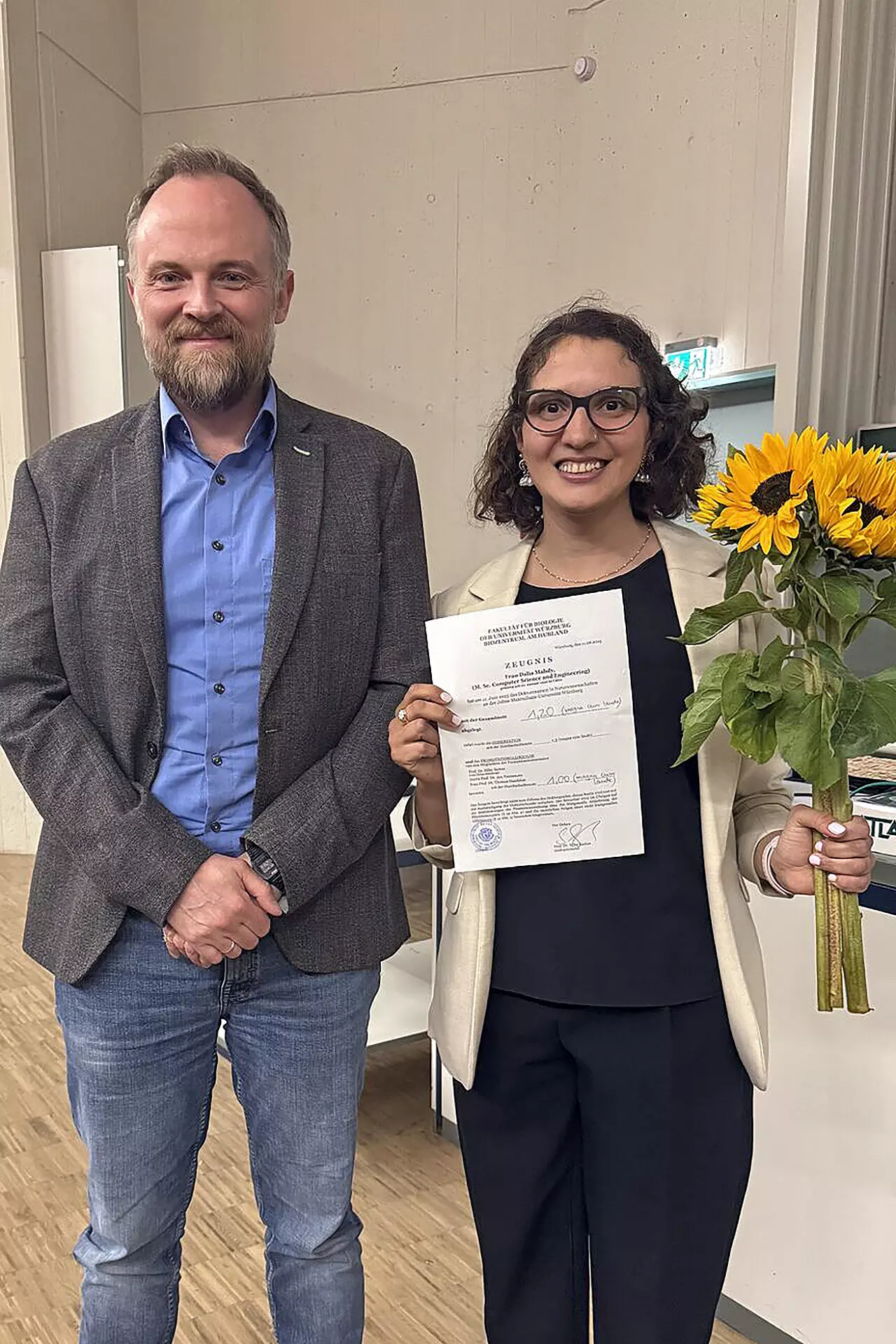 Doktortitel erhalten Forscherin verändert Kissingens Technologielandschaft Nach der erfolgreichen Verteidigung: Promotionsstipendiatin Dalia Mahdy präsentiert gemeinsam mit ihrem Betreuer Prof. Dr. Jan Hansmann ihre Promotionsurkunde // THWS von Redaktion TEILEN  07.08.2025 Bad Kissingen – Von der Promotion zur Innovation: Eine Wissenschaftlerin kombiniert KI und Labordiagnostik zu neuen Lösungen. Sie wird ihr Wissen nun in Bad Kissingen anwenden. Artikel anhören Sie können uns nicht hören? Diese Funktion können Sie exklusiv mit PLUS nutzen. Erhalten Sie uneingeschränkten Zugriff auf alle Audioinhalte, Artikel und vieles mehr. Vorlesefunktion freischalten Bereits -Zugriff? Jetzt Anmelden Dalia Mahdy, Promotionsstipendiatin an der Technischen Hochschule Würzburg-Schweinfurt (THWS) hat ihren Doktortitel erhalten und wird ihr Wissen nun am Technologietransferzentrum Bad Kissingen (TTZ-KG) einbringen. Krebsforschung mit KI Während ihrer Promotionszeit arbeitete sie an personalisierten Ansätzen in der Krebsbehandlung. Dabei entwickelte sie ein System zur automatisierten Erzeugung von 3D-Gewebemodellen, insbesondere für Bauchspeicheldrüsenkrebs. Damit soll schneller überprüft werden können, welche Arzneimittel wirken könnten. Mit ihrem Wechsel nach Bad Kissingen wird Dalia Mahdy ihre Forschung weiterführen. Ihre Arbeit wird sich auf die Integration von künstlicher Intelligenz (KI) in Labordiagnostik und Automatisierung konzentrieren. Lisa Kiesewetter, Leiterin des TTZ-KG, äußerte sich erfreut über den Neuzugang: „Wir sind begeistert, Dalia Mahdy gewonnen zu haben. Ihre Expertise und ihr Engagement werden einen wertvollen Beitrag zu unseren Projekten und Zielen leisten.“ Jan Schmitt, Vizepräsident Forschung und Gründung der Hochschule, verdeutlicht: „Mit ihrem erfolgreichen Abschluss und Wechsel an das TTZ-KG ist Dalia Mahdy ein schönes Beispiel für den Erfolg des Engagements unserer Hochschule in der Nachwuchsförderung und zeigt, wie wichtig die Netzwerkbildung auch für Forschende in frühen Karrierephasen ist.“ Konzentration auf das Wesentliche Dalia Mahdy wurde als eine der ersten Nachwuchswissenschaftlerinnen mit einem Promotionsstipendium der Hochschule gefördert. Es soll Promovierende vor allem in Phasen mit Finanzierungslücken unterstützen. „Das Stipendium hat mir die notwendige finanzielle Unterstützung geboten, um mich in der Endphase meiner Promotion auf das Wesentliche zu konzentrieren – das letzte Paper einzureichen sowie die Dissertation zu schreiben“, erklärt Dalia Mahdy. Das im Rahmen des Bund-Länder-Programms „FH-Personal“ geförderte Projekt zielt darauf ab, langfristige Maßnahmen zur Gewinnung und Entwicklung von professoralem Personal zu schaffen. Boxen als Therapie Schlag um Schlag gegen psychische Erkrankungen Boxen gegen die inneren Kämpfe: In der Hemeraklinik Bad Kissingen wird aus Kampfsport Therapie. Wie der Sport helfen kann. Kommunale Wärmeplanung Bad Kissingen setzt auf erneuerbare Energie und Bürgerdialog Große Resonanz bei der Infoveranstaltung der Stadt: Bad Kissingen stellte einen Zwischenbericht zur Wärmeplanung vor. Für Hausbesitzer gab es konkrete Tipps. In Bad Kissingen Kieferchirurg Armin Wiesner plant Versorgungszentrum Weil er aus seiner Praxis an der alten Post in Bad Kissingen heraus muss, investiert Wiesner 4,5 Millionen Euro, baut bis Ende 2026 ein neues Zentrum und sichert so die Versorgung im Landkreis.