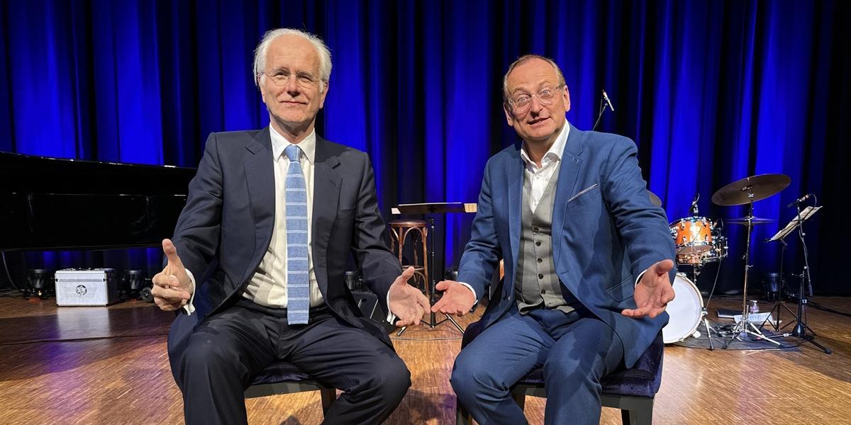 Harald Schmidt und Volker Heißmann sorgen, begleitet vom Thilo Wolf Jazz Quartett, für ein Feuerwerk der Pointen. Die beiden Künstler vereinen tiefsinnige Gedanken mit gnadenlos komischen Geschichten und garantieren einen unvergesslichen Abend am Samstag, 15. November, um 19.30 Uhr im Max-Littmann-Saal.