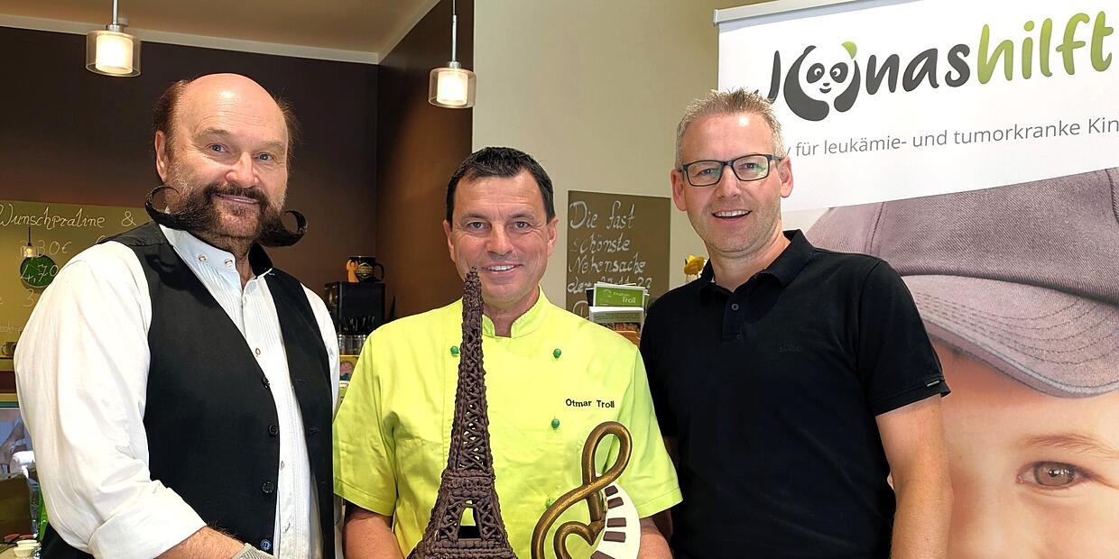 Eiffelturm aus Schokolade Eine süße Herzensangelegenheit Sigismund von Dobschütz von Sigismund von Dobschütz TEILEN  16.08.2025 Bad Kissingen – Harald Breitenfeldt hat mit seinem Gebot in Höhe von 150 Euro einen Eiffelturm aus Schokolade ersteigert, den Chocolatier Otmar Troll zu Gunsten des Vereins „Jonas hilft“ hergestellt hat. Artikel anhören Sie können uns nicht hören? Diese Funktion können Sie exklusiv mit PLUS nutzen. Erhalten Sie uneingeschränkten Zugriff auf alle Audioinhalte, Artikel und vieles mehr. Vorlesefunktion freischalten Bereits -Zugriff? Jetzt Anmelden Na, erwischt! Du bist wohl ein bisschen zu neugierig, was?