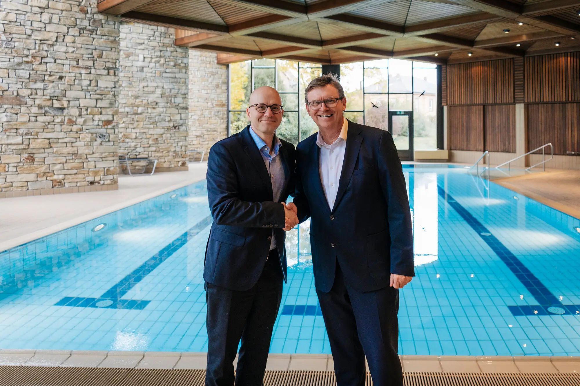 Angebot in Bad Kissingen Schwimmen in einem kleinen Hallenbad ist wieder möglich Oberbürgermeister Dr. Dirk Vogel und Stephan Greb, Vorstand der Unternehmensgruppe HESCURO, präsentierten die neuen Schwimmmöglichkeit für die Herbst- und Wintermonate in Bad Kissingen im Hallenbad der HESCURO KLINIK Bad Kissingen. // Ben Kiesel/Stadt Bad Kissingen Schwimmen in einem Hallenbad ist in Bad Kissingen wieder möglich. (Symbolbild) // Sina Schuldt/dpa/dpa-tmn von Redaktion / ksk TEILEN  vor 8 Stunden Bad Kissingen – Weil der Bau eines neuen Hallenbads kurzfristig nicht bezahlbar ist, hat die Stadt einer Lösung für Einzelschwimmer im Herbst und Winter gesucht. Hier kann wieder geschwommen werden. Artikel anhören Sie können uns nicht hören? Diese Funktion können Sie exklusiv mit PLUS nutzen. Erhalten Sie uneingeschränkten Zugriff auf alle Audioinhalte, Artikel und vieles mehr. Vorlesefunktion freischalten Bereits -Zugriff? Jetzt Anmelden Ab Freitag, 17. Oktober, kann das Hallenbad der Hescuro Klinik Bad Kissingen in der Schönbornstraße 19 immer freitags bis sonntags nach Voranmeldung von Bürgerinnen und Bürgern zum öffentlichen Schwimmen genutzt werden. Freitags ist das Bad von 17 bis 20 Uhr, samstags und sonntags von 13 bis 16 Uhr geöffnet. Das schreibt die Stadt Bad Kissingen in einer Pressemitteilung. Maximale Nutzerzahl ist beschränkt Das Hallenbad ist kein klassisches Spaß- oder Sportbad. Es eignet sich mit seinen 17 Metern Länge für Bewegungsschwimmen. Ideal für Eltern, um die bereits erworbenen Schwimmfähigkeiten ihrer Kinder zu festigen. Aufgrund der Größe des Beckens (16,7 Meter mal 8 Meter) ist die maximale Nutzerzahl zunächst auf zeitgleich acht Personen begrenzt. Damit dennoch möglichst viele Gäste zum Zug kommen, wird die Nutzungszeit auf 1,5 Stunden begrenzt, sodass pro Tag zwei Nutzzeitfenster entstehen. Ein Buchungsprogramm stellt sicher, dass am Ende niemand vor einem überfüllten Schwimmbad steht. Initiative der Stadt: „Bad Kissingen schwimmt“ Öffentliches Schwimmen im Hescuro Hallenbad ist ein weiterer Baustein im Rahmen der Initiative der Stadt „Bad Kissingen schwimmt“. Neben der Schaffung dieses Angebots wurden in den vergangenen Jahren bereits die Schwimmkurse für kleine und größere Schwimmanfänger ausgeweitet. Seit Oktober 2021 hat allein die VHS – daneben bieten Vereine und private Anbieter Schwimmkurse an – 24 Schwimmkurse mit 214 Kindern durchgeführt. Im September hat der letzte begonnen. Der nächste Kurs startet am 12. November. Trotz der Sanierungsarbeiten im Terrassenschwimmbad konnten Kinder und Jugendliche den Sommer über im Familienbad schwimmen. Ab nächstem Sommer steht das für 7,9 Millionen Euro frisch sanierte Freibad wieder vollumfänglich zur Verfügung. Schulkinder schwimmen mit den Schulen zum Beispiel im Hotel Sonnenhügel. Die Vereine sind mit Unterstützung der Stadt in Reha-Kliniken und umliegenden Bädern untergekommen. Praktische Informationen zum Angebot und Kosten Unter www.badkissingen.de/buchen können interessierte Schwimmerinnen und Schwimmer ihre Nutzzeiten online reservieren. Alternativ kann aber auch telefonisch im Rathaus Bad Kissingen (0971/807-1302) eine Buchung veranlasst werden. Jugendliche ab 14 Jahren und Erwachsene zahlen für 1,5 Stunden 2,50 Euro Eintritt, Kinder in Begleitung eines Erwachsenen sind frei. Der Eintritt ist vor Ort bei der Schwimmaufsicht passend und in bar in eine Kasse zu entrichten. Die Schwimmaufsicht übernehmen die Rettungsschwimmerinnen und -schwimmer der DLRG und Wasserwacht. Diese prüfen auch vor Ort per App, ob die Gäste tatsächlich eingebucht sind. Umkleiden und Duschen sind vorhanden. In Aufbewahrungskörben können die persönlichen Sachen abgelegt werden. Diese müssen dann mit ins Bad genommen werden. Parken ist auf dem Gelände der Klinik nicht möglich. Stattdessen können die Parkmöglichkeiten in der Schönbornstraße oder der Parkplatz am Eissee genutzt werden. OB Dirk Vogel: Lückenschluss ist gelungen „Indem wir unser Schwimmbad in freien Zeiten den Bürgerinnen und Bürgern zur Verfügung stellen, möchten wir Bewegung, Begegnung und Gemeinschaft fördern. Ganz nach unserem Motto ‚Gemeinsam für Ihre Gesundheit‘“, wird Stephan Greb, Vorstand der Unternehmensgruppe Hescuro, in der Mitteilung zitiert. Für Oberbürgermeister Dr. Dirk Vogel ist nun der Lückenschluss geglückt: „Vereine und Grundschulen haben wir seit Jahren in Hotels- und Rehaeinrichtungen untergebracht. Nun können wir dank Herrn Greb, dem Hescuro-Team und unseren Rettungsorganisationen auch für einzelne Schwimmer ein Angebot unterbreiten. Damit haben wir für die nächsten Jahre den Lückenschluss für Schwimmer in den Herbst- und Wintermonaten organisiert. Ab nächstes Jahr steht dann wieder unser frisch saniertes Freibad zur Verfügung.“ Weitere Informationen gibt es unter www.badkissingen.de Bilanz des Kissbeach Stadtstrand in Bad Kissingen: Ein verregnetes Comeback Der Betreiber des Bad Kissinger Stadtstrands zieht nach der zweiten Saison am Kissbeach eine durchwachsene Bilanz. Trotzdem läuft die Planung für 2026. Am Palais Erthal läuft es für ihn besser. Terrassenbad Bad Kissingen So sieht es auf der Schwimmbad-Baustelle aus Badefans können aufatmen: Die Sanierung des Terrassenschwimmbads in Bad Kissingen wird zur nächsten Freibadsaison abgeschlossen sein. So ist der aktuelle Stand und das erwartet Schwimmfans. Interview mit Hansi Hinterseer „Es ist das Beste, wenn die Fans eine Gaudi haben“ Der Volksmusikstar und ehemalige Skirennfahrer Hansi Hinterseer (71) kommt am 7. November nach Bad Kissingen. Im Interview verrät er, wo er Kraft tankt und was er von Techno hält. Italiens Siegerin in Kissingen 3 Tipps für die perfekte selbstgemachte Pasta Italiens Pasta-Champion Ylenia Parente zu Gast in Bad Kissingen: Ihre Pasta wurde 2024 als beste handgemachte in ganz Italien ausgezeichnet.