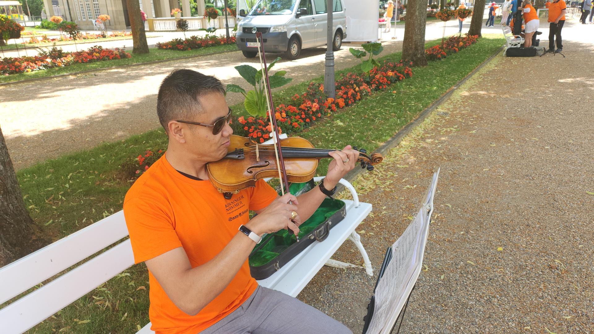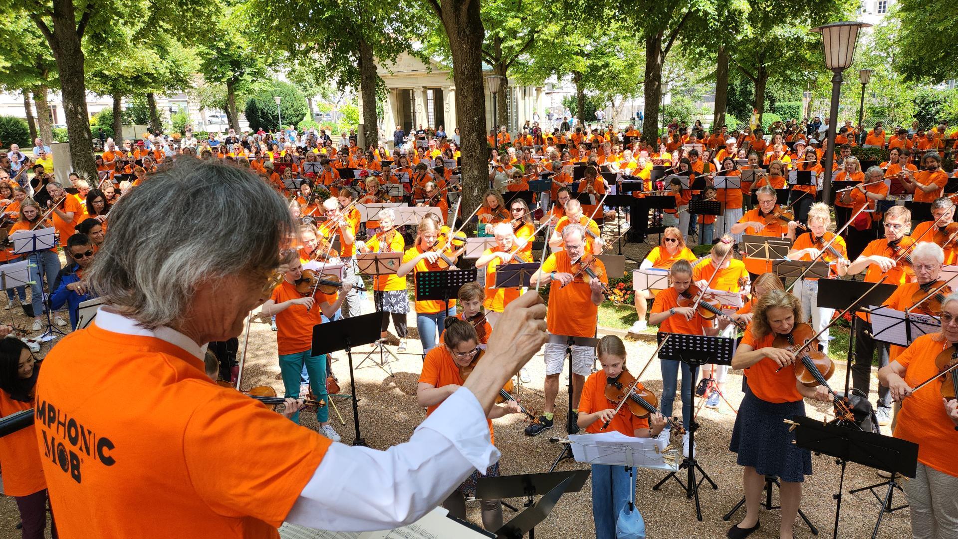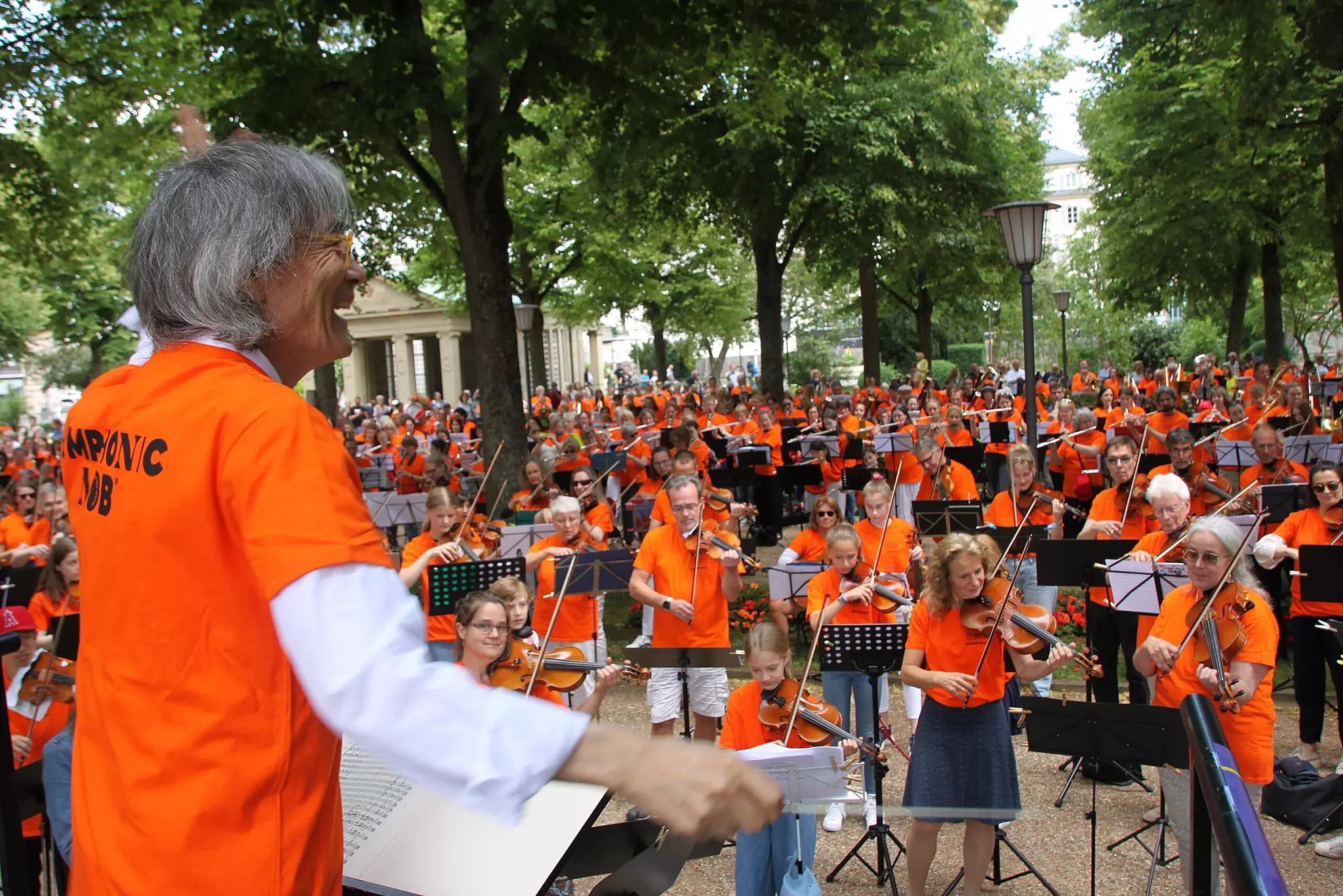 Kissinger Sommer Symphonic Mob: Kent Nagano erobert alle Herzen Kent Nagano, der Weltklasse-Dirigent, beim Symphonic Mob: sein Gesicht war ein einziges Strahlen. // Milena Meder Indendant Alexander Steinbeis, Redaktionsleiterin Susanne Will und Dirigent Kent Nagano beim Symphonic Mob im Bad Kissinger Kurgarten // Benedikt Borst von Milena Meder TEILEN  30.06.2023 Bad Kissingen – Der Symphonic Mob 2023, Bayerns größtes Spontan-Orchester, ist vorbei. Zuschauer und Teilnehmer sind begeistert. Update, 4. Juli, 14.30 Uhr: Zwei Tage ist der Symphonic Mob 2023 nun her, noch immer bereitet der Gedanke den Musikerinnen und Musikern Gänsehaut. Auch die Veranstalter, der Dirigent und die unzähligen Zuschauer waren begeistert. Hier ein kurzer Zusammenschnitt des Tages: Ein Zusammenschnitt des Symphonic Mobs 2023 Das war der Symphonic Mob 2023 in Bad Kissingen. Eindrücke vom großen Klassik-Open-Air mit Dirigent Kent Nagano. Update, 2. Juli, 18.45 Uhr: Was der jüngste Teilnehmer von der Veranstaltung hält Wie war der Symphonic Mob 2023? Der jüngste Musiker erzählt, wieso er teilnimmt und weitere Stimmen von Musikern und Zuschauern. Wir sagen: Danke! Kissinger Symphonic Mob 2023: Ein absolutes Erlebnis 600 Musiker, Laien und Profis, 1400 Zuschauer und ein entspannter Weltstar: Der zweite Symphonic Mob, dirigiert von Kent Nagano, war ein irres Erlebnis. Update, 2. Juli, 18 Uhr: Eindrücke von der Veranstaltung Mehr Eindrücke von der Veranstaltung finden Sie in unserer Bildergalerie. Bildergalerie Das war der Symphonic Mob 2023 Lange fieberten die 600 Musiker auf das Konzert mit Dirigent Kent Nagano hin. Am Sonntag, 2. Juli, war es endlich so weit. Hier sind die schönsten Fotos. Und: Generalprobe und Konzert gibt es zum Nachhören auf unserer Facebook-Seite. Der Link:https://www.facebook.com/SaaleZeitung/ Update, 2. Juli, 17.45 Uhr: Kent Nagano ist Superstar der Herzen Der 71-Jährige zog Musiker und Zuschauer in seinen Bann. Mit drei großartigen Eigenschaften: Herzenswärme, Augenhöhe und Humor. Mehr zu Kent Nagano lesen Sie hier: Symphonic Mob Der Star, der Bad Kissingen mit Lächeln dirigiert Der 71-jährige Kent Nagano erobert im Bad Kissinger Kurpark direkt die Herzen der Musiker und der Zuschauer. Er hatte Augenhöhe, Witz und Einfühlungsvermögen. Update, 2. Juli, 15.15 Uhr: Das Konzert läuft Unzählige Menschen kamen in den Kissinger Kurpark, um beim Symphonic Mob 2023 zuzuhören. Zuschauer und Musiker sind begeistert. Unzählige Zuschauer kamen in den Kurpark, um beim Symphonic Mob 2023 zuzuhören. // Ralf Ruppert Symphonic Mob 2023: Das Konzert von oben Symphonic Mob 2023: Das Konzert von oben Update, 2. Juli, 14.30 Uhr: Auch Politikerin Dorothee Bär ist mit dabei Vor 10 Minuten mischte sich auch ein aus der Politik bekanntes Gesicht unter die Menge. Stellvertretende Fraktionsvorsitzende der CDU/CSU-Bundestagsfraktion für Familie und Kultur Dorothee Bär nimmt am Symphonic Mob 2023 teil. Auch Dorothee Bär lässt sich die Teilnahme am Symphonic Mob 2023 nicht nehmen. // Susanne Will Update, 2. Juli, 14.00 Uhr: Kent Nagano überzeugt die Menge Schon während der Generalprobe macht sich Star-Dirigent Kent Naganos Liebe zur Musik bemerkbar. Mit viel Witz und Humor übt er mit den Musikerinnen und Musikern für das Konzert um 15 Uhr. Selbst für persönliche Gespräche und Autogramme ist sich der Weltstar nicht zu schade. Und: Neben den 600 Teilnehmern sind auch unzählige Zuschauer erschienen - die Menge ist begeistert. Die ersten Bilder- und Videoeindrücke finden Sie hier: Kent Nagano hat die Menge innerhalb weniger Minuten von sich überzeugt. // Susanne Will Star zum Anfassen: Während der Pause nimmt sich Kent Nagano Zeit für die Musikerinnen und Musiker. // Susanne Will Nicht nur 600 Musiker, sondern auch unzählige Zuschauer sind zum Symphonic Mob 2023 erschienen. // Milena Meder Symphonic Mob 2023: Die ersten Eindrücke von der Generalprobe Symphonic Mob 2023: Die ersten Eindrücke von der Generalprobe Update, 2. Juli, 13.30 Uhr: Die Generalprobe startet Die Spannung steigt: Gleich kommt Kent Nagano. Mit dabei sind auch Elke und ihre Tochter Anna Luisa aus Brüssel. Über sie hatte die Saale-Zeitung am Samstag berichtet. Elke (rechts) und ihre Tochter Anna Luisa aus Brüssel bereiten sich im Kurpark auf ihren Einsatz vor. // Susanne Will Hier geht's zum Bericht: Symphonic Mob Mit der Querflöte von Brüssel nach Bad Kissingen Mutter-Tochter-Duo bereitet sich seit Wochen vor. Die Vorfreude auf Star-Dirigent Kent Nagano ist groß. Auch Kurzentschlossene können noch teilnehmen. Update, 2. Juli, 12.30 Uhr: Die ersten Musiker sind da Eine Stunde vor Beginn der Generalprobe füllt sich der Kurpark so langsam mit Musikern. Solito Sumulong aus Missouri (USA) ist aktuell mit seiner Familie auf Deutschlandreise. Heute haben sie extra einen Stopp in Bad Kissingen gemacht, um beim Symphonic Mob 2023 dabei zu sein. Das Event hat er im Netz entdeckt. In seiner Heimat spielt der Musiker in einem Orchester, seine eigene Geige hat er allerdings nicht dabei. Zum Glück konnte ihm Thomas Lutz vom Kissinger Sommer aushelfen. Solito Sumulong aus Missouri (USA) legt auf seiner Deutschlandreise extra einen Stopp beim Symphonic Mob ein. // Susanne Will Update, 2. Juli, 11.15 Uhr: Petrus meint es gut mit uns Anders als beim Symphonic Mob 2022, sind die Temperaturen in diesem Jahr nicht so hoch. Aber: Trotz Wind und Wolken lassen sich unsere Musikerinnen und Musiker nicht aufhalten. Das Spontan-Orchester findet wie angekündigt statt, draußen im Kurpark. Gestartet wird um 13.30 Uhr mit der Generalprobe, das Konzert beginnt um 15 Uhr. Checkliste für Teilnehmer: Notenständer ausgedruckte Noten Wäscheklammern zum Befestigen der Zettel Und ganz wichtig: Gute Laune und Spaß! 😉 Update, 29.06, 10.30 Uhr: Live-Übertragung auf Facebook Sie wollen beim Symphonic Mob 2023 zuschauen, können aber am Sonntag nicht nach Bad Kissingen fahren? Kein Problem, wir übertragen die gesamte Veranstaltung 