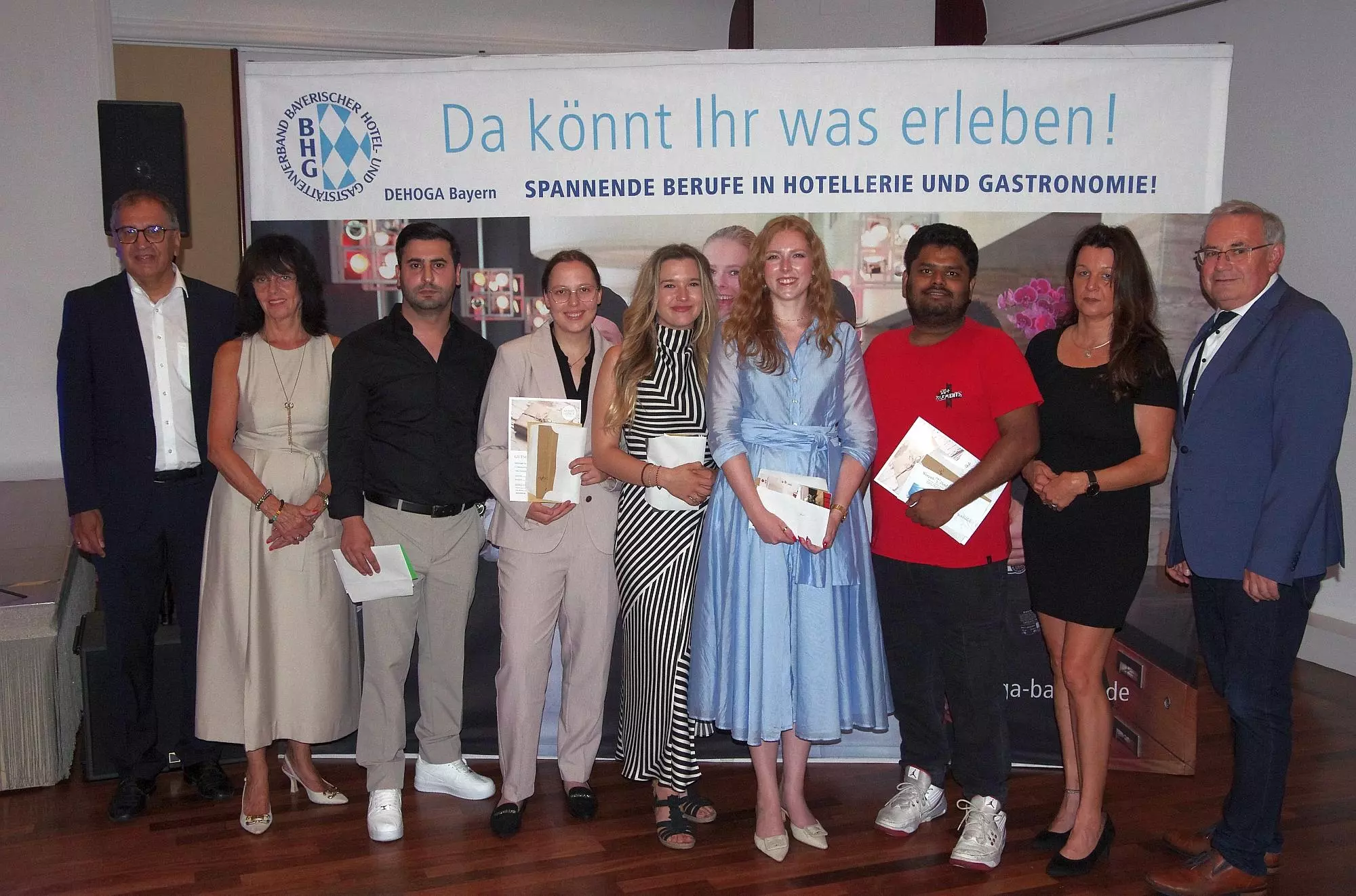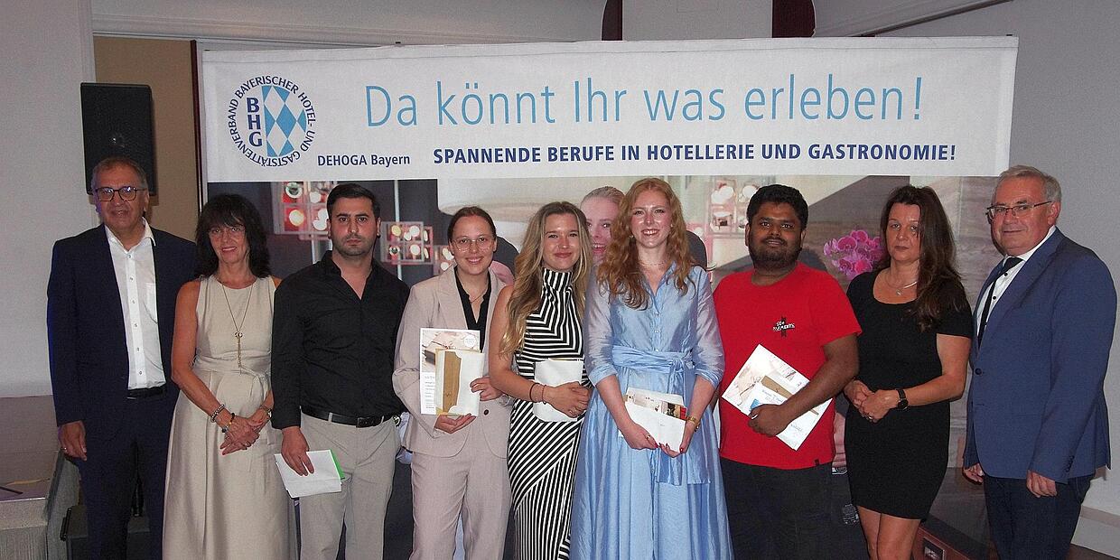 Freisprechungsfeier Gute Berufschancen in der Gastronomie Unser Bild zeigt (von links) Stefan Göbel (IHK), Claudia Amberger-Berkmann (Dehoga-Bezirk), Elvin Taghiyev, Celine Schimmel, Jannina Maier, Joanna Neisen, Naimul Bhuiyan, Sandra Kaiser (Dehoga-Kreis) und Bezirkstagspräsident Stefan Funk. // Klaus Werner von Klaus Werner TEILEN  30.07.2025 Bad Kissingen – Rund 200 Auszubildende aus der Region Mainfranken haben im Hotel Frankenland ihre Urkunden zur bestandenen Prüfung erhalten. Die Vielfalt der gastronomischen Ausbildung spiegelte sich in der Freisprechungsfeier für rund 200 Auszubildende wider, die für die Region Mainfranken zentral in Bad Kissingen stattfand, vom Bayerischen Hotel- und Gaststättenverband (Dehoga) organisiert und in Verbindung mit der IHK Würzburg-Schweinfurt veranstaltet wurde. In den Grußworten ging es nicht nur um die Vielfalt gastgewerblicher Berufe, sondern auch um die persönlichen Chancen, die sich aus einer Berufsausbildung ergeben: „Bleiben Sie in Bewegung – Finden Sie ihren Weg“, sagte Stefan Göbel von der IHK Mainfranken.Freisprechung – ein überlieferter, aber kein überholter Begriff, denn mit diesem formellen Akt endet eine zweijährige oder dreijährige Ausbildung und eröffnet den jungen Menschen neue Chancen und Perspektiven, was sich in der Floskel „Frei von den Verpflichtungen der Lehre“ widerspiegelt. Und Sandra Kaiser als Dehoga-Kreisvorsitzende gratulierte zum erfolgreichen Abschluss „im schönsten Beruf der Welt, in dem sie gelernt haben, Menschen glücklich zu machen“. Im großen Saal des Hotels Frankenland konnte sie nicht nur die Absolventinnen und Absolventen begrüßen, sondern auch Vertreter der Ausbildungsbetriebe, Verwandte der Prüflinge und kommunal-politische Gäste. Vertreten waren auch die Berufsschulen der drei IHK-Prüfungsbereiche Würzburg, Kitzingen und Bad Kissingen. An die Prüflinge gerichtet, betonte Sandra Kaiser den Wert der gastronomischen Ausbildung, denn man habe nicht nur gelernt „drei Teller gleichzeitig zu tragen, sondern diese auch mit einem Lächeln zu servieren“. Gerade der Umgang mit dem Menschen – ob Gast oder Mitarbeiter – sei eine der wahren Herausforderungen, die man „als Teamplayer, als Problemlöser und als Seelentröster“ zu bewältigen habe. Zum erfolgreichen Abschluss waren neben Können und Wissen auch Leidenschaft und Durchhaltevermögen nötig, „ein Handwerkszeug, um die Zukunft des Gastgewerbes zu gestalten“. Für Dehoga-Bezirksvorsitzende Claudia Amberger-Berkmann ist die Gastronomie und Hotellerie eine der „spannendsten, vielseitigsten und menschlichsten Branchen“ und diese brauche Menschen „mit Leidenschaft, mit Haltung und mit Teamgeist“. In der gastronomischen Ausbildung habe man nicht nur gelernt, mit heißen Pfannen, vollen Tabletts und fordernden Gästen umzugehen, sondern vielmehr sei man zum „Gastgeber mit Herz und Verstand“ geworden. Als Verband setzte man sich für eine zukunftsfähige Gastronomie ein, die die Wertschätzung erhalte, die sie verdiene, so Claudia Amberger-Berkmann. Mit Blick auf den vollen Saal betonte sie: „Sie sind die nächste Generation von Fachkräften, die unsere Branche gestalten wird. Sie sind nicht nur die Zukunft der Gastronomie – sie sind heute schon ein unverzichtbarer Teil davon.“ Ihr Dank galt den Ausbildungsbetrieben, den Berufsschulen, den Prüferinnen und Prüfern sowie den Familien, „denn ohne ihre Begleitung, ohne ihre Geduld wäre dieser Tag nicht möglich“. Den Absolventinnen und Absolventen wünschte sie: „Gehen Sie Ihren Weg weiter – mit Neugier, mit Tatkraft und mit der Freude, Menschen zu begeistern.“ Auch Bezirkstagspräsident Stefan Funk gehörte zu den Gratulanten und betonte die Bedeutung der Gastronomie und Hotellerie für den fränkischen Tourismus, denn „wir wollen nicht nur wandern, sondern auch einkehren“, und lobte den kulturellen Wert der Gasthäuser als gesellige Treffpunkte. Die Zukunft der Gastronomie liege auch darin, dass man etwas anders mache als bisher und „auf dieses andere freuen wir uns“. Für Stefan Göbel, IHK-Bereichsleiter für die Berufsausbildung, ist die Übergabe der Zeugnisse zur bestandenen Prüfung ein besonderer Moment, denn „es symbolisiert die Früchte der eigenen Leistung“. Fachkräfte würden überall gefordert, so Göbel, doch in der Gastronomie ganz besonders, „weil man hier ein unmittelbares Feedback für die erbrachte Dienstleistung bekommt“. Er forderte die „jungen Wilden“ auf, sich auszuprobieren und auch mal in die Ferne zu gehen, „aber kommen Sie dann wieder ins schöne Frankenland zurück“. Auch wenn die zukünftigen Wege individuell verlaufen werden, so gibt es doch universelle Zutaten für ein erfülltes Leben: Zuversicht, Neugier, Offenheit, Toleranz, Respekt und Erfahrungen – all dies wünschte Stefan Göbel in unterschiedlicher Gewichtung den jungen Fachkräften. Mit viel Applaus wurden die gastgewerblichen Fachkräfte bedacht, als sie einzeln aufgerufen wurden, um die Urkunden zur bestandenen Prüfung entgegenzunehmen. Insgesamt absolvierten rund 2500 Auszubildende ihre Abschlussprüfungen im IHK-Bereich Mainfranken, davon waren es rund 200 in gastgewerblichen Berufen, die meist nach neuen Ausbildungsordnungen von 2022 geprüft wurden und sich folgendermaßen verteilten: 62 Köche, 40 Hotelfachleute, 26 Fachkräfte für Gastronomie, 24 Fachleute für Systemgastronomie, 23 Fachleute für Restaurants und Veranstaltungsgastronomie sowie 14 Fachkräfte Küche. Mit Blick auf das kommende Ausbildungsjahr könne man steigende Zahlen bei den gastronomischen Ausbildungsberufen vermelden. Ein obligatorisches Foto als Erinnerung an diesen besonderen Tag rundete die festliche Zeremonie ab. Für acht Absolventinnen und Absolventen gab es als Prüfungsbeste eine zusätzliche Auszeichnung: Geehrt wurden Janina Anna Maier und Joanna Hermine Neisen – beides Fachfrauen für Restaurants und Veranstaltungsgastron