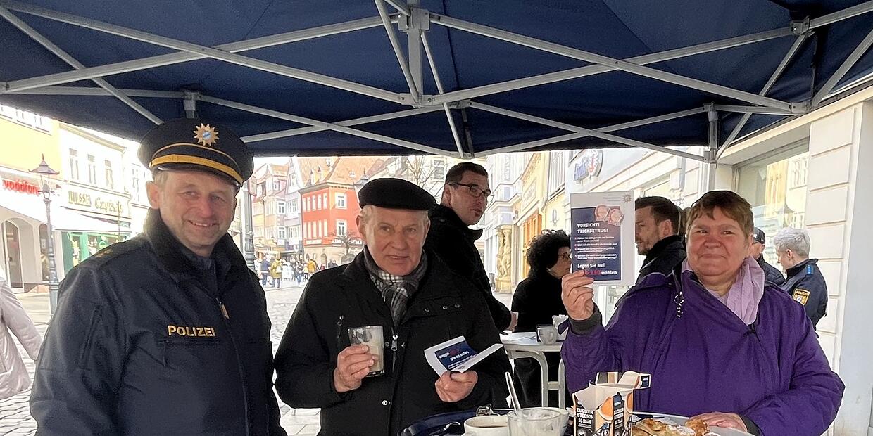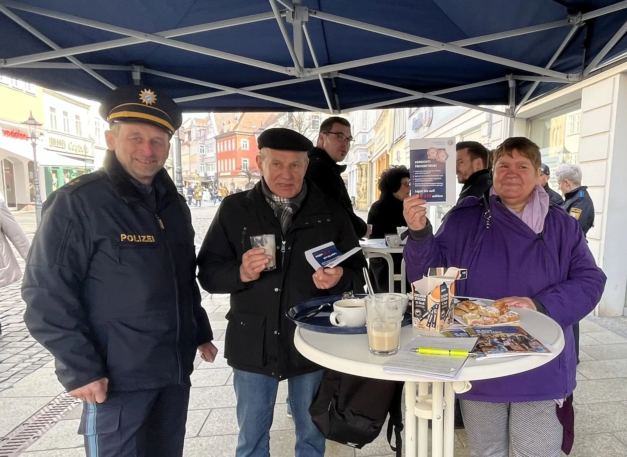 Coburger Polizei warnt Falsche Beamte, Schockanrufe - Enkeltricks immer dreister Der Infostand war am Mittwoch gut besucht. Der ein oder andere hat Schockanrufe bereits selbst erlebt. // Claudia Lindenlaub-Sauer von Claudia Lindenlaub-Sauer TEILEN  06.03.2024 Coburg – In Coburg warnt die Polizei bei der Präventionsveranstaltung „Coffee with a Cop“ vor perfiden Betrugsmaschen. Bürger sollten misstrauisch sein und bei Verdacht die Polizei informieren. „Neulich wurden meine Tochter und ich von vermeintlichen Beamten angesprochen. Es stellte sich letztendlich heraus, dass es keine echten Polizeibeamten waren. Zum Glück haben wir auf unsere Intuition gehört.“ So oder so ähnlich klingen viele Geschichten, die Bürger am Infostand der Coburger Polizei in der Spitalgasse erzählen. Eine andere Einwohnerin erzählt von Anrufen mit unterdrückter oder ausländischer Nummer. „Nicht reagieren. Einfach auflegen!“ rät der verantwortliche Kriminalhauptkommissar dazu. Er ist speziell geschult und berät Bewohner und ihre Angehörige in Einrichtungen und Seniorenheimen. Die Polizei bietet Infobroschüren und gibt Tipps, wie man sich u.a. beim Enkeltrick Betrug verhalten sollte. // Claudia Lindenlaub-Sauer Neben Schockanrufen, bei denen eine gewisse Geldsumme gefordert wird, bis zu gefälschten E-Mails und Internetshops ist so ziemlich alles dabei. Und die Betrüger werden immer perfider und denken sich neue Methoden aus. Zwar sitzen viele der Banden im Ausland, wie Südost-Europa, jedoch sprechen mittlerweile die meisten Anrufer perfekt Deutsch. So suchen beispielsweise die Betrüger gezielt im Telefonbuch nach älter klingenden Vornamen, weil sie auf Rentner hoffen, bei denen sie ein leichtes Spiel erwarten. Oder auch nach kurzen Telefonnummern, denn die geben einen Hinweis darauf, dass der Anschluss schon länger besteht. Äußerst beliebt ist auch die Masche mit falschen Beamten. Betrüger ahmen sowohl Uniform als auch Ausweise bis ins kleinste Detail nach und fordern Geldsummen. Hier gilt es genau hinschauen und sich immer den Ausweis zeigen lassen. Echte Dienstausweise unterschieden sich nicht nur in der Farbe, sondern haben auch mehr als 20 Sicherheitsmerkmale. Eine gewisse Portion Misstrauen kann in einigen Fällen schützen. So wird beispielsweise Anrufern vorgegaukelt, dass sich ein Angehöriger, meist Tochter oder Sohn, in Gefahr befinden oder an einem Unfall beteiligt sind. Hierfür ist nun eine höhere Geldsumme notwendig, die von Beamten in Zivil an der Haustür abgeholt werden soll. Oder die Betrüger nennen einen öffentlichen Ort, wie beispielsweise das Gericht, um Vertrauen zu erwecken und dem Ganzen einen offiziellen Charakter zu geben. Kriminalhauptmeister Christian Wollinger von der Kriminalpolizeilichen Beratungsstelle Coburg erklärt, wie man sich am besten im Falle eines Trickbetrugs verhalten soll. // Claudia Lindenlaub-Sauer Egal wie erschrocken oder wütend man ist – die Polizei rät dringend von Heldentaten ab! Lieber die nächste Polizeidienststelle informieren und Beweise sammeln. Auch wenn die Aussichten auf finanzielle Entschädigung meist gering sind, so können sich Opfer beispielsweise an den Weißen Ring (Bundesweites Opfertelefon: 116 006) wenden. Lesen Sie auch Seniorenunion Kriminalhauptkommissar warnt vor Enkeltrick & Co. Die Arbeitsgemeinschaft der Seniorenunion/CSU Forchheim hatte Kriminalhauptkommissar Michael Jakisch von der Kriminalpolizei Bamberg zu Gast. Er hielt einen hochaktuellen Vortrag über die verbreitete...
