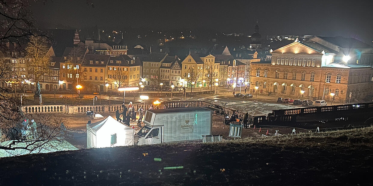 Nächtlicher Filmdreh auf den Arkaden in Coburg