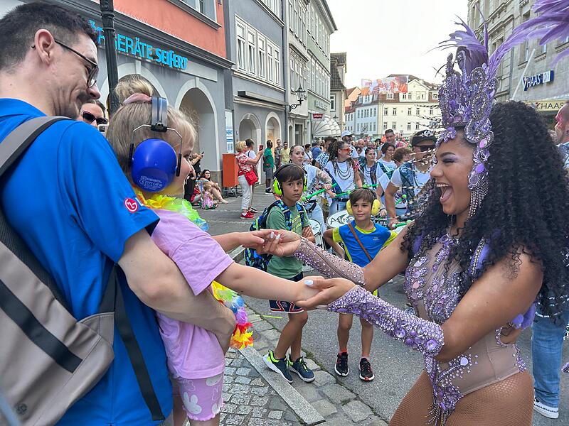 Tipps und Termine Alle Infos zum Samba-Festival 2025 in Coburg Samba-Festival Coburg // Chris Winter von Oliver Schmidt TEILEN  11.07.2025 Coburg – Von Freitag, 11. Juli, bis Sonntag, 13. Juli, verwandelt sich die Stadt Coburg wieder in das fränkische Rio: Es wird getrommelt, getanzt und gefeiert. Hier gibt’s viele wichtige Infos. Artikel anhören Sie können uns nicht hören? Diese Funktion können Sie exklusiv mit PLUS nutzen. Erhalten Sie uneingeschränkten Zugriff auf alle Audioinhalte, Artikel und vieles mehr. Vorlesefunktion freischalten Bereits -Zugriff? Jetzt Anmelden Am Freitag, 11. Juli, beginnt das diesjährige Internationale Samba-Festival. Drei Tage lang – bis zum Sonntag, 13. Juli – dreht sich in Coburg wieder alles um das südamerikanische Lebensgefühl. Auftakt Samba-Festival Coburg 2025 Auftakt Samba-Festival Coburg 2025: Pre-Opening am Donnerstagabend Wir haben hier viele wichtige Informationen zum diesjährigen Samba-Festival in Coburg zusammengetragen: 1. Wo genau befindet sich das Festivalgelände?2. Wo gibt es Parkplätze?3. Was kostet der Eintritt?4. Was hat es mit der Rabatt-Aktion der Deutschen-Bahn auf sich?5. Was ist in der Coburger Innenstadt zu beachten?6. Wohin weicht am Samba-Samstag der Wochenmarkt aus?7. Welche Bushaltestellen können nicht mehr angefahren werden?8. Wo gibt es Hilfe für gestresste Anwohner? Samba-Festival Coburg: Trommeln für den Frieden // Foto: Oliver Schmidt 1. Wo genau befindet sich das Festivalgelände? Das Samba-Festival findet in der gesamten Innenstadt von Coburg statt. Die beiden Hauptbühnen stehen auf dem Schlossplatz und dem Marktplatz. Eine weitere Bühne gibt es auf dem Albertsplatz, der auch ohne Eintrittsbändchen erreichbar ist. Sogenannte Spielflächen gibt es vor der Loreley (Herrngasse), bei Wein Oertel (Kleine Johannisgasse), am Theaterplatz (vor VR-Bank), in der Kuhgasse und vor der Reithalle. Am Freitag- und Samstagabend gibt es zudem diverse Shows im Kongresshaus. Willkommen in Samba-City: In Coburg wird wieder das Internationale Samba-Festival gefeiert. Da kann es mitunter ganz schön laut werden. Hier schützt sich ein Kind und wird prompt angelächelt von einer Samba-Tänzerin. // Oliver Schmidt 2. Wo gibt es Parkplätze? Der Großparkplatz Anger ist gesperrt! Denn er dient während des Samba-Festivals wieder als riesiger Wohnmobilstellplatz. Es gibt aber folgende Parkmöglichkeiten in Coburg: Parkhaus Zinkenwehr (Zufahrt über Goethestraße) Parkhaus Mauer (Zufahrt über Am Viktoriabrunnen) Parkhaus Post (Zufahrt über Hindenburgstraße) Tiefgarage Albertsplatz (Zufahrt über Goethestraße) Bad-Parkplatz (Rosenauer Straße) Darüber hinaus gibt es wieder ein umfangreiches Park-and-Ride-Angebot sowie zahlreiche Shuttlebusse. Alle Infos dazu gibt es hier Die Sambagruppe Edyllia sorgt mit ihren mitreißenden Rhythmen in der Stadt für eine ausgelassene Stimmung. // Tanja Wippenbeck 3. Was kostet der Eintritt? Die verschiedenen Vorverkaufsphasen sind vorbei. An sofort gelten folgende Tarife: Das 3-Tages-Ticket kostet 39 Euro; es ist erhältlich in der Tourist-Info Coburg (Herrngasse) sowie ab dem Festival-Freitag an allen Samba-Kassen Ein Ticket ausschließlich für den Samba-Freitag kostet 29 Euro Ein Ticket ausschließlich für den Samba-Samstag kostet 36 Euro Ein Ticket ausschließlich für den Samba-Sonntag kostet 19 Euro Weitere Infos auch hier Promis und Events 10 Tipps fürs Coburger Samba-Festival Wann findet ein inoffizieller Samba-Umzug statt? Wo sind Stars aus der RTL-Show „Let’s dance“ zu erleben? Welches besonderes Musik-Erlebnis gibt es im Kongresshaus? Hier beantworten wir alle Fragen. 4. Was hat es mit der Rabatt-Aktion der Deutschen-Bahn auf sich? Die Deutsche Bahn hat ein besonderes Angebot für alle Besucher des Samba-Festivals: Wer mit der Bahn anreist und an der Samba-Kassse sein Bahn-Ticket vorzeigt, erhält zehn Prozent Nachlass auf die Eintrittskarten. Das Eis zum Festival Achtung, nach diesem Eis kann jeder Samba tanzen! Guido Michielin hat eine besondere Beziehung zum Samba-Festival. Das Caipirinha-Eis, das er auch dieses Jahr wieder anbietet, schmeckt lecker und frisch. Es birgt aber auch eine kleine Gefahr. 5. Was ist in der Coburger Innenstadt zu beachten? Rund ums Samba-Festival kommt es zu zahlreichen Sperrungen in der Coburger Innenstadt. Ab Freitagnachmittag ist zum Beispiel keine Durchfahrt mehr möglich auf der Achse Theaterplatz – Grafengasse – Rückertstraße. In zahlreichen Bereich gilt ein absolutes Halteverbot, weil großräumige Feuerwehrzufahrten geschaffen werden müssen. Festival-Auftakt 2025 Hier gibt’s die ersten Fotos aus „Samba-City“! Angeführt von der Königin des Karnevals von Rio de Janeiro zogen am Donnerstagabend die Coburger Sambagruppen. Es war ein Vorgeschmack auf das, was an den kommenden Tagen in der Vestestadt los ist. Aufpassen sollten auch Radfahrer, die ihre Fahrzeuge in der Innenstadt parken: Zahlreiche Abstellbügel – zum Beispiel am Marktplatz – werden bereits im Laufe der Woche entfernt. Sie müssen weichen, damit Platz für die diversen Festival-Aufbauten ist. Zahlreiche Fahrrad-Abstellbügel in der Coburger Innenstadt werden wegen des Samba-Festivals entfernt. // Foto: Oliver Schmidt 6. Wohin weicht am Samba-Samstag der Wochenmarkt aus? Aufgrund des Coburger Samba-Festivals entfällt der Wochenmarkt am Samstag, 12. Juli 2025. Die Markthändlerinnen und -händler kehren am Mittwoch, 16. Juli 2025, wie gewohnt auf den Marktplatz zurück. Coburger Wochenmarkt // Archiv / Oliver Schmidt Bereits am Freitag, 11. Juli 2025, werden die Stände des Gemüsemarkts wegen der Festivalvorbereitungen verlegt. Besucherinnen und Besucher finden sie an diesem Tag in der Spitalgasse sowie auf der Westseite des Marktplatzes. Der Markt ist wie gewohnt von 8 bis 13 Uhr geöffnet. Nach 13 Uhr ist kein Verkauf mehr möglich, da der Aufbau für das Samba-Festival beginnt. Die Woche nach Samba lädt der Coburger Sommermarkt zu einem besonder