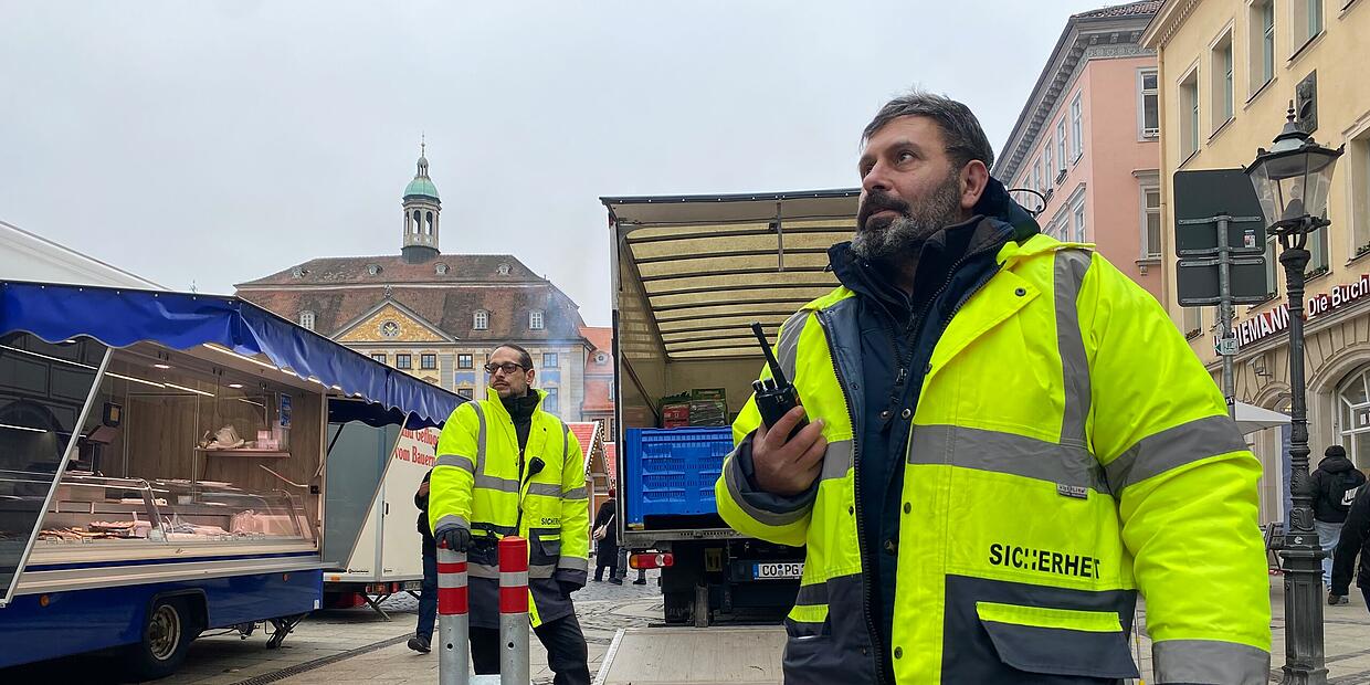 – Nicht nur die Sperren in den Gassen sichern den Coburger Weihnachtsmarkt. Da sind auch die Security-Männer, die sie bewachen. Für sie heißt das: Lange, kalte Schichten und kein Ort zum Wärmen.