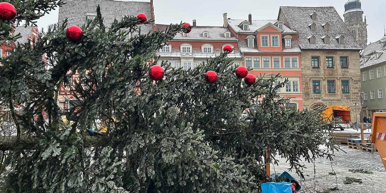 – Vom Schattendasein auf einem Parkplatz zum Blickfang auf dem Markt: Diese Tanne hat Karriere gemacht! Doch jetzt war Schluss – rechtzeitig, bevor sie wohl eine schwere Last zu tragen gehabt hätte.