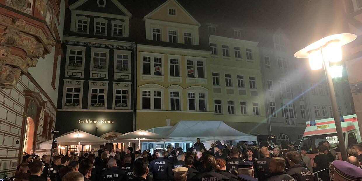 – Nach Fackelzug und Feierstunde wollten viele Mitglieder des Coburger Convents eigentlich wieder gerne Bier trinken gehen. Doch der Zugang wurde blockiert.