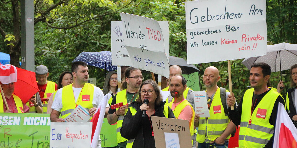 Klinikum Coburg Betriebsrat spricht sich für kommunale Trägerschaft aus Krankenhausmitarbeiter und Vertreter der Gewerkschaft Verdi demonstrierten im Mai 2024 vor einer nicht-öffentlichen Sitzung von Stadtrat und Kreistag. In der Sondersitzung ging es auch damals schon um die Zukunft des Klinikums Coburg. // Julia Scholl von Oliver Schmidt TEILEN  23.07.2024 Coburg – Kurz vor der Entscheidung über eine mögliche Privatisierung warnt der Betriebsrat: Das Gesundheitswesen dürfe nicht zunehmend dem Wettbewerb überlassen werden. Die Spannung vor der wichtigen Sondersitzung von Stadtrat und Kreistag steigt: Bleibt das Klinikum Coburg weiter in kommunaler Trägerschaft oder steigt ein privater Betreiber ein? Nachdem sich die Hängepartie um die Zukunft des Klinikums Coburg nun schon über Monate hinzieht, wird für diesen Donnerstag (25. Juli) eine Entscheidung erwartet. Expertin nimmt Stellung Klinikum Coburg: Wer eine Privatisierung skeptisch sieht Katja Bittner ist überzeugt davon, dass sich auch ein kommunales Krankenhaus wirtschaftlich betreiben lässt. Sie würde sich von den Politikern „mehr Mut und mehr Selbstvertrauen“ wünschen. Am Dienstag hat sich noch einmal der Betriebsrat des Klinikums Coburg zu Wort gemeldet. In einer von Tarik Birinci versendeten Erklärung wird „Klarheit und Verantwortungsbereitschaft“ gefordert. Zunächst wird in der Erklärung eingeräumt, dass auf den Schultern des Coburger Stadtrates und des Kreistages momentan „eine große Last“ liege. Die Entscheidung, die am Donnerstag wohl getroffen werde, habe „weitreichende Folgen für die Zukunft“. Insofern habe der Betriebsrat „großen Respekt vor der Verantwortung“, welche die Kommunalpolitik im Augenblick zu tragen habe. Soziale Motivation oder wirtschaftliche Ziele? Dann äußert sich der Betriebsrat zur Sache: Bedingt durch die finanziellen Schwierigkeiten hätten viele Städte und Landkreise ihre Krankenhäuser an private Träger übergeben. Für öffentliche Krankenhausträger seien Krankenhäuser „ein Baustein der Sozial- und Gesundheitspolitik“. Sie würden aus sozialer Motivation heraus handeln und nach politischen Erwägungen entscheiden. Private Krankenhausträger würden hingegen in erster Linie wirtschaftliche Ziele verfolgen, insbesondere eine angemessene Verzinsung des eingesetzten Eigenkapitals. „Jeder Krankenhausträger orientiert seine betrieblichen Entscheidungen an der Erreichung der aufgestellten Unternehmensziele“, heißt es in der Erklärung des Betriebsrats. Lesen Sie hier, wie der Sana-Chef für eine Privatisierung wirbt: Klinikum Coburg „Gemeinsam einen neuen Weg beschreiten“ Sana-Chef Thomas Lemke wirbt für eine Privatisierung. Er spricht über die Zukunft der Kinderklinik und des Standorts Neustadt, und er vergleicht seine Mannschaft mit Spanien bei der Fußball-EM. Ein privater Träger, der ein öffentliches Krankenhaus kauft, wolle zunächst den Kaufpreis refinanzieren und anschließend eine „angemessene Eigenkapitalrendite erwirtschaften“, wie der Betriebsrat weiter argumentiert. Gemäß Artikel 20 Absatz 1 des Grundgesetzes sei die Bundesrepublik Deutschland ein demokratischer und sozialer Bundesstaat. Zur staatlichen „Daseinsvorsorge“ würde die Gesundheitsvorsorge und damit das Krankenhauswesen gehören. Gemeinsamer Appell Klinikum Coburg: Hilferuf der Bürgermeister Fast alle Bürgermeister des Landkreises sind für den Einstieg eines privaten Betreibers. Eine kommunale Trägerschaft würde sehr viel Geld kosten. „Das wäre unser Todesstoß“, sagt ein Rathaus-Chef. Dies alles führt zu folgender Schlussfolgerung des Betriebsrats: „Der Staat darf nicht das Gesundheitswesen zunehmend dem Wettbewerb überlassen und sich im gleichen Atemzug aus seiner Verantwortung für die öffentliche Daseinsvorsorge zurückziehen.“ Krankenhäuser vorzuhalten sei kein „Gnadenakt“ des Staates, der zur politischen Disposition stehe oder etwa wirtschaftlichen Nützlichkeitserwägungen unterliegen könnte. Vielmehr liege der Sicherstellungsauftrag für die stationäre Krankenhausversorgung „eindeutig“ bei den Landkreisen und kreisfreien Städten. Fazit: Der Betriebsrat des Klinikums Coburg sieht in einer kommunaler Trägerschaft „deutlich mehr Chancen als Risiken“. Grundsätzlich erwartet der Betriebsrat aus Mitarbeitersicht „Vertragstreue“ im Hinblick auf eine allgemeine Zusage, die im Klinikum Coburg bestehende generelle Bindung an Tarifverträge der kommunalen Arbeitgeberverbände (VKA) in vollem Umfang weitergelten zu lassen. Lesen Sie auch: Umfrage Klinikum Coburg: Privatisieren oder nicht? Am Donnerstag entscheidet sich wohl die Zukunft des Klinikums Coburg. Vorher wollen wir die Meinung der Bürgerinnen und Bürger wissen. Im Text gibt’s den Link zur Umfrage und viele Hintergrund-Infos. Regiomed Insolvenz Der Poker ums Coburger Klinikum Sollte das Krankenhaus in kommunaler Trägerschaft bleiben, wäre das für die Stadt Coburg eine enorme finanzielle Belastung. Das sagt die Kämmerin und rechnet im Detail einfach mal alles vor. Insolvenzverfahren Regiomed: Sorgen in der Belegschaft Die Hängepartie um die Zukunft des Klinikkonzerns dauert an. Immerhin bestätigen jetzt die Verantwortlichen, dass noch im Juli „umfassende und aussichtsreiche Zukunftsentscheidungen“ erwartet werden. Appell aus Lichtenfels Regiomed: Landrat verärgert über Hängepartie Im Januar hat der Klinikkonzern einen Antrag auf Insolvenz in Eigenverwaltung gestellt. Ein halbes Jahr später ist noch immer unklar, ob zum Beispiel ein privater Investor einsteigen könnte. Tauziehen in Coburg Verdi: Klinikum soll in kommunaler Trägerschaft bleiben! Bei der Gewerkschaft wächst die Sorge, dass ein privater Investor das Coburger Krankenhaus übernehmen könnte. Deshalb ist für Donnerstag eine Kundgebung geplant – unmittelbar vor einer vielleicht wegweisenden Sitzung.
