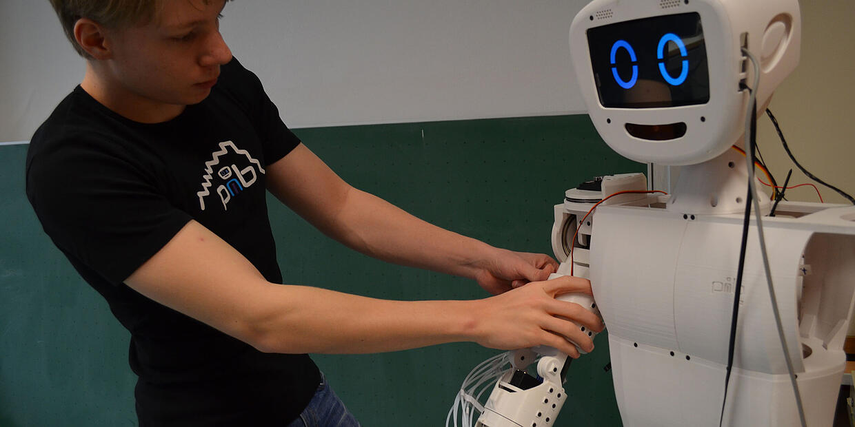Preis für KI-Projekt Ernestinum-Schüler bauen einen Roboter Janne Reimann stellt den Roboter Pib vor, ein Projekt, das erfolgreich ist und noch viel Potenzial hat. // Gaby Bertram TEILEN  04.03.2024 Coburg – Für den Roboter „Pib“ erhielten die zehn Schüler und eine Schülerin des P-Seminars „Künstliche Intelligenz in der Praxis“ am Gymnasium Ernestinum gestern den P-Seminarpreis Oberfranken. Ein „super, super interessantes Projekt“, sprudelt es aus Jacqueline Zithof, wenn sie über das Projekt Pib spricht. „Es hat so viel Spaß gemacht“, sagt sie, „weil die KI ein beeindruckendes Thema ist, das so viel möglich macht.“ Künstliche Intelligenz ChatGPT-Firma erzeugt jetzt auch Video aus Text-Vorgaben Mehrere Unternehmen haben bereits Software entwickelt, die Videos aus Text erzeugen kann. Nun erweitert auch OpenAI sein Portfolio um dieses Angebot. Die breite Masse kann Sora noch nicht sofort nutzen. Im Internet haben die Schüler über verschiedene Portale mit Gleichgesinnten gechattet, sich ausgetauscht, gemeinsam weltweit an Problemen geforscht. Die 17-jährige Jacqueline ist ein großer Fan der KI. „Natürlich sehe ich auch die Probleme, die KI mit sich bringt, aber sie fördert kritisches Denken, zu lernen, dieses interessante Werkzeug zu nutzen.“ Ob sie mal in die Richtung Informatik geht, weiß die Abiturientin noch nicht. Sie hat so viele Interessen, dass sie sich nicht entscheiden kann – vielleicht Psychologie oder Biologie, alles offen. In enger Zusammenarbeit mit der Firma isento Nürnberg, für die das Ernestinum als Pilotschule agiert sowie mit der Hochschule Coburg nahm der Roboter Pib Gestalt an. Zu den Bausätzen, die isento anbietet, entstanden weitere Teile am 3-D-Drucker, wurde die Kamera mittels KI entwickelt. Über sie kann Pib Handbewegungen erkennen und imitieren und zumindest theoretisch auch kommunizieren. Zugegeben, Pib steckt noch ziemlich in den Kinderschuhen, meint Seminarleiterin Franziska Schmitt. Umso mehr sei er aber eine Herausforderung für künftige Schülergenerationen und Robotik-Workshops, die dem Pib noch mehr Funktionen und Leben einhauchen, ihn wachsen lassen und vervollständigen. Jacqueline Zithof: Die KI ist ein interessantes Werkzeug, das man lernen sollte, zu benutzen und das mit kritischem Verstand. // Gaby Bertram Der Preis ist zusätzliche Motivation, dem Roboter im wahrsten Sinne des Wortes das Laufen beizubringen. So sieht es auch Oberstudiendirektor Bernd Jakob, Schulleiter am Ernestinum. „In diesem P-Seminar werden Schlüsselqualifikationen gefördert und Einblicke in Hightechbereiche vermittelt, die auch Berufsorientierung sind.“ Coburger bei Jugend forscht Der Wert von Gallseife und das Spucke-Problem Die Welt besser zu machen oder besser verstehen, darum geht es Nachwuchsforschern aus Oberfranken bei Jugend forscht. 18 Kinder und Jugendliche aus Stadt und dem Landkreis Coburg zeigen ihre Projekte. Die P-Seminare, die es nunmehr seit rund zehn Jahren gibt, so Harald Vorleuter, Ministerialbeauftragter für die Gymnasien Oberfranken, sollen die Schulen nach außen öffnen, die Schüler in Beziehung zum beruflichen Umfeld setzen und Berufsorientierung erleichtern. P-Seminare fördern darüber hinaus Teamarbeit von der Projektidee bis zur Umsetzung, helfen im Umgang mit Frustrationsstrecken und Neufindungsprozessen. In diesem Sinne arbeiten Schulen, Wirtschaft und Wissenschaft eng zusammen – ein Erfolgsmodell, das in Anbetracht von mangelndem Fachleutenachwuchs umso wichtiger ist. Das unterstreicht Patrick Püttner, Geschäftsführer der Vereinigung der Bayerischen Wirtschaft: Zwölf Prozent Abbrecherquote bei der dualen Ausbildung, 25 bis 28 beim Bachelor-Studium in Bayern und 2,1 Azubi-Stellen pro Azubi. Rechtzeitige Berufsorientierung und eine enge Zusammenarbeit zwischen Schule und Wirtschaft seien erforderlicher denn je. „Wir brauchen kluge, engagierte Köpfe“, sagt Büttner und ein anerkennendes „Chapeau“ für die erfolgreichen P-Seminarteilnehmer. Jetzt auch in Coburg Service-Roboter erobern die Gastronomie Service-Roboter und fränkische Wirtshauskultur – das muss kein Widerspruch sein. Wie der technische Fortschritt helfen kann, das Personal in der Gastronomie zu entlasten und den Gast zu erfreuen, erklärt ein Coburger Wirt. MIT VIDEO Pib, erklärt der 17-jährige Janne Reimann, einer der Projektleiter, stehe übrigens für „printable intelligent bot“. Er demonstriert, wie Pib Finger- und Handbewegungen erkennt und imitiert. Noch hat Pib nur einen Arm und steht auf einem Ständer. Da ist noch einiges weiterzuentwickeln, sieht auch Janne, aber die ersten Schritte sind getan. Für Janne ist die Informatik ein spannendes Feld. Vielleicht wird er Luft- und Raumfahrttechnik studieren, aber zuerst steht das Abi vor der Tür – für Janne mit einer Eins vor dem Komma, da ist er sich sicher. Lesen Sie auch Statistik Wenig Künstliche Intelligenz in der bayerischen Wirtschaft Nur ein kleiner Teil der bayerischen Unternehmen nutzt bisher Künstliche Intelligenz (KI). Nach einer aktuellen Erhebung des Statistischen Landesamts nutzten im vergangenen Jahr 13 Prozent der Unternehmen mit zehn oder mehr Beschäftigten eine zur KI zählende Technologie. Das teilte die Fürther Behörde am Dienstag mit.