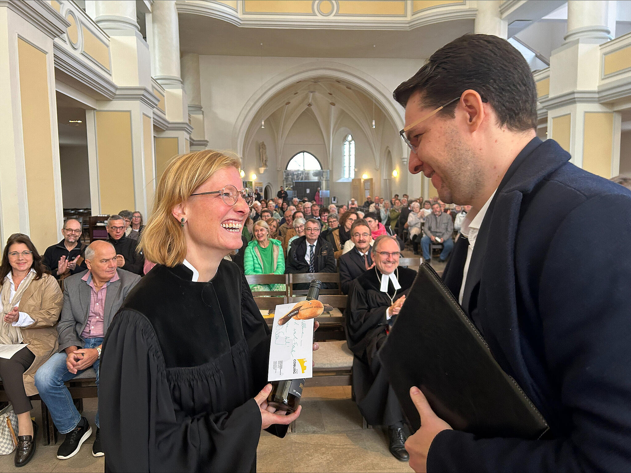 Kirche Neue Pfarrerin für St. Moriz in Coburg Victoria Fleck wurde als neue Pfarrerin in St. Moriz eingeführt. Willkommen geheißen wurde sie auch von Coburgs Oberbürgermeister Dominik Sauerteig (SPD). // Oliver Schmidt von Oliver Schmidt TEILEN  15.09.2024 Coburg – Victoria Fleck wurde am Sonntag als neue, weitere Pfarrerin in St. Moriz eingeführt. Die 44-Jährige steht auf besondere Weise für das Zusammenwirken der Pfarrei „Evangelisch unter der Veste“. Auf den ersten Blick ist Victoria Fleck eine neue, weitere Pfarrerin in der Coburger Kirchengemeinde St. Moriz. Neue gebildete Pfarrei in Coburg Auf den zweiten Blick ist die 44-Jährige, die am Sonntag bei einem Gottesdienst offiziell eingeführt wurde, aber noch viel mehr: Sie besetzt – in Teilzeit – die sechste Pfarrstelle innerhalb der Pfarrei „Evangelisch unter der Veste“. In dieser neu gebildeten Pfarrei sind die Kirchengemeinden St. Moriz, Heilig Kreuz, St. Matthäus (alle Coburg) sowie Dörfles-Esbach zusammengeschlossen. Gassi gehen in Dörfles-Esbach? Da trifft es sich gut, dass Victoria Fleck zwar hauptsächlich in St. Moriz wirken wird. Doch mit ihrer Familie wird sie ins Gemeindehaus von St. Matthäus ziehen. Ihr Büro wiederum wird sich in den Räumen von Heilig Kreuz befinden. „Wenn Sie dann auch noch mit Ihrem Hund in Dörfles-Esbach spazieren gehen, passt alles“, scherzte Pfarrerin Hedwig Porsch (Heilig Kreuz) in ihrem Grußwort. Victoria Fleck wurde als neue Pfarrerin in St. Moriz eingeführt. Willkommen geheißen wurde sie auch von Coburgs Oberbürgermeister Dominik Sauerteig (SPD). // Oliver Schmidt Ein weiteres Grußwort nach dem Einführungsgottesdienst sprach Oberbürgermeister Dominik Sauerteig (SPD). Er hieß Victoria Fleck samt ihrer drei Kinder in der „Familienstadt Coburg“ willkommen. Außerdem wies er darauf hin, dass Familie Fleck nun „vollständig“ in Coburg sein werde. Denn: Victoria Flecks Mann arbeitet seit fünf Jahren als Kurator auf der Veste; solange Victoria Fleck noch als Pfarrerin in Zeilitzheim (Landkreis Schweinfurt) tätig war, musste er immer zu seiner Familie pendeln. Lesen Sie auch: Wie geht’s weiter? „Aus“ für traditionsreiches Hotel im Landkreis Coburg Das Landhotel Steiner stellt zum 30. September den Betrieb ein. Über die Hintergründe wird in und um Großheirath viel spekuliert. Die Eigentümerfamilie erklärt, wie es in Zukunft weitergehen könnte. Mieter gesucht Wer zieht bald ins bunte Haba-Haus? Der massive Stellenabbau bei der Haba-Familygroup hat jetzt auch Konsequenzen für Immobilien des Unternehmens. Das vielleicht markanteste Gebäude in Bad Rodach wird – vorerst – nicht mehr benötigt. Schock auf Autobahn Nach Feuer: Coburger Geschäftsmann bangt um seine Existenz Timo Hippner von der Stadt-Sennerei hat viel Geld für einen neuen mobilen Verkaufswagen ausgegeben. Doch der Wagen ist jetzt – samt Waren im Wert von mehreren tausend Euro – in Flammen aufgegangen. Nachtleben in Coburg Neue Kneipe, neuer Club - und was tut sich beim Amadeus? Die Kult-Kneipe „Gurgala“ musste in der Schenkgasse schließen – doch der Wirt macht jetzt an anderer Stelle weiter. Auch am Bahnhof und auf der Mauer gibt es Bewegung in der Coburger Gastro-Szene.