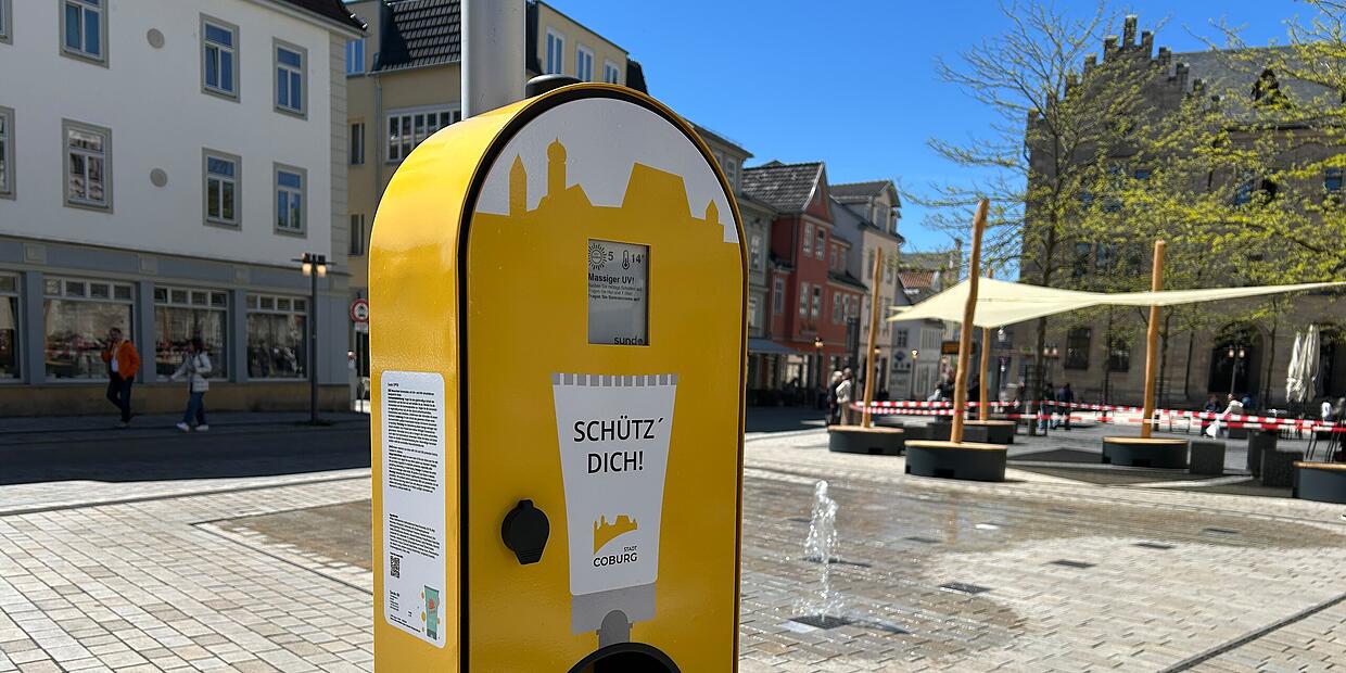 – Was tun gegen immer mehr Hitze in der Stadt? In Coburg wurden jetzt erste Maßnahmen ergriffen. Ein echter Hingucker ist das Sonnensegel auf dem Albertsplatz. Daneben steht ein besonderer Automat.