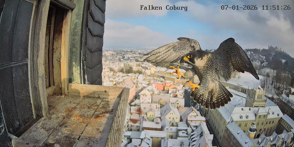 – Der LBV Coburg hat an der Turmspitze der Coburger Morizkirche eine neue Außenkamera montiert. Die Webcam liefert ab sofort tolle Aufnahmen vom hier brütenden seltenen Wanderfalken.
