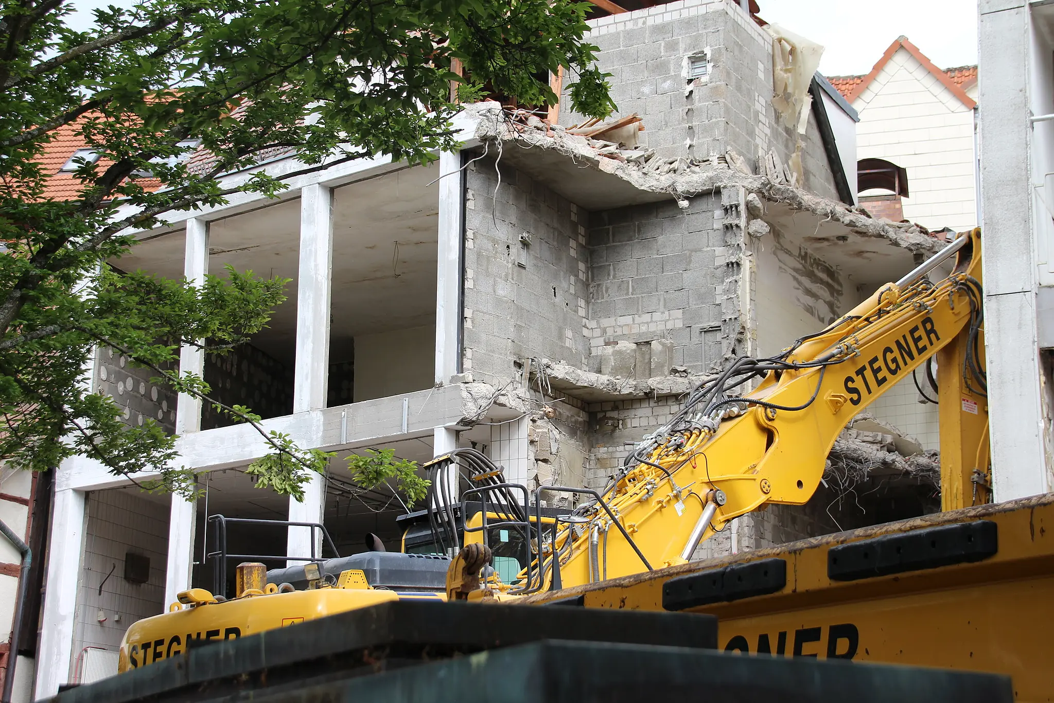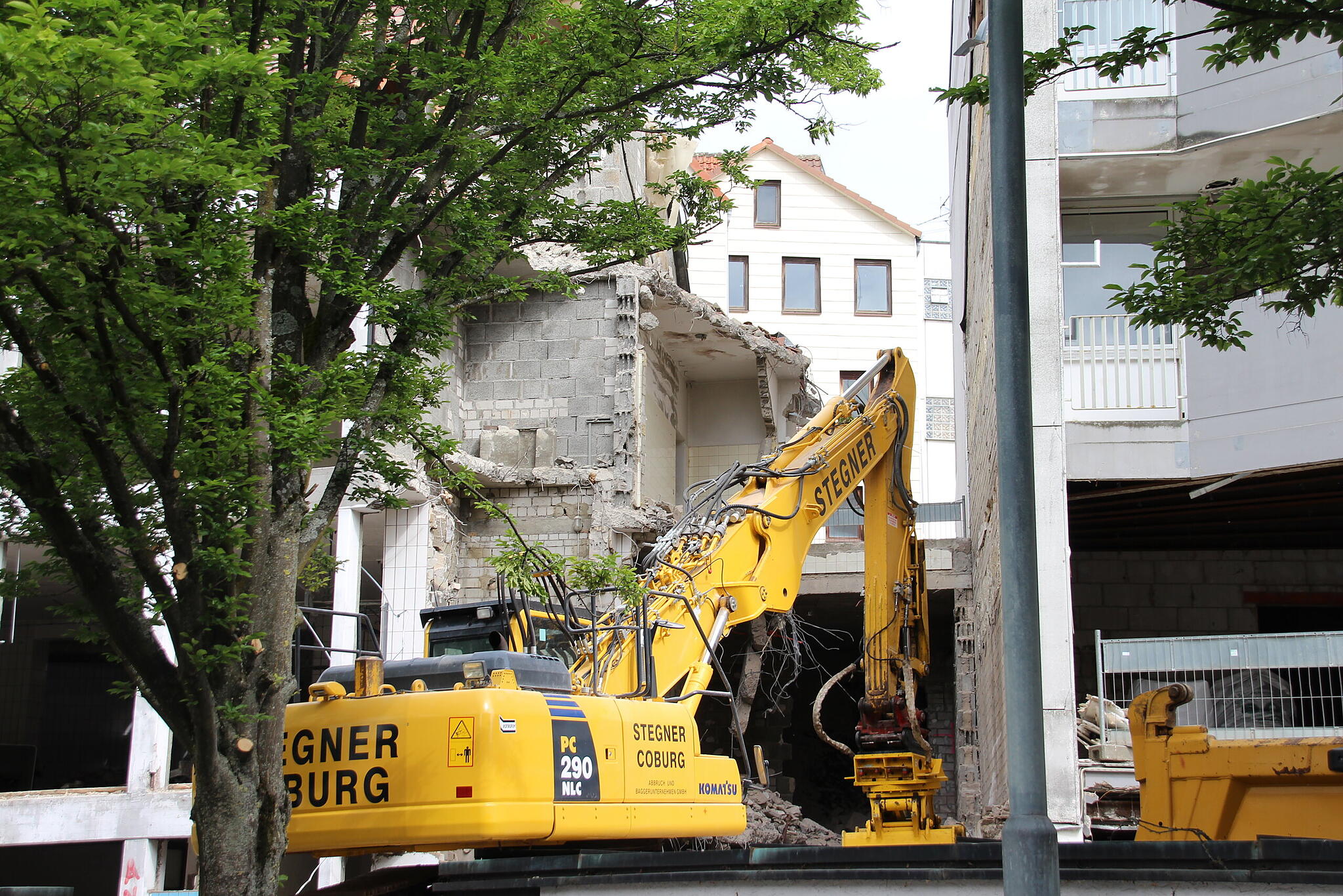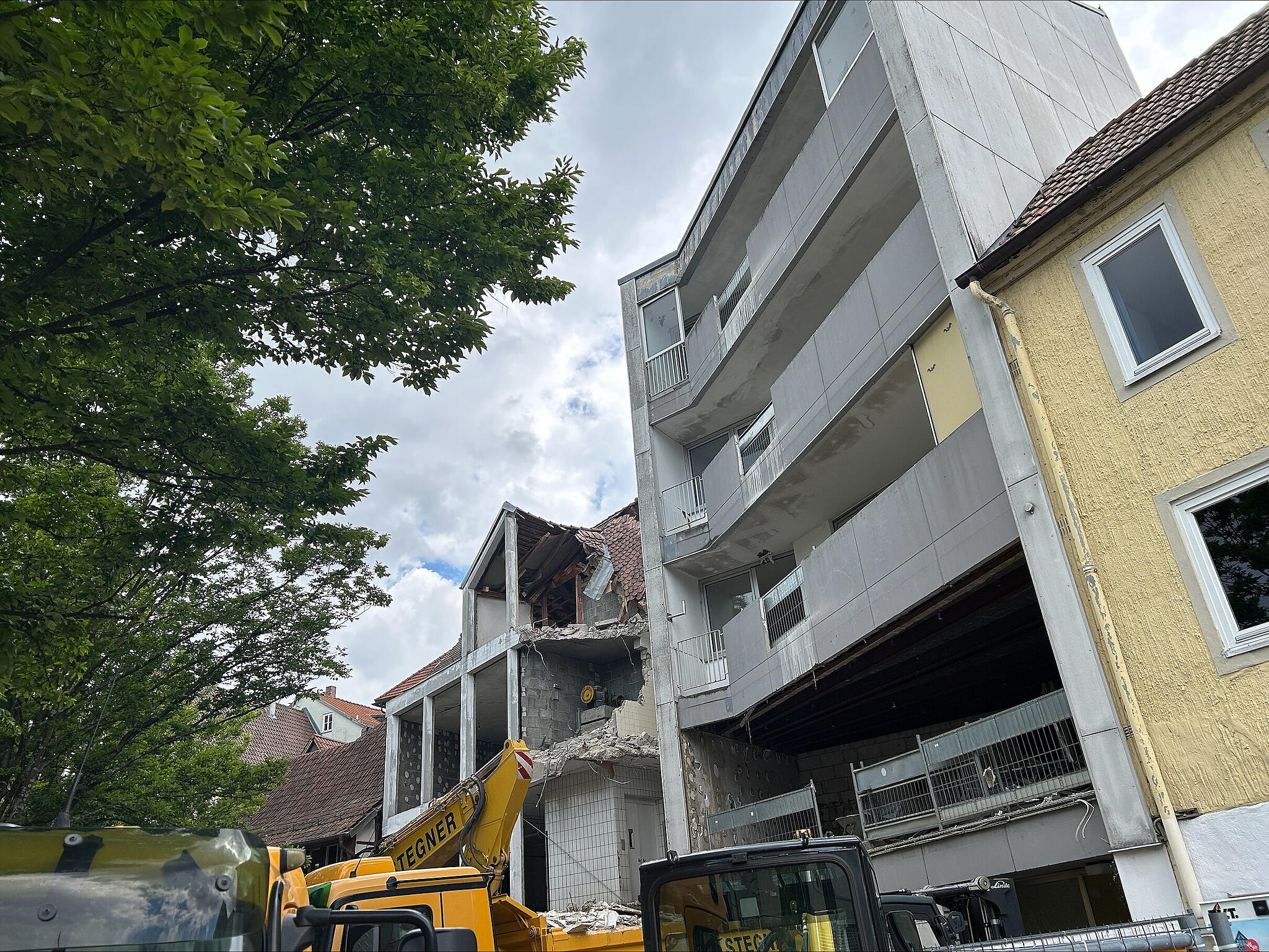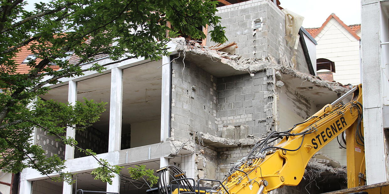 Platz machen für neues Projekt Die alte Fleischwarenfabrik in Coburg ist bald Geschichte Abrissarbeiten im Lohgraben in Coburg: Der rückwärtige Gebäudeteil der ehemaligen Fleischwarenfabrik Schlick verschwindet. // Foto: Oliver Schmidt von Oliver Schmidt TEILEN  26.05.2025 Coburg – Im Lohgraben schreiten die Arbeiten zügig voran. Vom Gebäudekomplex der ehemaligen Fleischerei Schlick wird allerdings nur der hintere Teil abgerissen. Was genau ist dort künftig geplant? Artikel anhören Sie können uns nicht hören? Diese Funktion können Sie exklusiv mit PLUS nutzen. Erhalten Sie uneingeschränkten Zugriff auf alle Audioinhalte, Artikel und vieles mehr. Vorlesefunktion freischalten Bereits -Zugriff? Jetzt Anmelden Update vom 27. Mai, 16.30 Uhr: Die Fleischwarenfabrik in Coburg ist bald Geschichte Die Abrissarbeiten im Lohgraben in Coburg schreiten weiter zügig voran. Nachdem seit Tagen Vorarbeiten stattfanden, stieß am Dienstag erstmals ein Abrissbagger ins Gebäude. Das Gebäude der ehemaligen Fleischwarenfabrik Schlick in Coburg wird abgerissen. // Foto: Oliver Schmidt Hier der ursprüngliche Text vom 26. Mai: Die alte Fleischwarenfabrik in Coburg verschwindet Abrissarbeiten im Lohgraben in Coburg: Der rückwärtige Gebäudeteil der ehemaligen Fleischwarenfabrik Schlick verschwindet. // Foto: Oliver Schmidt Seit ein paar Wochen laufen die Abrissarbeiten im Coburger Lohgraben. Um Platz zu schaffen für das Projekt Mehrgenerationenwohnen muss vor allem der rückwärtige Gebäudeteil der ehemaligen Fleischwarenfabrik Schlick verschwinden. Vor Beginn der Abrissarbeiten: Blick auf das Hintergebäude der ehemaligen Fleischfabrik Schlick aus Richtung Lohgraben // Jochen Berger Inhaber und auch Sanierungsträger ist die Wohnbau Stadt Coburg. Diese hatte unlängst erklärt, warum der Abriss erforderlich ist. Zwar sei Nachhaltigkeit „unser oberstes Gebot“, wie es hieß. Deswegen werde stets sorgfältig geprüft, ob ein Gebäude tatsächlich dem Abriss zum Opfer fallen muss. In vielen Fällen müsse das auch nicht, im Falle des ehemaligen Schlick dann aber doch: Die Mauern seien zu alt und zu marode. Wichtig: Abgerissen wird lediglich der hintere Teil des Gebäudekomplexes (in Richtung Lohgraben). Der vordere und markantere Teil werde hingegen erhalten und saniert. Ehemaliger Hofschlachter Schlick in Coburg: Dieser vordere Gebäudeteil (Richtung Steinweg) wird erhalten und saniert. // Jochen Berger In diesem geschichtsträchtigen Gebäude soll – mit neuen Anbauten zum Lohgraben hin – in den kommenden Jahren ein besonderes Projekt entstehen: das Mehrgenerationenwohnen. Abrissarbeiten im Lohgraben in Coburg // Foto: Oliver Schmidt Mit der Planung ist das Coburger Architekturbüro „Atelier Huffer Wenzel“ beauftragt, die beim Ausschreibungs-Wettbewerb den ersten Platz belegten. Viele Ideen Spannende Pläne für den Steinweg in Coburg Für das Projekt „Mehrgerationenwohnen“ im Steinweg veranstaltete die Coburger Wohnbau einen Architektenwettbewerb. Als der Sieger verkündet wurde, war die Überraschung groß. „Bevor die Bagger aber zur Tat schreiten können, erfolgt zunächst der selektive Rückbau im Inneren, um eine umweltgerechte Entsorgung zu gewährleisten“, so die weitere Erklärung der Wohnbau. Fränkische Küche Neue Gastronomen für den Coburger Theaterplatz Die Künstler-Klause hat wieder geöffnet, und auch zwei Häuser weiter tut sich was: Das ehemalige Tapas-Restaurant wird umgebaut. Party zur Eröffnung Schlagerschloss bei Coburg: Jetzt wird der Traum wahr Sie wurden belächelt. Doch Angela Henn und Dennis Klak haben sich nicht beirren lassen. Jetzt wird ihr Traum von einem Schlagerschloss Wirklichkeit. Am Samstag ist Eröffnung mit vielen Stars. Junge Wirtin startet in Coburg Neueröffnung Künstler-Klause: Ein erster Blick in die Karte Das traditionsreiche Restaurant am Theaterplatz ist ab diesem Dienstag wieder geöffnet. Das Weinsortiment ist umfangreich wie bisher, aber Biertrinker müssen sich umstellen. Und was gibt es zu essen?