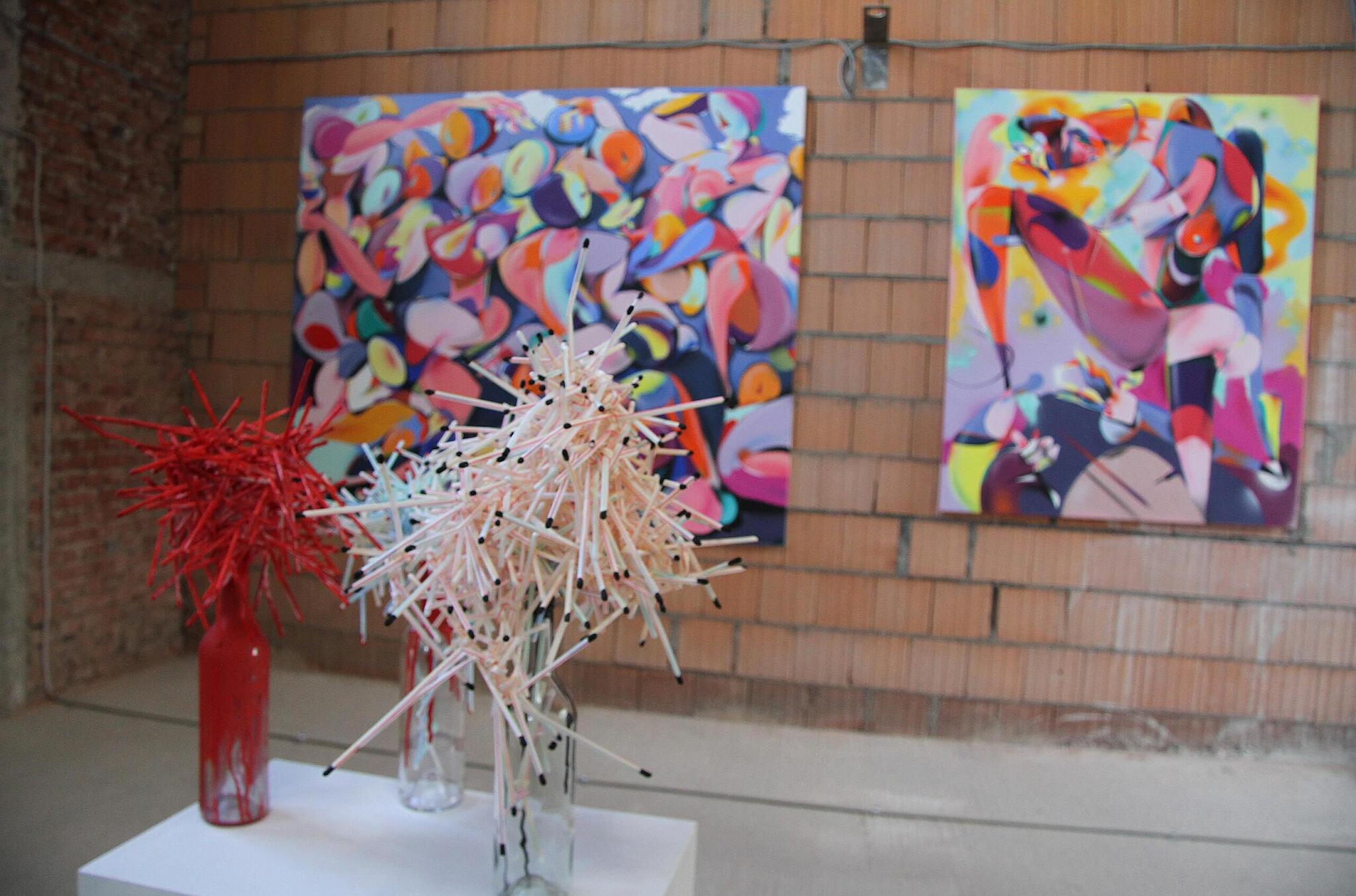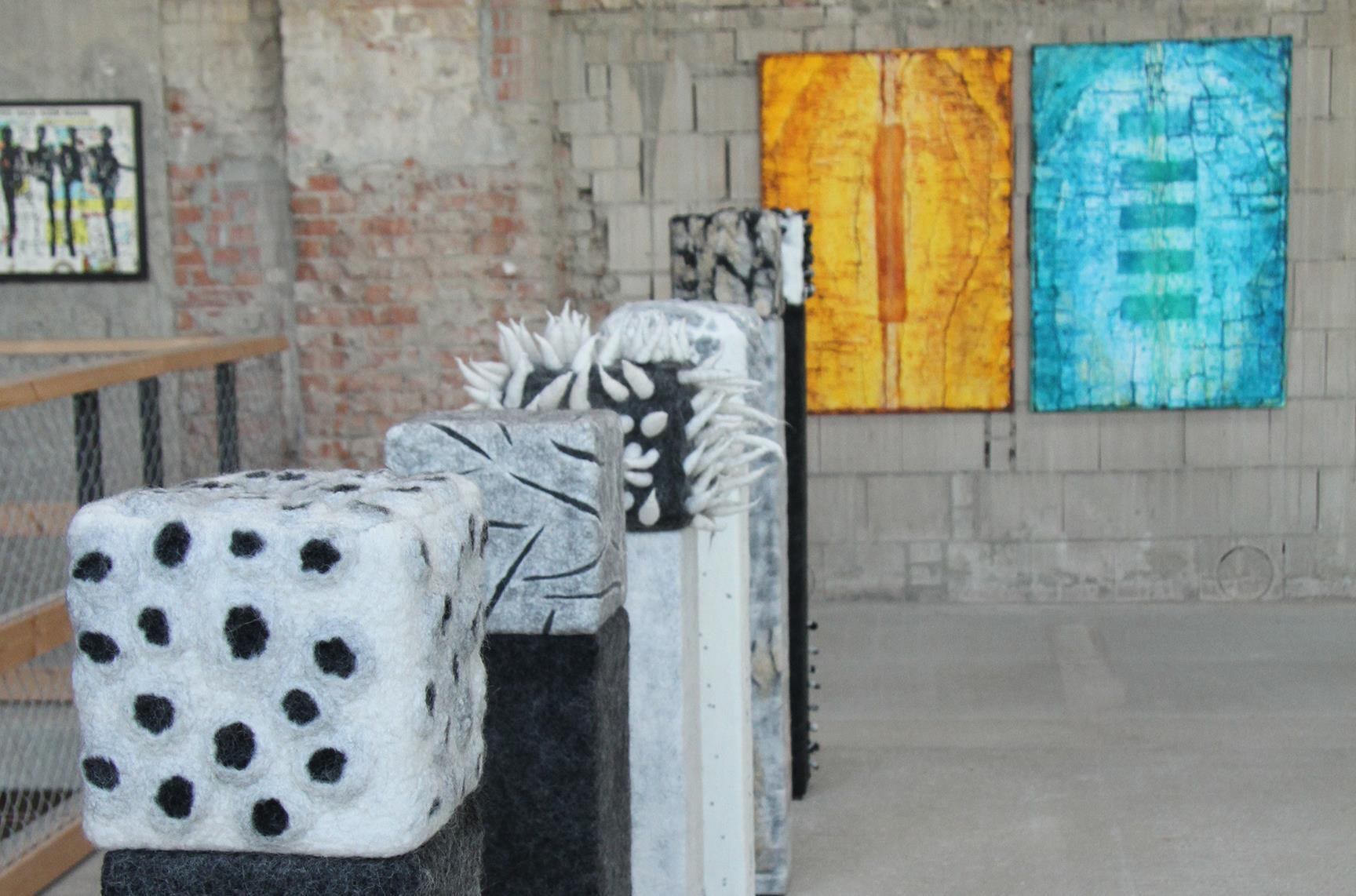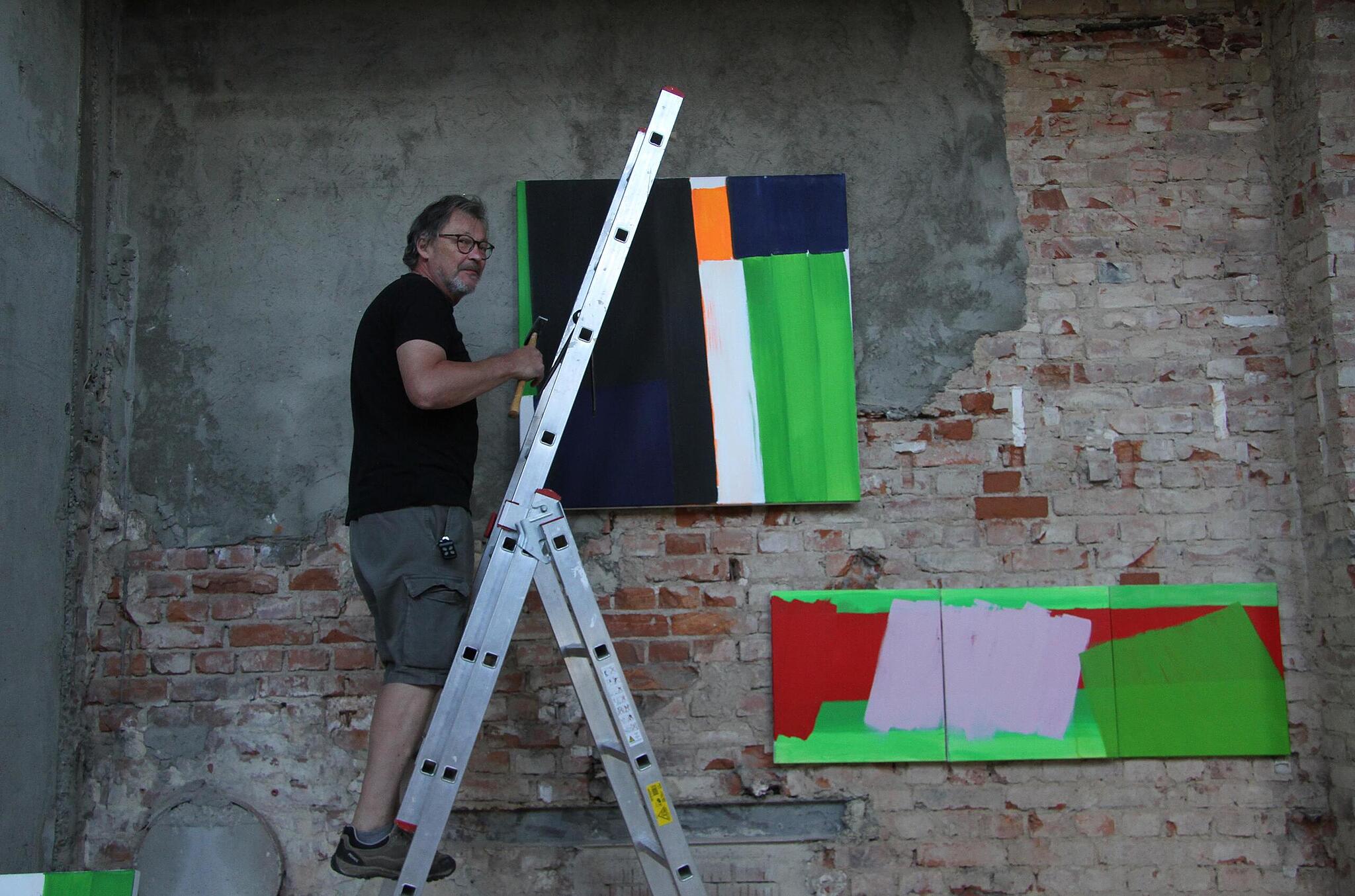 Vernissage Profi-Künstler erobern das Turbinenhaus von Sonja Adam TEILEN  17.08.2022 Kulmbach – Der Kunstverein Kulmbach bereitet die Gemäuer der Alten Spinnerei für eine Ausstellung der Superlative vor. Aktuell wird noch mit Hochdruck im Alten Turbinenhaus gewerkelt. Nicht, weil das Gebäude instandgesetzt wird, sondern weil an dem rohen Mauerwerk Kunst der Extraklasse installiert wird. Künstler Georg Köstner steigt selbst auf die Leiter, um seine Werke zu hängen. // Sonny Adam Der Stadtsteinacher Künstler Georg Köstner greift zu einer schon etwas in die Jahre gekommenen Zange, klettert auf eine Leiter und befestigt seine eigenen Bilder. Es handelt sich um plakative, farbenfrohe Werke. Jeder Künstler ist selbst für die Präsentation verantwortlich. Doch natürlich nur an dem Platz, der ihm zugewiesen wurde. Köstner hat seine Bilder schnell gehängt. Doch schwieriger wird es schon, den richtigen Standplatz seiner Rost-Skulpturen zu finden. „Mittig geht gar nicht“, sagt Köstner. Und natürlich möchte er auch nicht mit anderen Werken in Konkurrenz treten. Cornelia Morsch zeigt nur ein einziges Bild, das sie gefertigt hat. Eine unabhängige Jury des Bundesverbandes Bildender Künstler hat die Auswahl für die Ausstellung getroffen. Ein Drittel aller eingereichten Arbeiten mussten ausjuriert werden. // Sonny Adam Motto: „Verbinden – Verbunden“ Auch im Obergeschoss ringen Künstler um den richtigen Platz und überlegen, ob alles richtig hängt, ob die Werke gut zur Geltung kommen. Insgesamt achtzig Kunstwerke werden derzeit platziert – von 29 verschiedenen Künstlern. Cornelia Morsch ist besonders stolz, dass auch ein Werk von ihr einjuriert worden ist. Den Vorsitz der Jury hatte Gerhard Schlötzer, Vorsitzender des Bundesverbandes Bildender Künstler Oberfranken. Das Motto „Verbinden – Verbunden“ hat viele Künstler angesprochen. So viele, dass ein Drittel aller Arbeiten aussortiert werden musste. Die Künstler, die jetzt ihre Werke zeigen können, sind allesamt Profis. Die Auswahl der Bilder wurde von einer Jury vorgenommen. // Sonny Adam Das Motto ist auch eine Erinnerung an die schwierigen Monate und Jahre der Vergangenheit. Denn viele Künstler haben die Verbindung zu anderen verloren. Jetzt gilt es, wieder Verbindung aufzunehmen und zu demonstrieren, dass man noch verbunden ist. Das Motto wird nicht nur für das Turbinenhaus gelten, sondern ab 23. September wird es im Landratsamt Kulmbach eine zweite jurierte Ausstellung mit diesem Titel geben. Darüberhinaus setzt der Kunstverein mit diesen Ausstellungen den Auftakt zur Einrichtung einer Artothek. Die Kunstwerke, die dort gezeigt werden sollen, werden nicht angekauft, sondern von den Künstlern gestellt. Die Strohhalm-Kreationen stammen von Judith Bauer-Bornemann, die farbenfrohen Kunstwerke von Marius Seidliz. // S. Adam Von Bauer bis Westien Folgende Künstler sind bei der Ausstellung „Verbinden-Verbunden“ im Turbinenhaus mit dabei: Judith Bauer-Bornemann, Walli Bauer, Harald Burger, Thomas Brix, Karin Drechsler-Ruhmann, Henrike Franz, Lucie Kazda, Georg Köstner, Elvira Lantenhammer, Barbara Mäder-Ruff, Cornelia Morsch, Jo Niklaus, Hans Niklaus, Gert Ressel, Bernd Romankiewitz, Gerhard Popp, Margit Rehner, Irene Reinhardt, Veronika Riedl, Lucia Scheid-Nam, Heidemarie Schellwanich Fries, Gudrun Schüler, Michaela Schwarzmann, Marius Seidliz, Christiana Sieben, Maria Söllner, Bettina Specht, Claus Tittmann und Ute Westien. Die Filzobjekte sind Charakterköpfe von Irene Reinhardt, die Strukturbilder stammen von Harald Burger. // Sonny Adam Auszeichnung Eine Macherin im Unruhestand Sigrid Daum-Sauermann, die ehemalige Leiterin der Museen im Mönchshof, erhielt das nun Bundesverdienstkreuz.