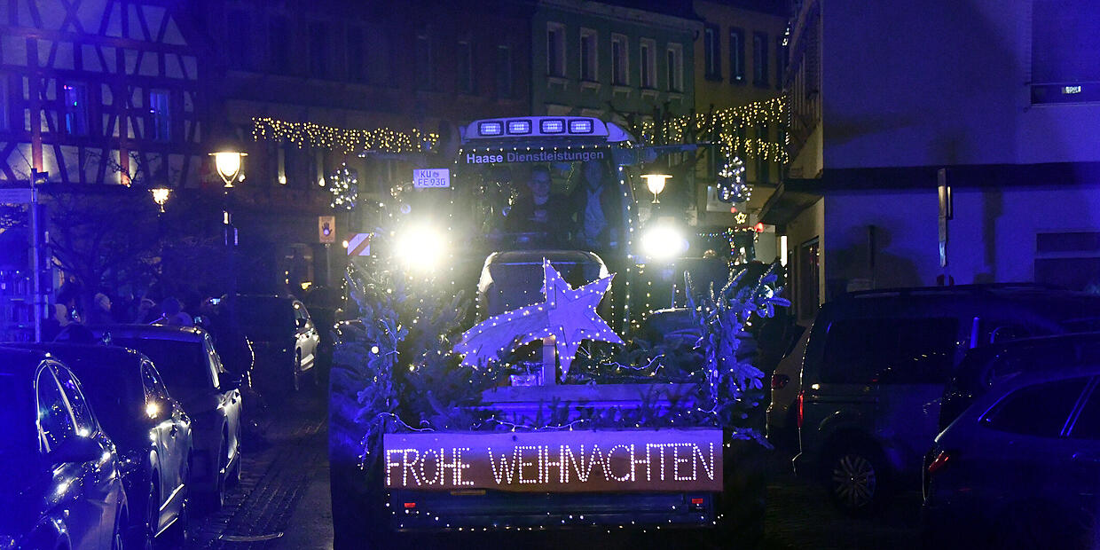 Kulmbach – Festlich geschmückte Traktoren rollen durch die Straßen. Kulmbachs Landwirte bedanken sich mit einem leuchtenden Weihnachtskorso und einer weihnachtlichen Botschaft.
