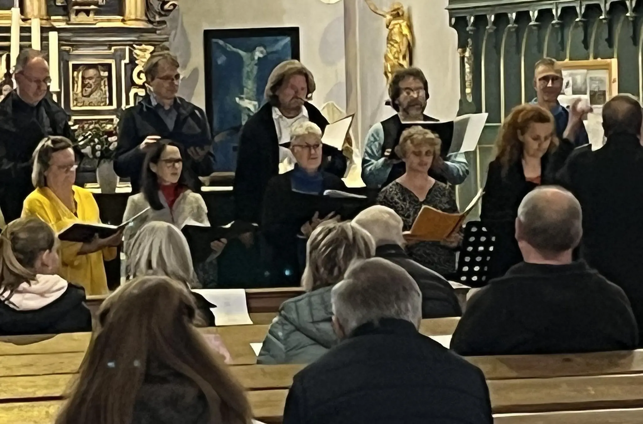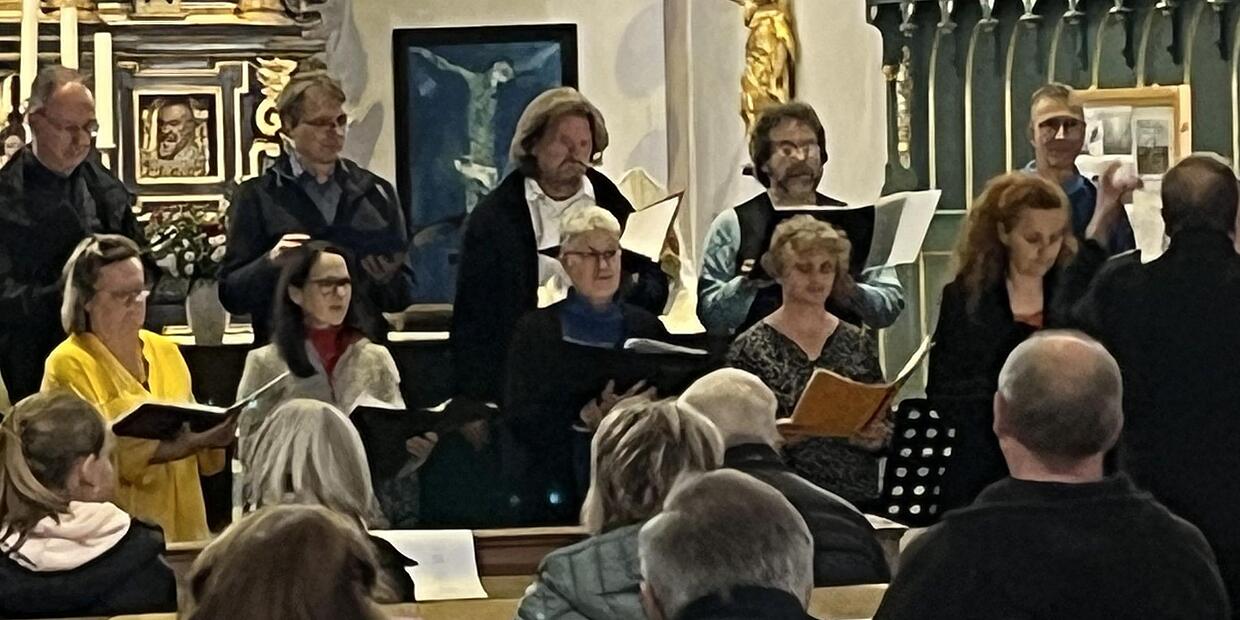 Konzert Sänger machen Kulmbacher Publikum glücklich Ehemalige der Jugend-Kantorei feiern in der Petrikirche ein musikalisches Wiedersehen. // Gerhard Prütz von Dagmar Besand TEILEN  11.10.2023 Kulmbach – Nach mehr als 30 Jahren trafen sich Ehemalige der Kulmbacher Jugend-Kantorei zu einem ganz besonderen musikalischen Wiedersehen. Freundschaften, die ein Leben lang halten, sind selten, aber es gibt sie. Und sie sind ein besonderes Geschenk, das die Ehemaligen der Kulmbacher Jugend-Kantorei zu schätzen wissen. Sie trafen sich zu einem musikalischen Wiedersehen in ihrer Heimatstadt – rund 35 Jahre, nachdem sich der Chor aufgelöst hat. Kulmbacher lieben es zu singen Musik hat ihr Leben als Jugendliche geprägt, und so war klar: Es wird wieder gemeinsam geprobt – mit einem gemeinsamen kleinen Abschlusskonzert. Ein ehrgeiziger Plan bei nur einem Tag Vorbereitungszeit. Doch das Vorhaben ist gelungen – mit tatkräftiger Unterstützung von Dekanatskantor Christian Reitenspieß, der mit den 18 Sängerinnen und Sängern ein vielseitiges und gleichzeitig recht anspruchsvolles Programm einstudierte und sie beim Auftritt virtuos am Klavier begleitete. Die Noten hatten alle bereits im Vorfeld bekommen. Ein wenig Fleiß im Vorfeld muss sein. Jugend-Kantorei: Musikfreunde fürs Leben Nach einem intensiven Sing-Tag abends dann die Soirée in der Petrikirche. Im neugierigen Publikum viele bekannte Gesichter, darunter auch einige Eltern der Ehemaligen, die sich noch gut daran erinnern, dass ihre Kinder vor 30, 40 und mehr Jahren einen Großteil ihrer Freizeit miteinander verbrachten: die Unzertrennlichen, immer gemeinsam unterwegs. Diese Verbindung zwischen den alten Freunden kann man heute noch sehen – und man kann sie auch hören. Ein harmonisches Miteinander, ein gutes Aufeinander-Hören und Zusammen-Klingen. Chor singt in der Petrikirche in fünf Sprachen Ein einziger Probentag kann keine Wunder vollbringen. Und doch entstand in der kurzen Zeit ein feines Programm ganz unterschiedlicher Stilrichtungen, gesungen in fünf Sprachen. Das Ensemble zeigte sich verschmitzt-verspielt mit der lautmalerischen Geschichte eines von Bienengesumm genervten Mannes, rhythmisch präsent mit „Abide in me“ im Funky-Style, verträumt und emotional in Liedern über glückliche und gescheiterte Liebe. Auch geistliche Lieder durften in der Auswahl der Kirchenchor-Ehemaligen selbstverständlich nicht fehlen: ein wenig Johann Sebastian Bach, ein jubilierendes „Du meine Seele singe“ und ein berührendes Vaterunser zum Abschluss. Solo für Querflöte und Klavier Großer Applaus dankte den Sängern sowie Susanne und Michael Hertel, die inspiriert und temperamentvoll eine Sonate für Querflöte und Klavier beisteuerten. Hans-Martin Meuß sorgte für einen geistlichen Impuls, Sprecherin Luise Wunderlich fürs Verständnis der fremdsprachigen Texte. Lesen Sie auch: Experiment In acht Proben zum Chorkonzert Im Thurnauer Ortsteil Hutschdorf macht der Gesangverein mit einer musikalischen Challenge neugierig. Das Besondere: Auch Neulinge ohne Vorkenntnisse dürfen mitmachen Einladung Kulmbacher Chor findet nach 30 Jahren wieder zusammen Ihre Wege haben sich nach dem Schulabschluss getrennt: Jetzt treffen sich die Mitglieder der früheren Jugend-Kantorei für ein gemeinsames Musik-Projekt.