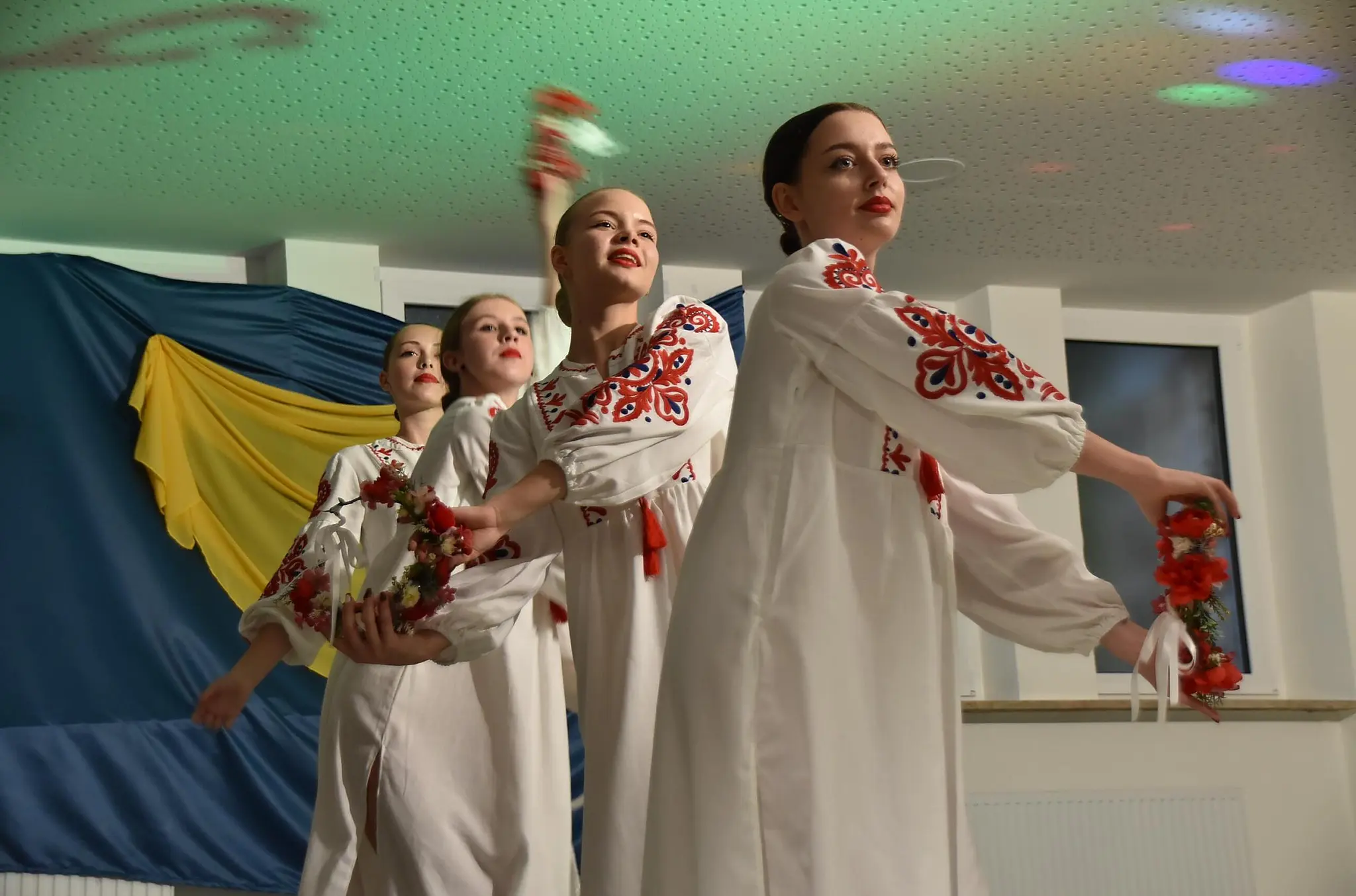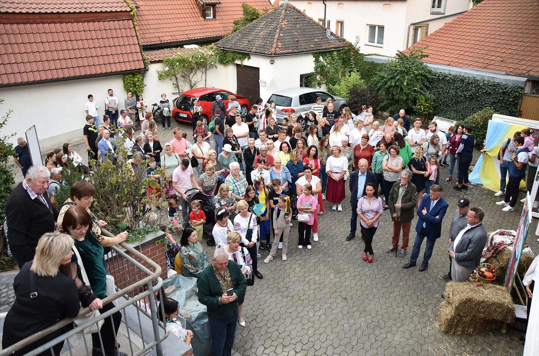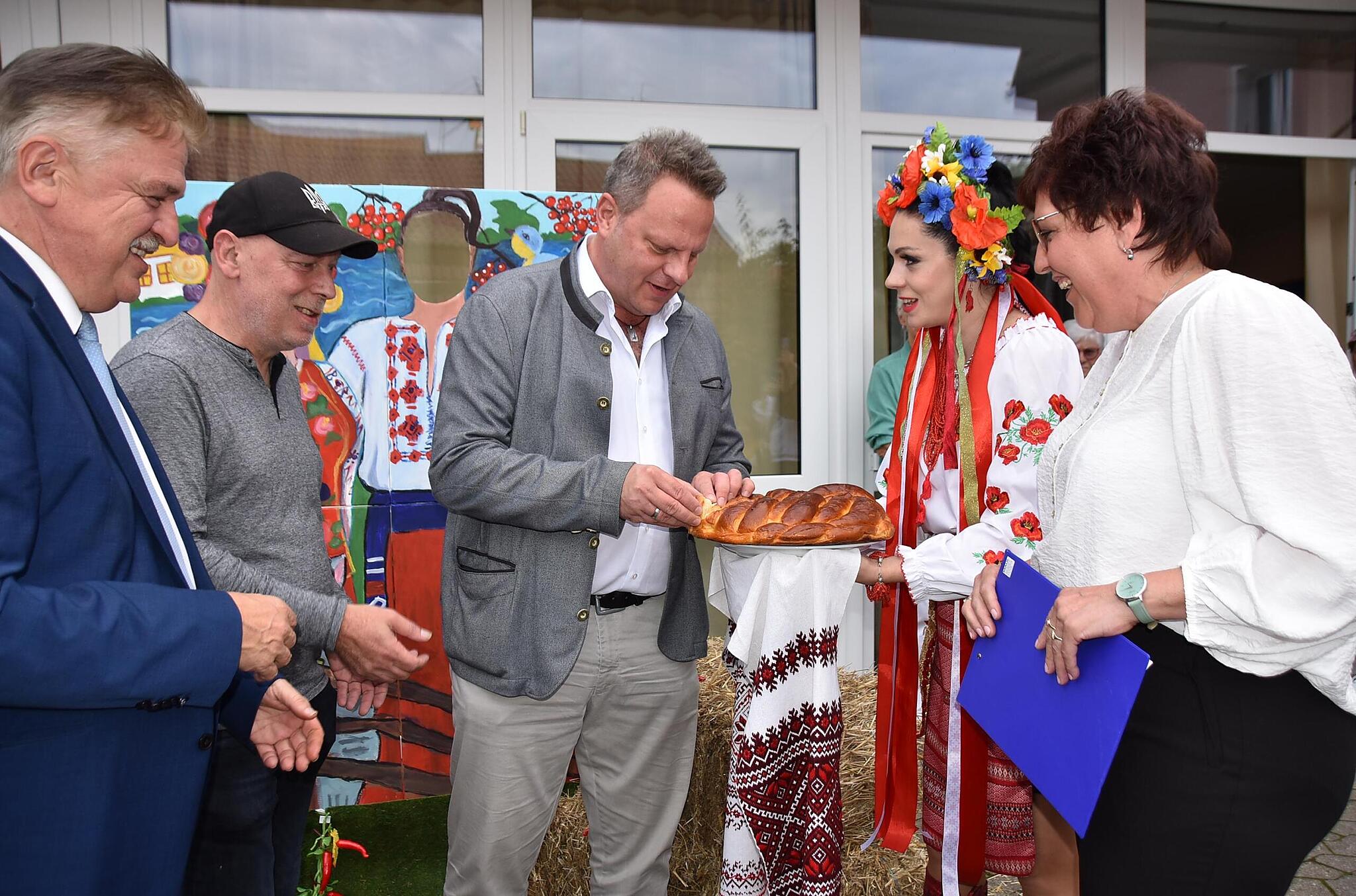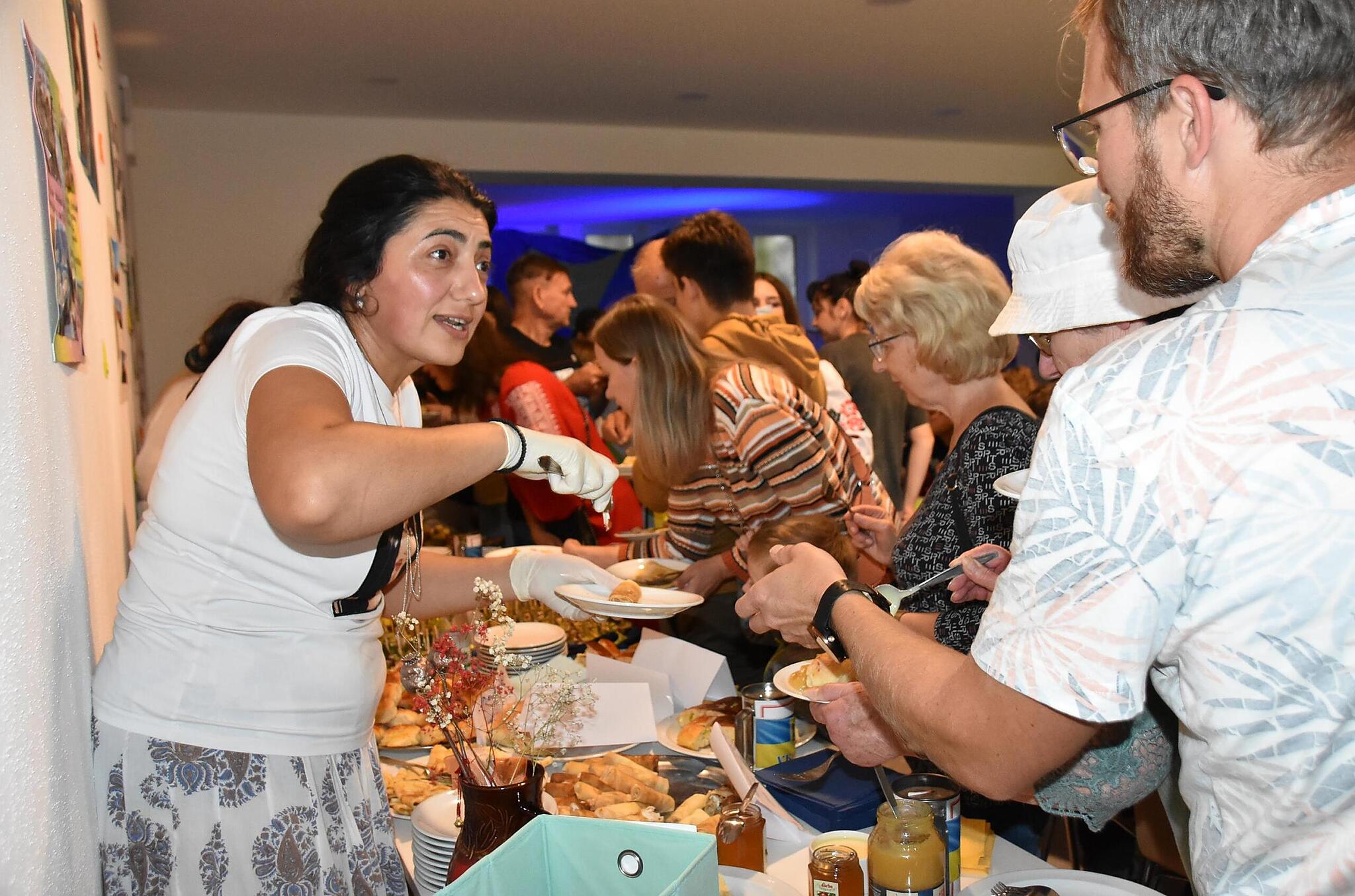 In Kulmbach Ukrainerinnen geben Einblick in ihre Kultur Nika, Mariia, Melana und Darya zeigten einen ukrainischen Tanz. // Uschi Prawitz von Ursula Prawitz TEILEN  02.10.2023 Kulmbach – 13 Frauen und ihre Betreuerin stellten einen ukrainischen Abend auf die Beine. Für die Besucher gab es viel zu lernen und zu erleben. Großen Zulauf erfuhr der Ukrainische Kulturabend im Rahmen der Interkulturellen Woche (IKW). Der Gemeindesaal der katholischen Kirche „Unsere liebe Frau“ war zum Bersten gefüllt, als OB Ingo Lehmann (SPD) und Landrat Klaus Peter Söllner (FW) in ihrer Eigenschaft als Schirmherren die zahlreichen Gäste begrüßten. Rund 900 ukrainische Geflüchtete leben im Landkreis Kulmbach „Rund 900 ukrainische Geflüchtete wurden in unserem Landkreis aufgenommen“, sagte Landrat Söllner und bedankte sich bei den Familien für die Einladung. OB Lehmann betonte die Weltoffenheit von Kulmbach Stadt und Landkreis. „Ich bin begeistert“, sagte Pfarrer Hans Roppelt, der gerne den Gemeindesaal zur Verfügung stellte. „Was gibt es Schöneres, als einen Saal mit fröhlichen Menschen?“ Landrat Klaus Peter Söllner, Stadtrat Matthias Hahn und OB Ingo Lehmann durften als Erste von dem Karavaj (traditionelles ukrainisches Hefebrot) probieren, das Olesya Nytka in ihrer Tracht präsentierte; mit im Bild Maria Maier (von links). // Uschi Prawitz Maria Maier, die Hauptorganisatorin der Veranstaltung, zeigte sich überwältigt. „Ich war so aufgeregt heute früh, und alles lief super“, verriet sie mit einem Lachen. Bereits 1989 kam sie aus Kasachstan nach Kulmbach, hilft ehrenamtlich bei der Caritas als Betreuerin für die ukrainischen Geflüchteten, unterstützt sie beim Deutschlernen. 13 Köpfe starker Kurs mit ukrainischen Frauen organisierte den Abend Seit April 2022 leitet sie Kurse für ukrainische Frauen: „Ich spreche allerdings kein Ukrainisch, also kommunizieren wir auf Russisch miteinander“, erklärte sie, wobei viele der Ukrainer inzwischen bereits Deutsch gelernt hätten. Mit ihrem 13 Köpfe starken Kurs habe sie die Organisation des Kulturabends gestemmt. Viele Besucher waren zum ukrainischen Abend gekommen. // Uschi Prawitz So wurde ein großes Büffet aufgebaut mit leckeren ukrainischen Speisen, darunter Wareniki, gefüllte Pfannkuchen oder Borschtsch. Zur Begrüßung durften alle vom traditionellen Hefegebäck Karavaj probieren - „lecker“ lautete das Fazit der Gäste. Vier ukrainische Mädchen studierten Tanz ein Auch für die Augen und Ohren wurde einiges geboten. So musizierten junge Gesangstalente, es wurden Gedichte vorgetragen und sogar ein Tanz dargeboten. „Die vier Mädchen haben den Tanz selbst einstudiert und über drei Monate lang zwei Mal pro Woche trainiert“, sagte Maria Maier. Sie freute sich über die gelungene Veranstaltung, die am Ende doch viel größer ausfiel als ursprünglich geplant. Am ukrainischen Büffet wurden die Besucher mit leckeren Speisen verwöhnt. // Uschi Prawitz „Es gab mal eine internationale Ausstellung der Caritas, und die türkische Gemeinde hat hier gekocht. Da hatten wir die Idee, doch mal einen ukrainischen Abend zu machen“, erzählte sie. Klein sollte er sein und Spenden für die Ukraine sollten generiert werden. „Aber dann meldeten sich Landratsamt und Stadtverwaltung bei uns und wir integrierten die Veranstaltung in größerer Form in die IKW.“ Lesen Sie auch: Kulturaustausch Interkulturelle Räume werden in Kulmbach angeboten Unter dem Titel „neue Räume“ findet die diesjährige Interkulturelle Woche in Kulmbach statt. Was es damit auf sich hat und wann welche Veranstaltungen stattfinden. Bildung Ukrainische Kinder in Kulmbach: Unterricht mit Hürden Für Schüler aus der Ukraine wurden im Raum Kulmbach Brückenklassen für den Übergang in die Regelklassen eingerichtet. Doch das Lernen in einer noch fremden Sprache fällt schwer. Grenzenlos genießen Kulmbacher Kochbuch vereint die Kulturen Eine interkulturelle Frauengruppe lockt mit einer ganz besonderen Einladung Hunderte Neugierige auf den Kulmbacher Marktplatz.