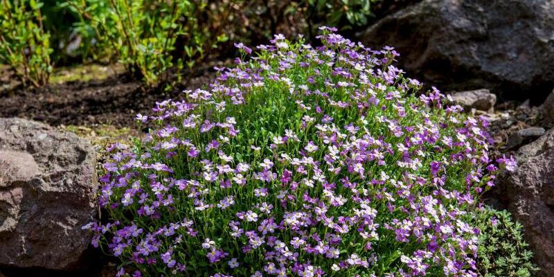 Im Gegensatz zu den Wald- und Waldsaumpflanzen benötigen die Polsterstauden einen vollkommen anderen Lebensbereich. Im feuchten und zu fetten Boden faulen die Polster. Die blau und rötlich blühenden Blaukissen oder das Steinkraut sowie auch andere Polsterbildner kommen nur dort richtig zur Geltung, wo sie über Mauern und Steine herabfallen können. Auch unschöne Zaunsockel kann man mit Polsterstauden verdecken.