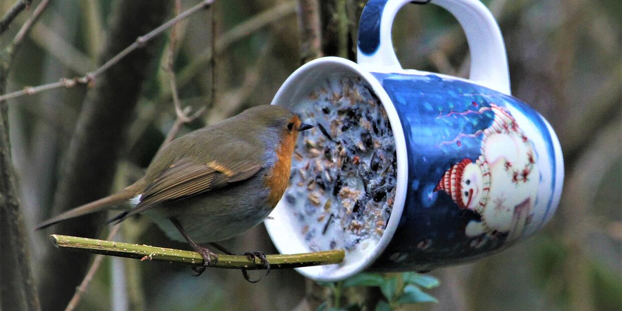 Weichfresser wie Amseln, Zaunkönige und Rotkehlchen hingegen bevorzugen Rosinen, Äpfel, geschrotete Nüsse, Kleie und sehr feine Sämereien, die sie gerne vom Boden picken.