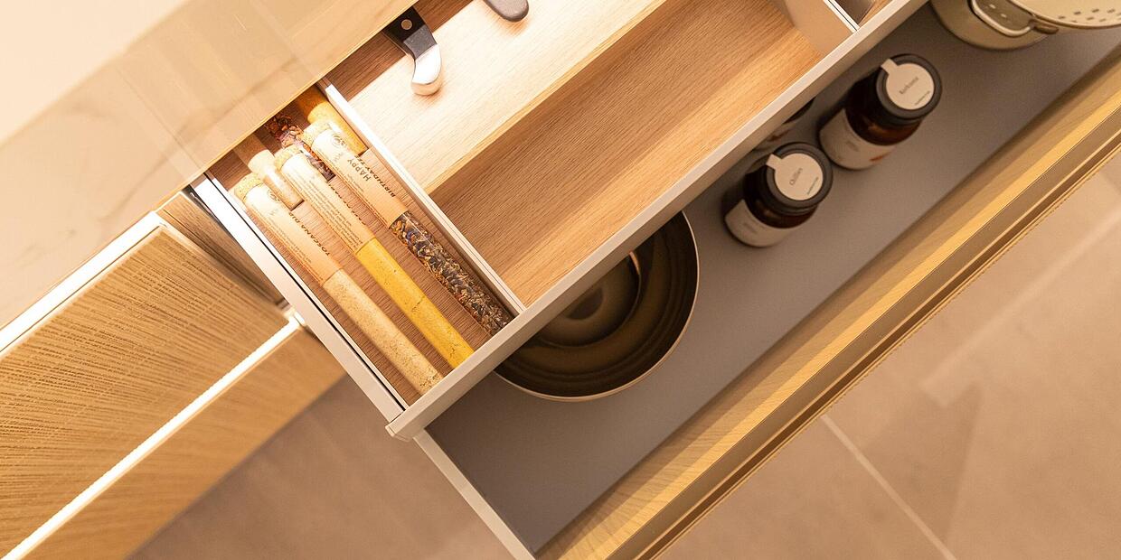 Für letztere gibt es übrigens auch aus der Küchenplanung Ideen: neue Standardtiefen für mehr Nutzvolumen etwa, oder dünnere Zargen für zusätzliche Innenbreite. «Ein Zentimeter in der Tiefe wirkt klein – in Summe sind das viele Liter und ein subjektiv deutlich größerer Stauraum», fasst es AMK-Geschäftsführer Volker Irle zusammen.